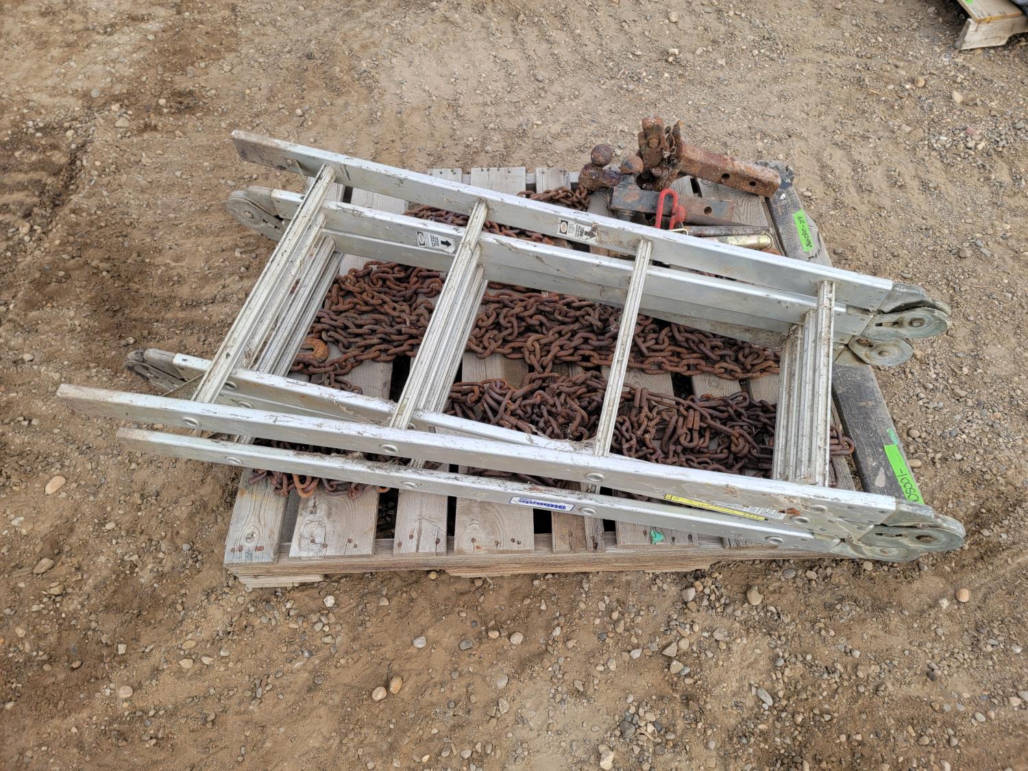 1640 Folding Aluminum Ladder, 16 Inch Tire Chains, Tail Chains and (2) Truck Hitches