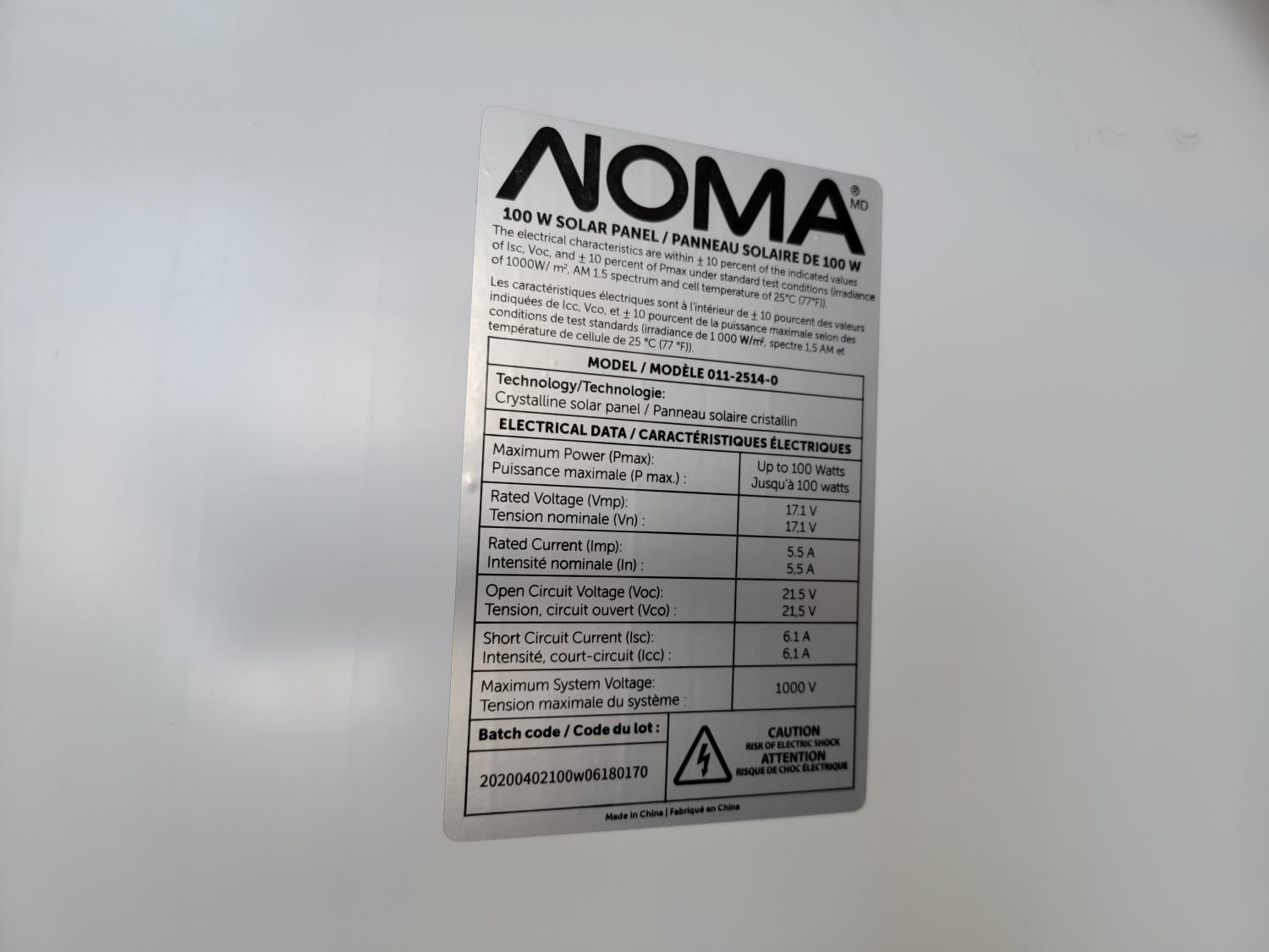 1222 Noma 100 W Solar Panel