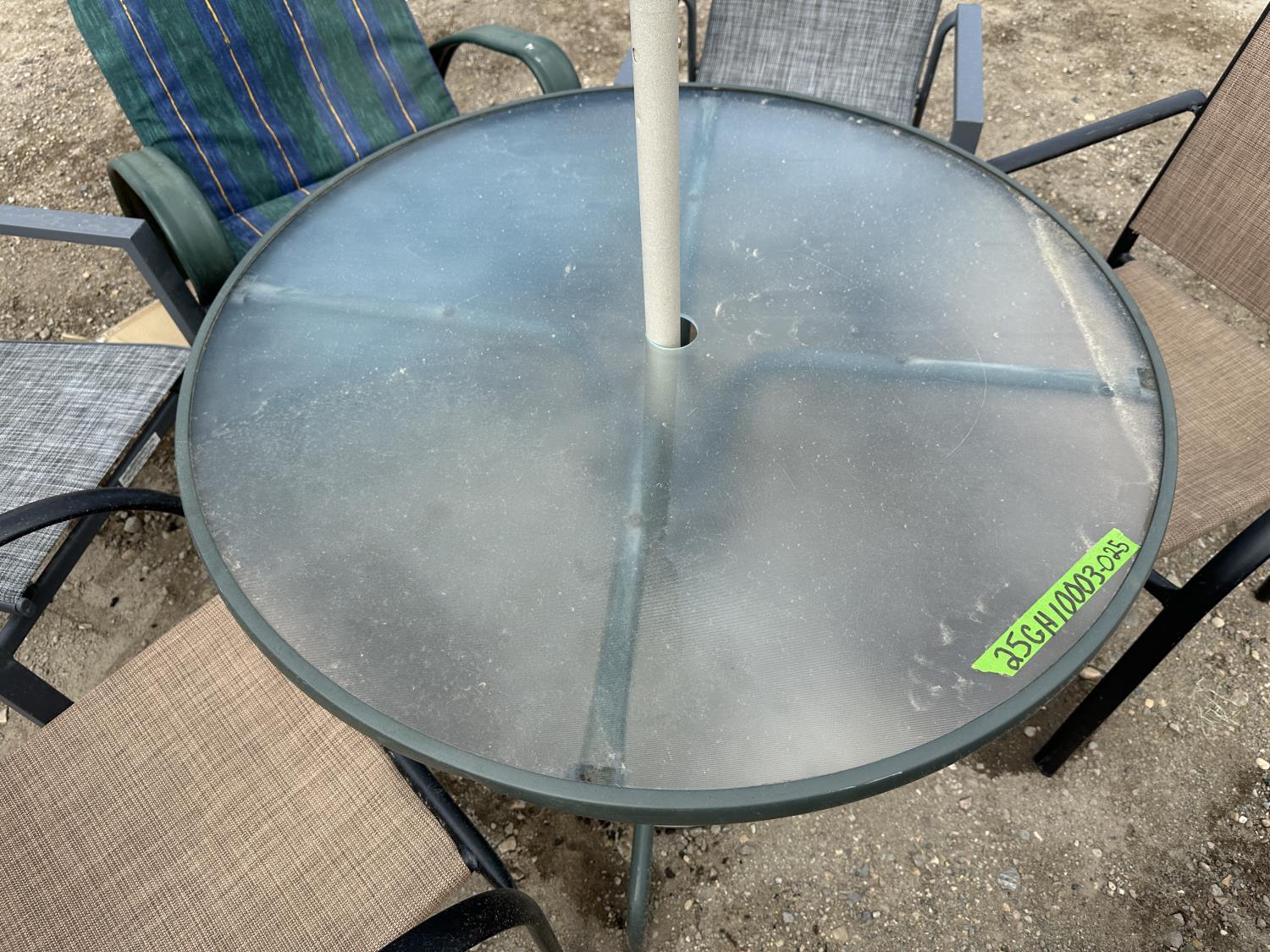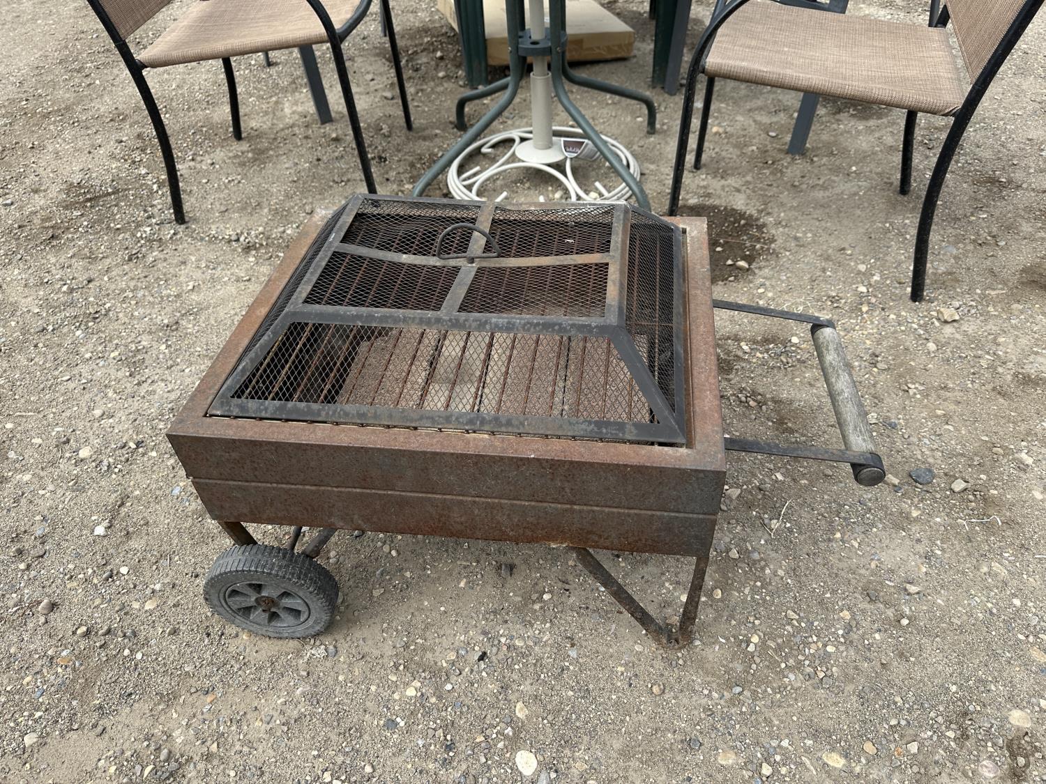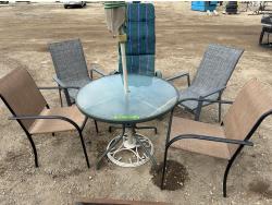 1579 Patio Set with (5) Chairs, Umbrella, Base and Portable Fire Pit