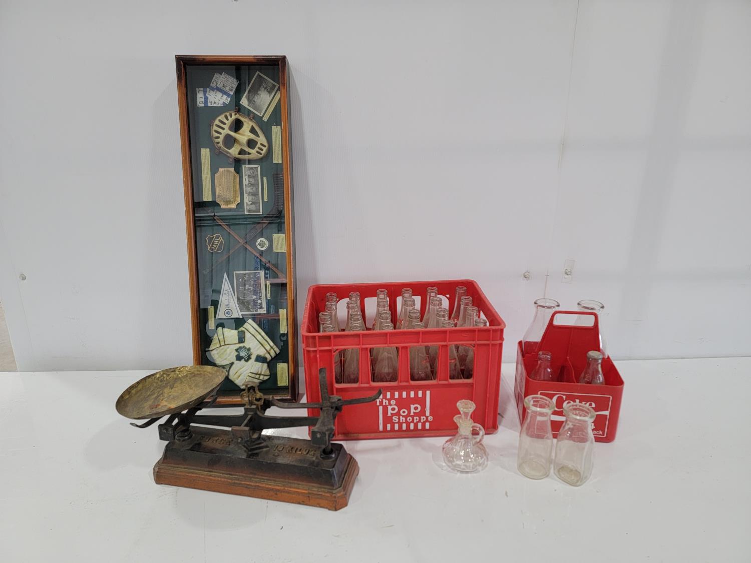 1108 Qty of Antique Items and Toronto Maple Leafs Shadow Box