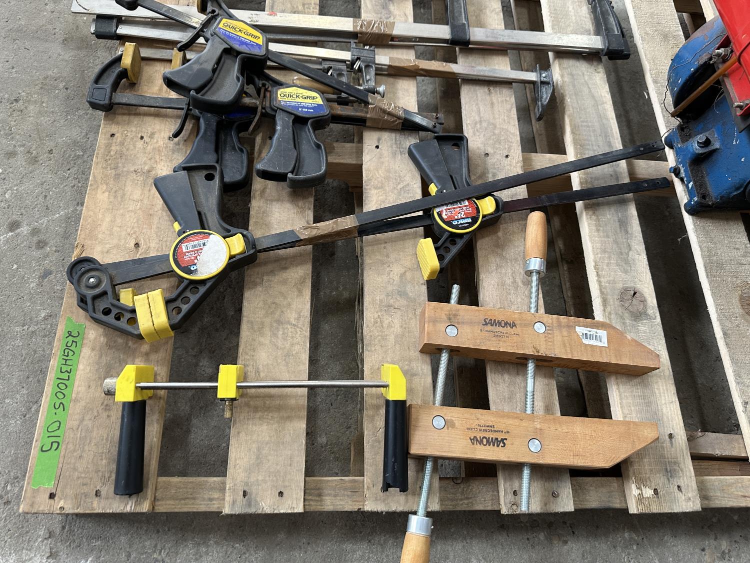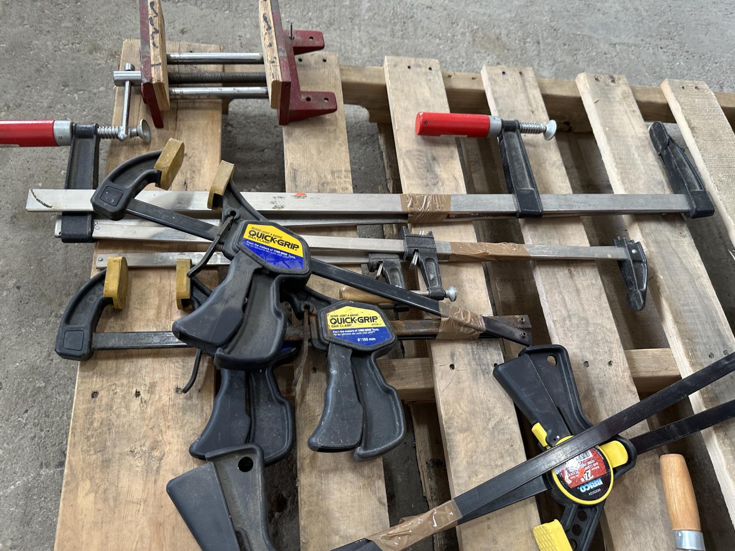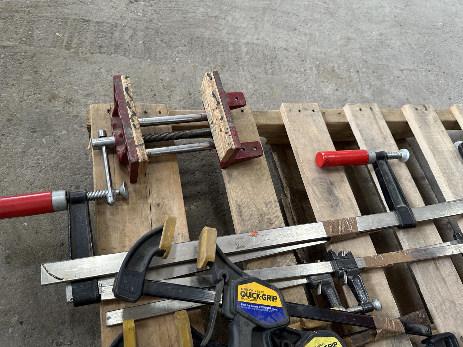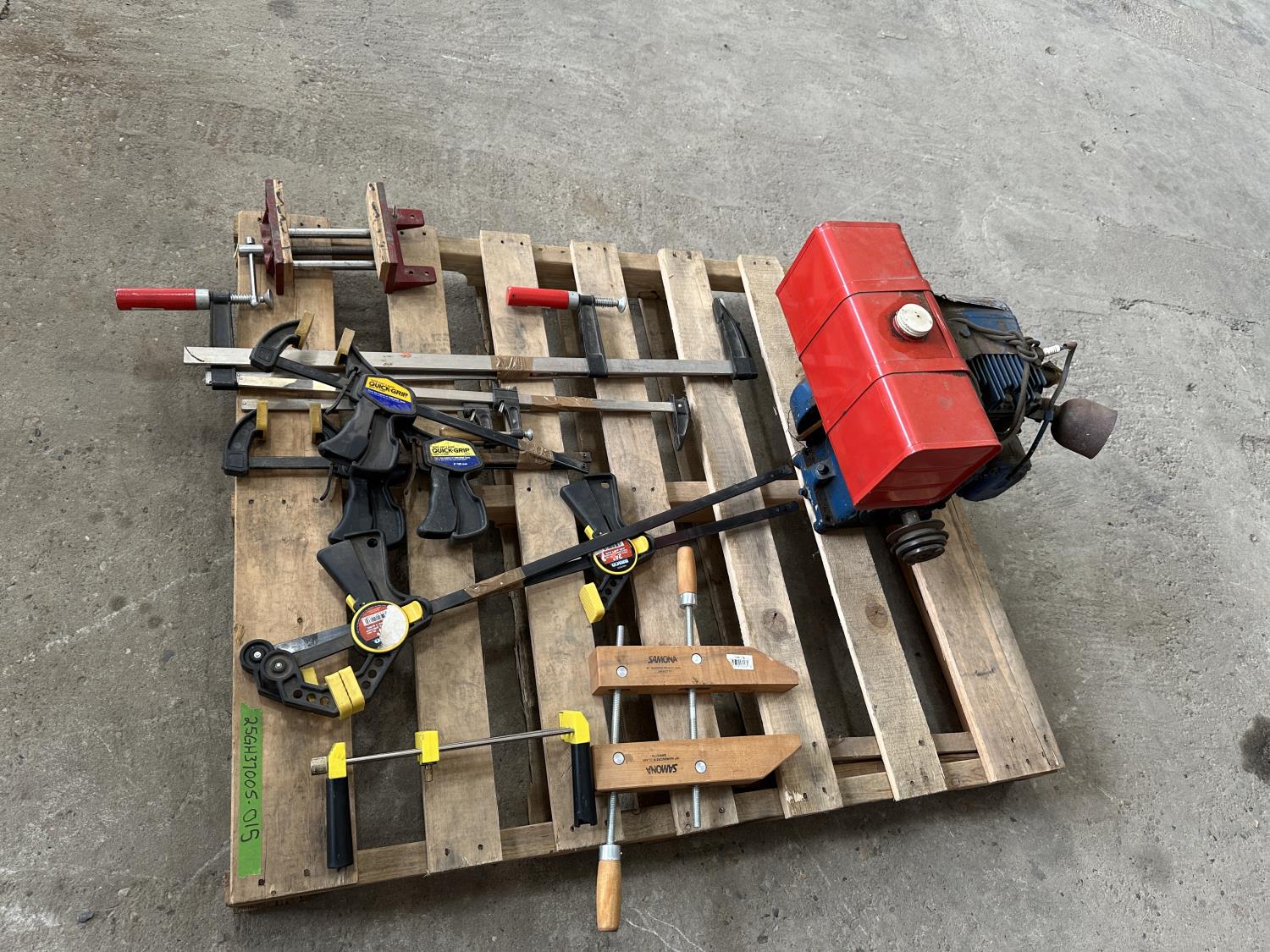 1193 Qty of Assorted Carpentry Clamps and Wisconsin Air Cooled Engine