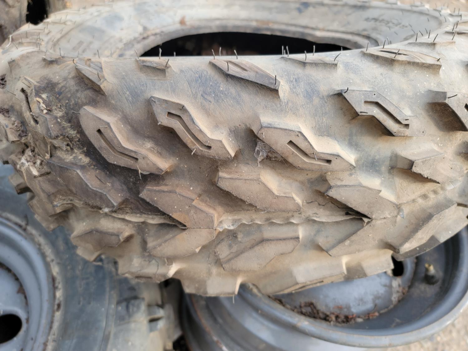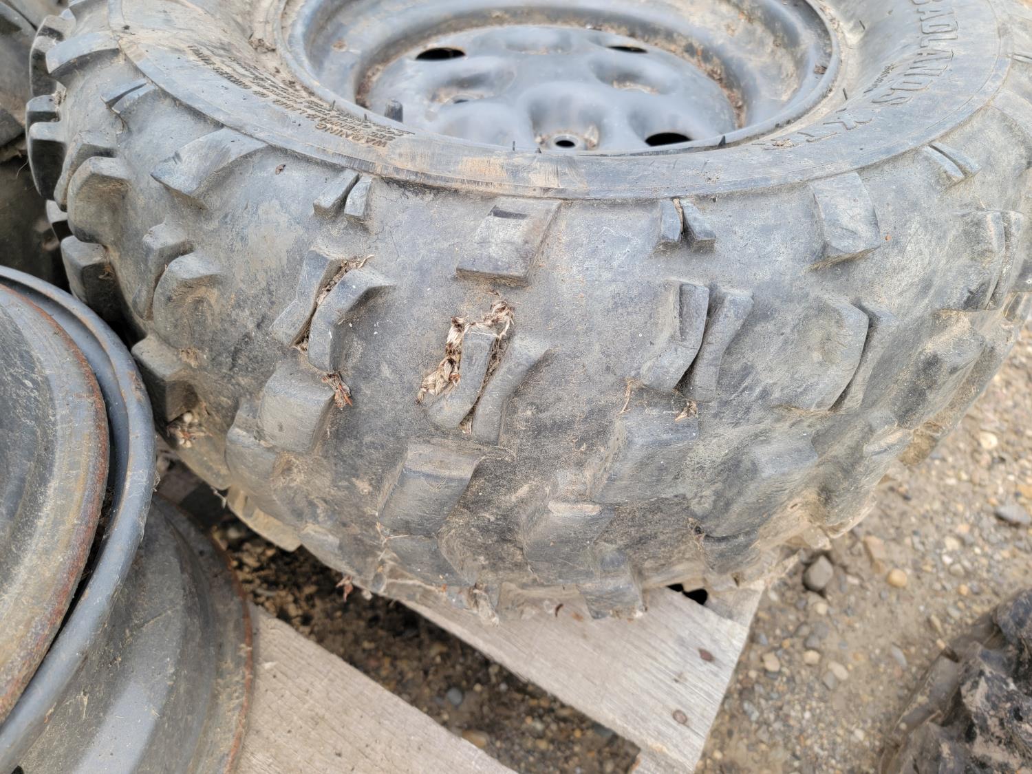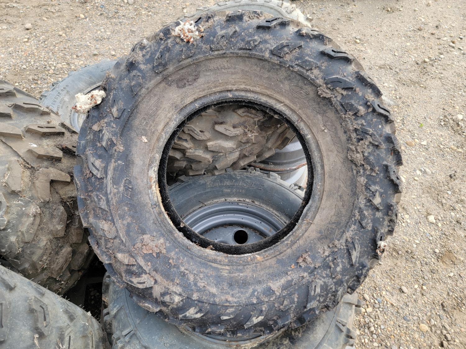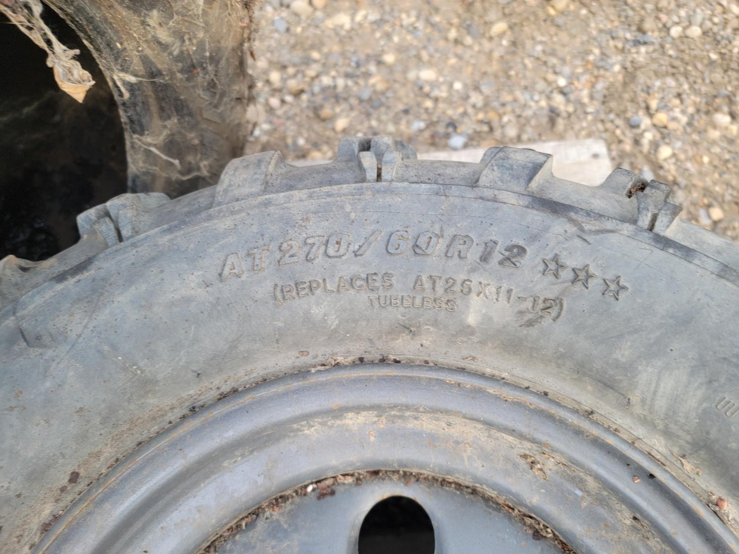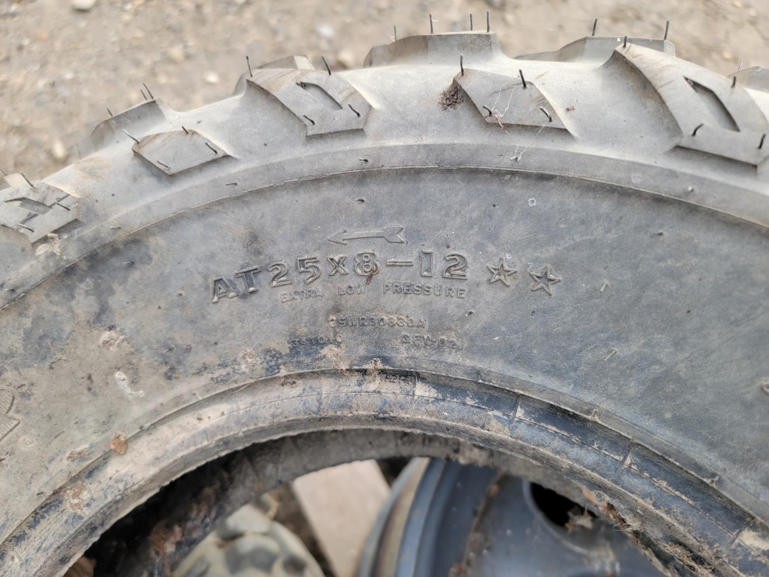 (4) 25x10-12 tires with (2) on rims, (2) 12 inch ATV rims, (2) 25x8-12 ATV front tires