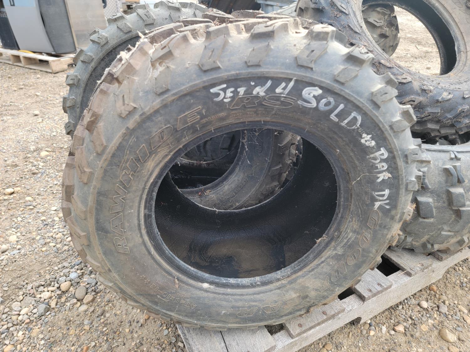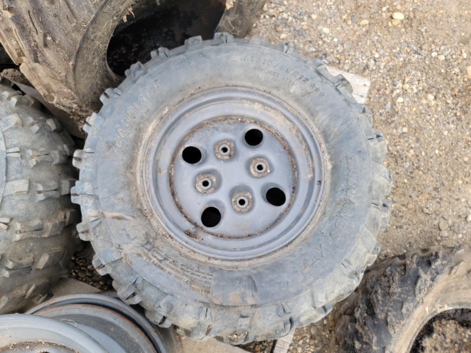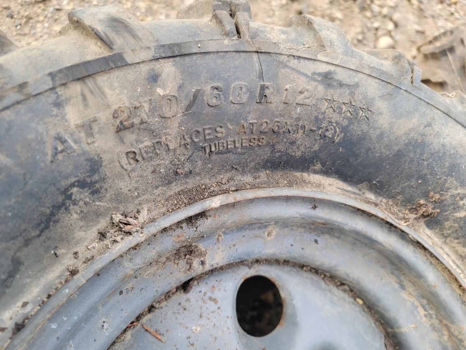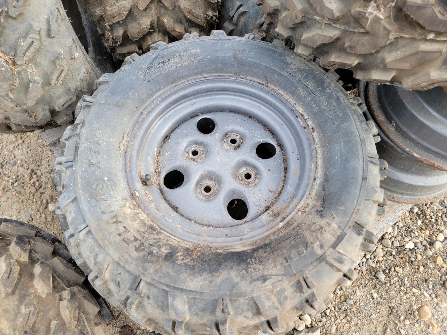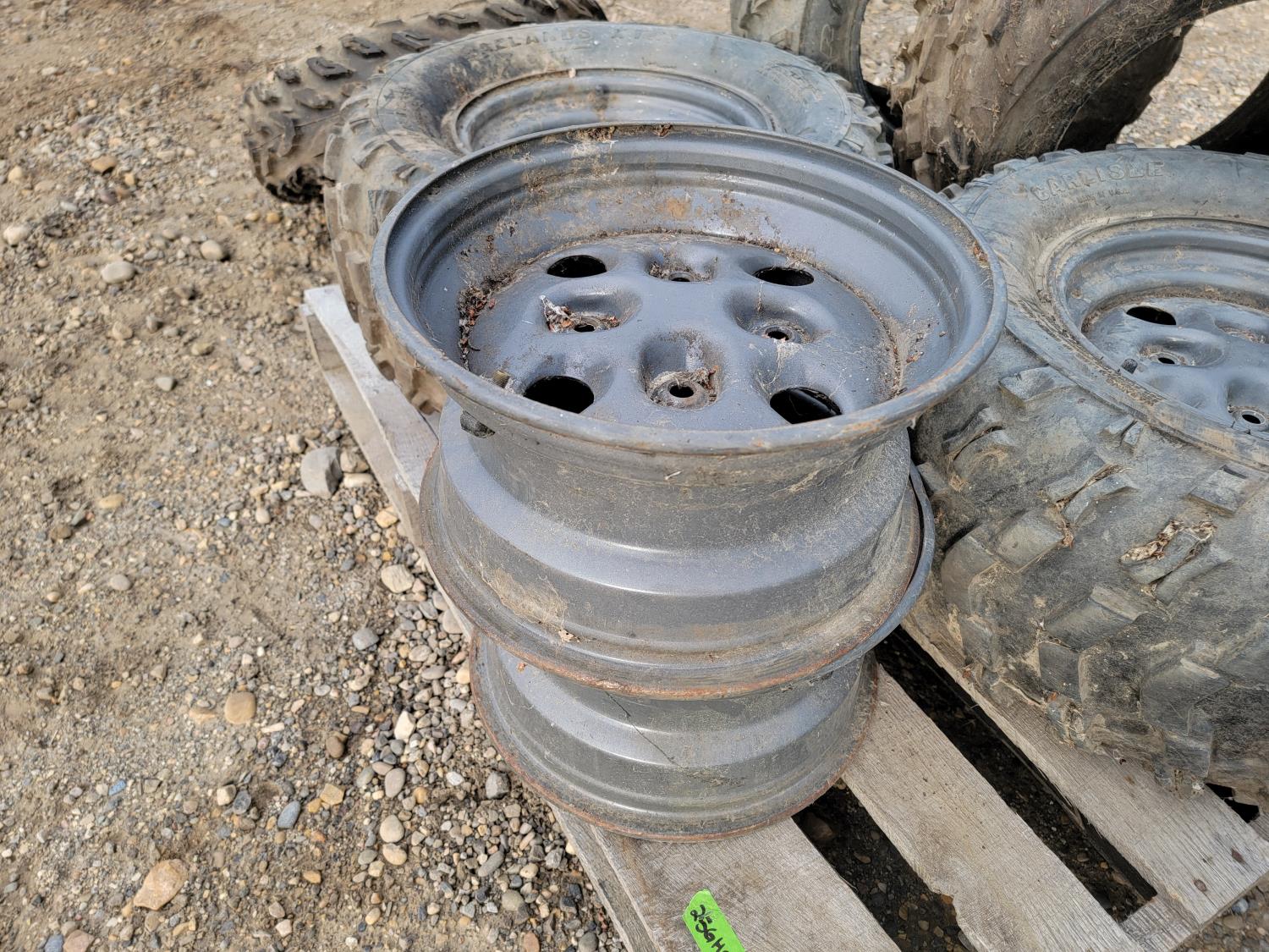 (4) 25x10-12 tires with (2) on rims, (2) 12 inch ATV rims, (2) 25x8-12 ATV front tires