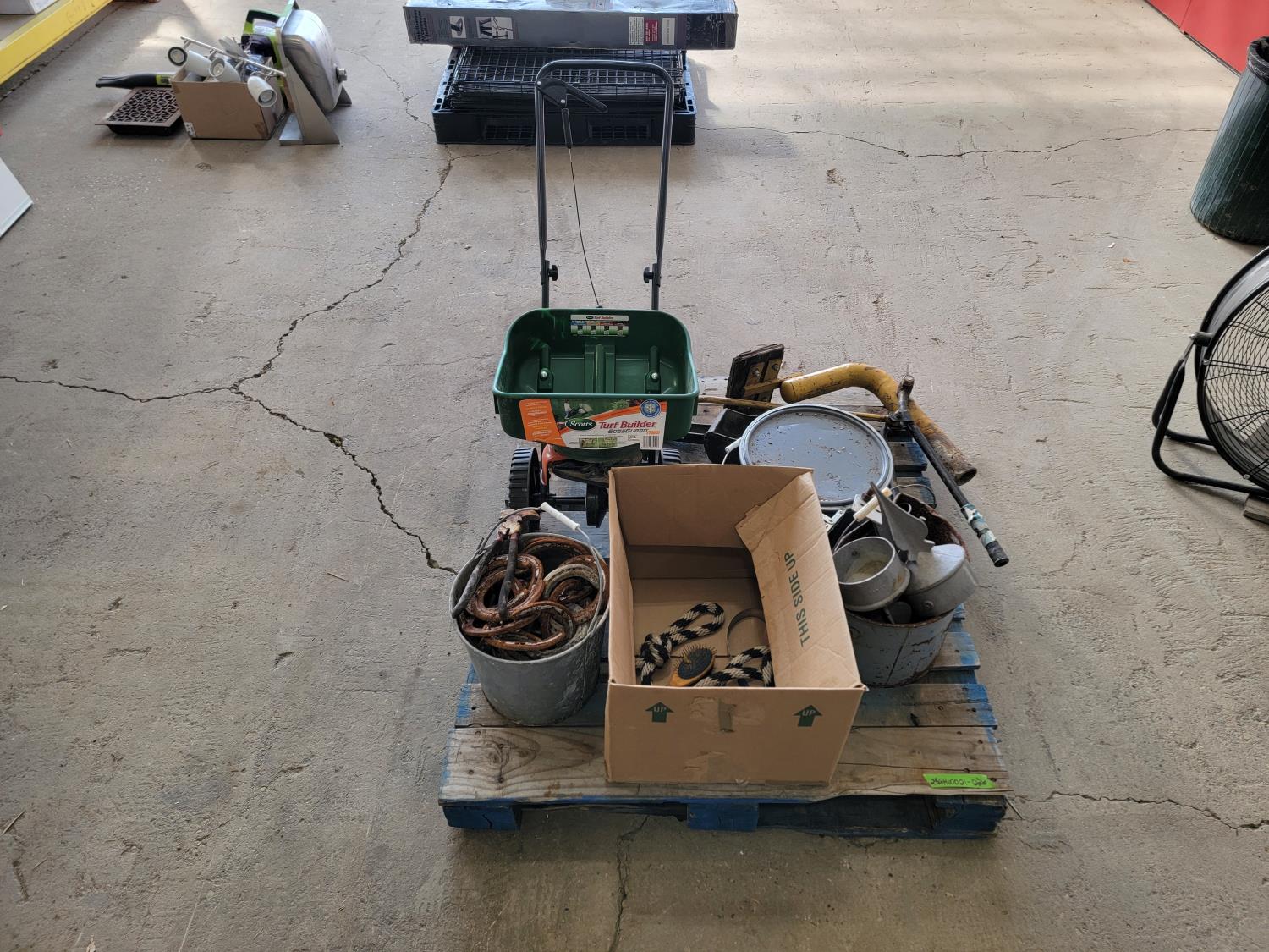 1174 Qty of Fencing Supplies, Broadcast Spreader and Children's Digger
