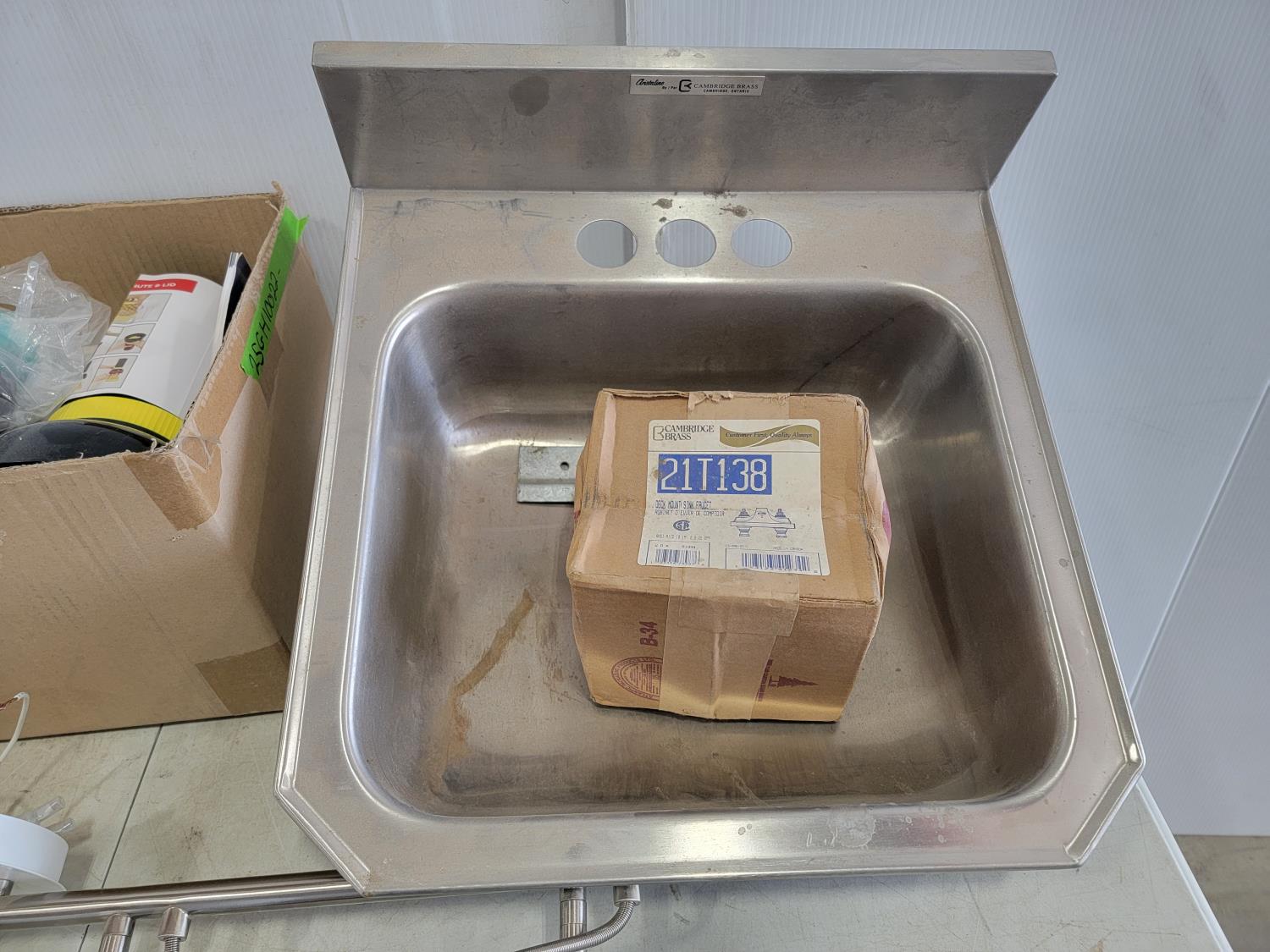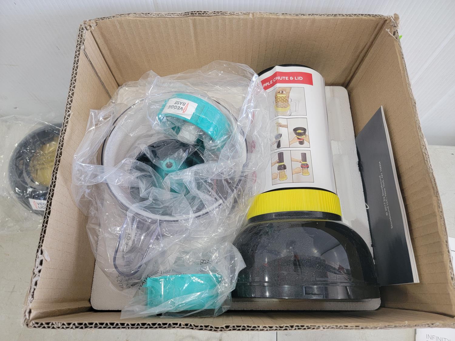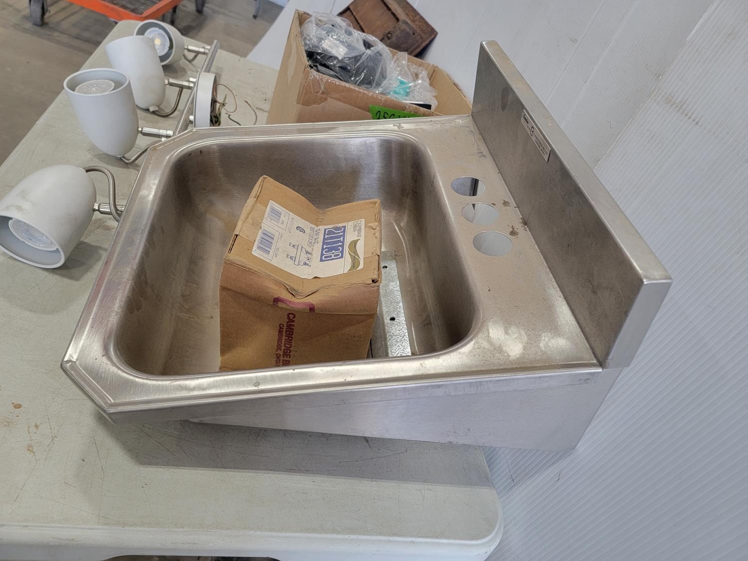16 inch x 12 inch metal vent cover, 32 inch track light, 16-3/4 inch x 17 inch wall sink, Yes Chef Infinity Spiralizer (unused)