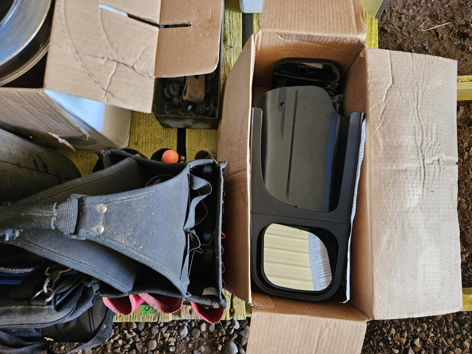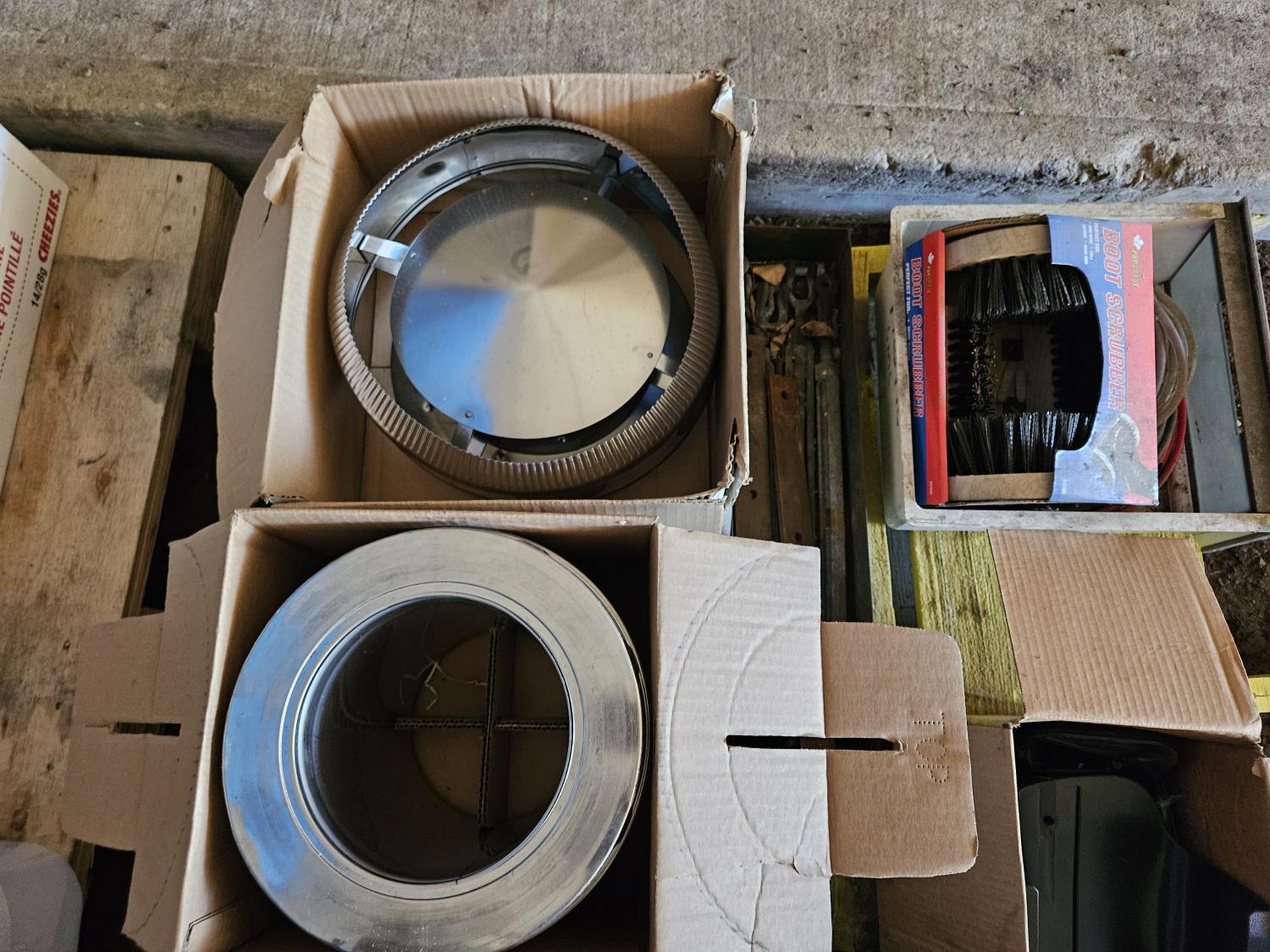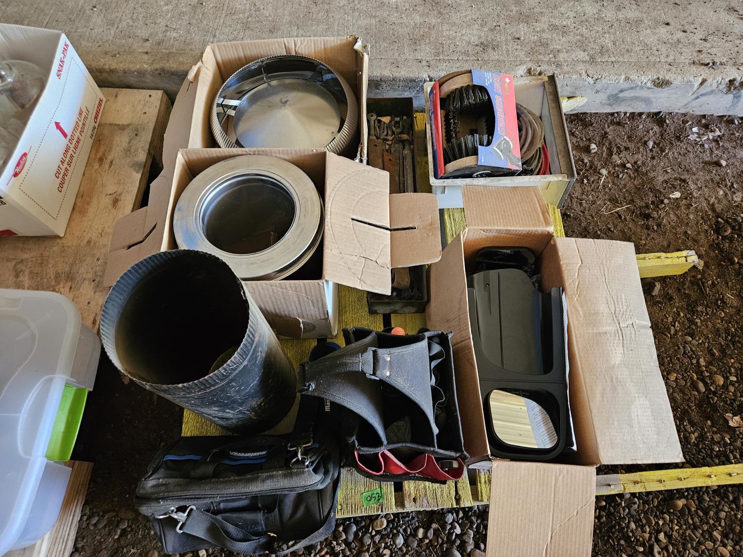 chimney cap, boot brush, tool bag, mirror extensions