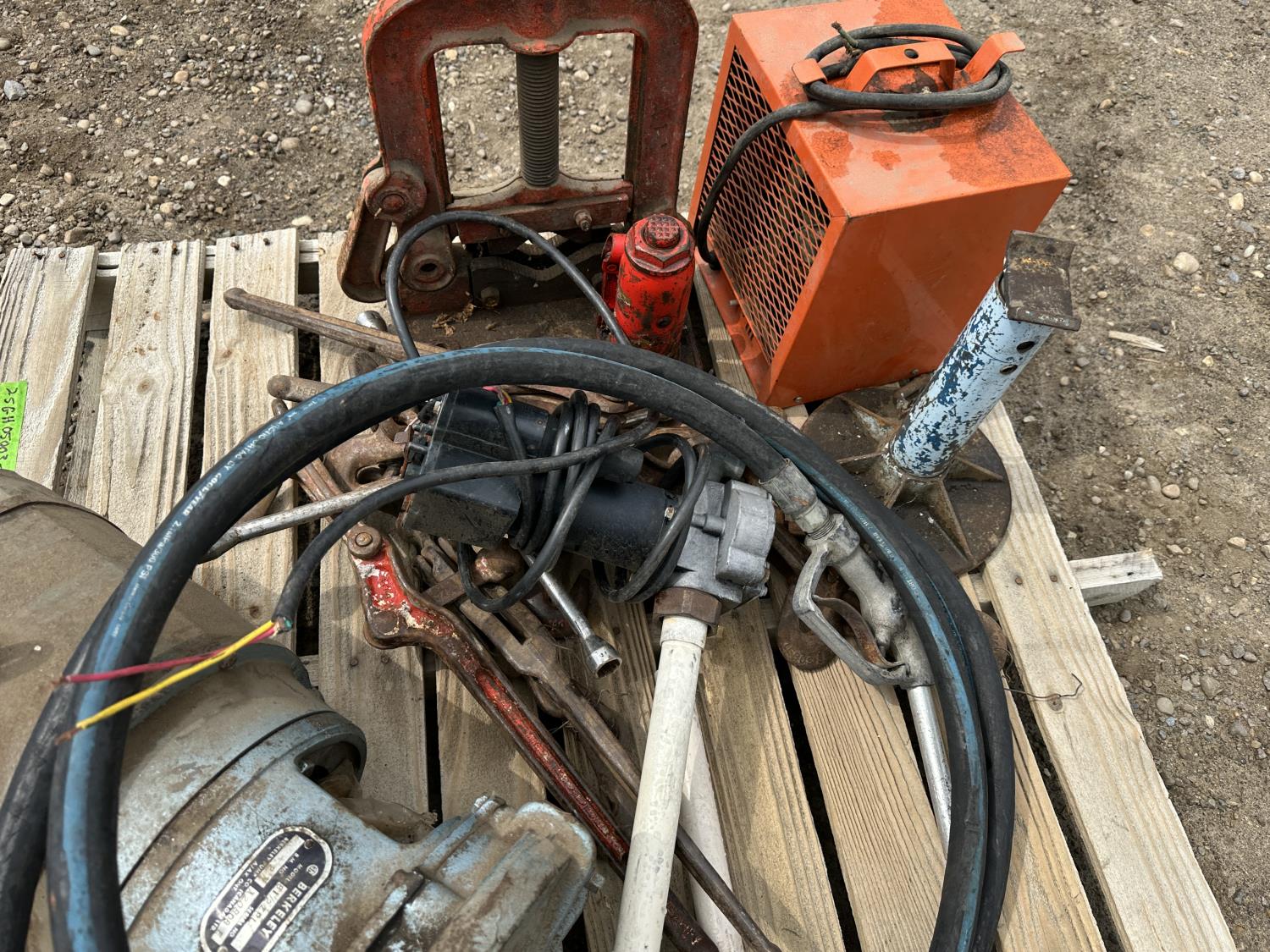 Dolly, tripod, plant hanger, Berkeley BBQ, single phase motor, pipe vise, (3) jack-alls, heated water buckets
