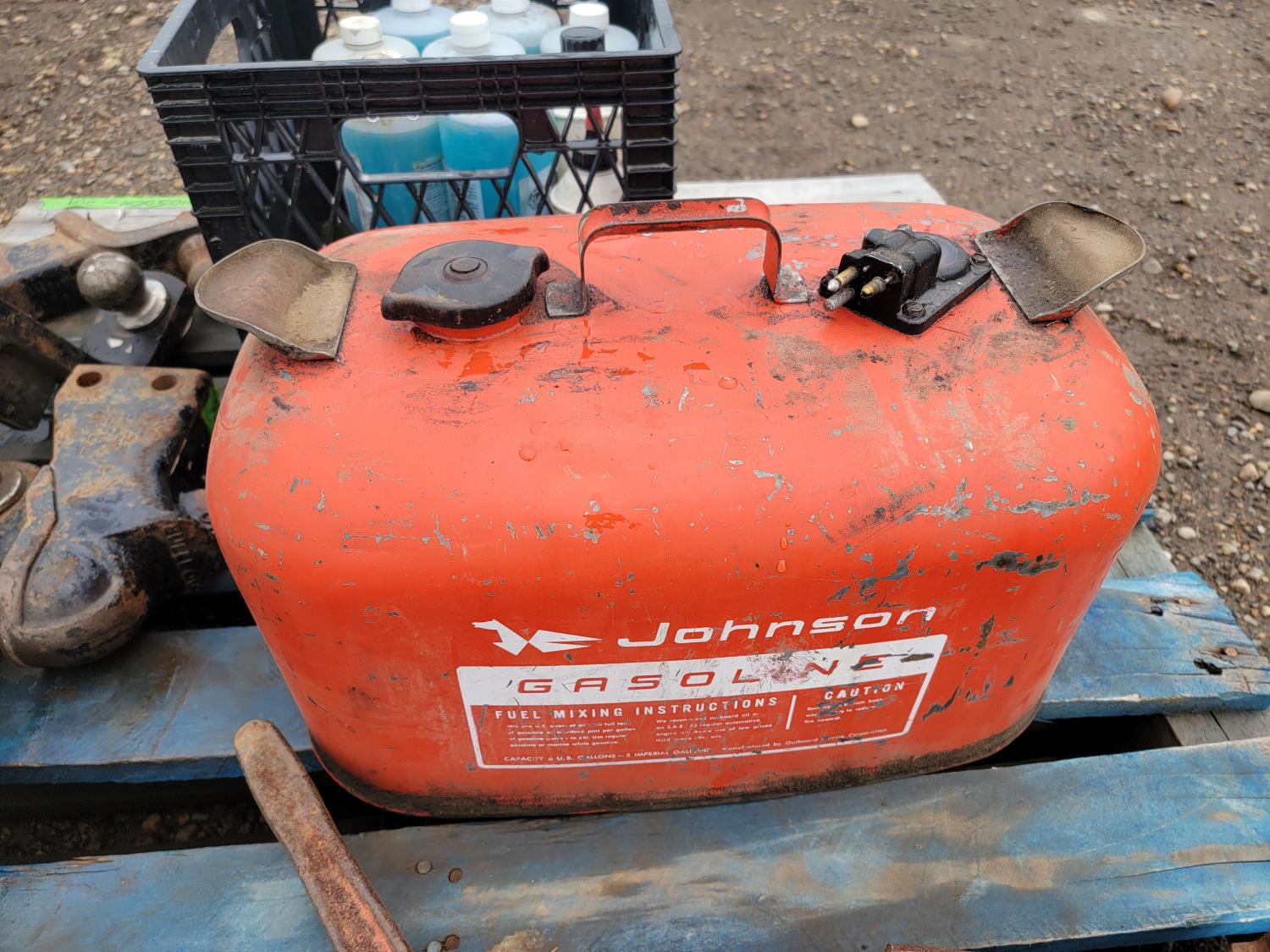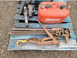 Hitches, boat gas can, jack-all, come-along, shop fluids