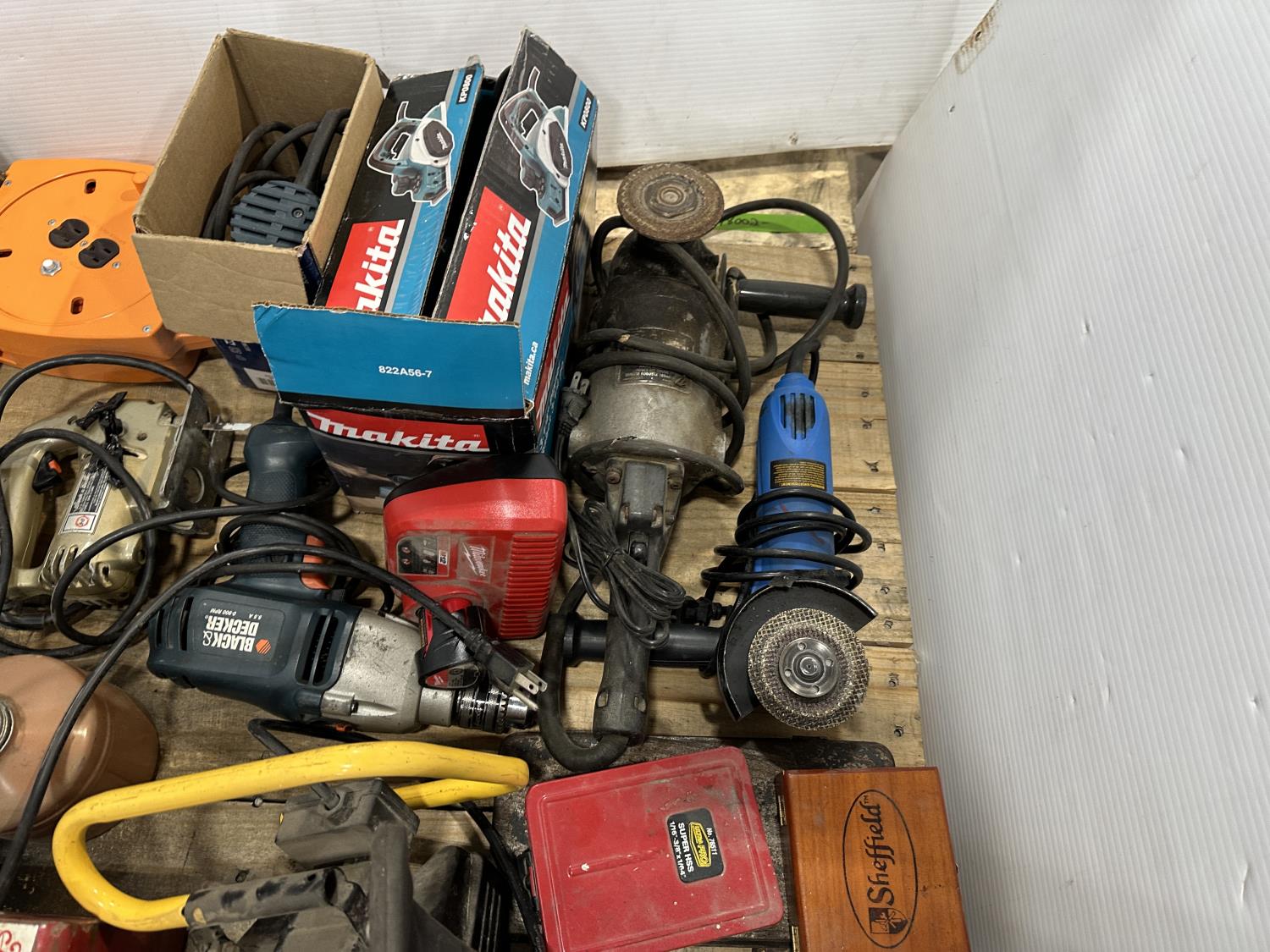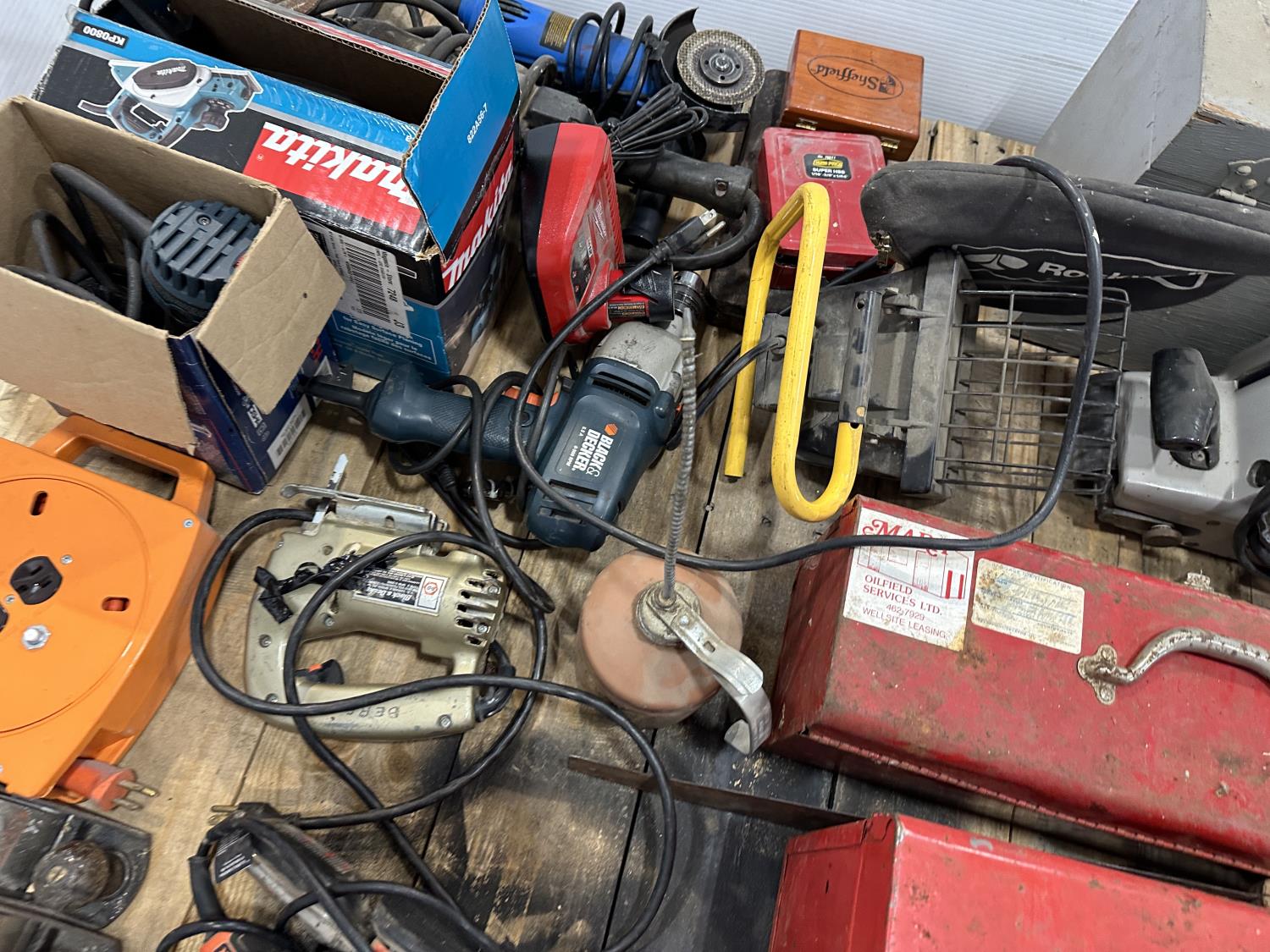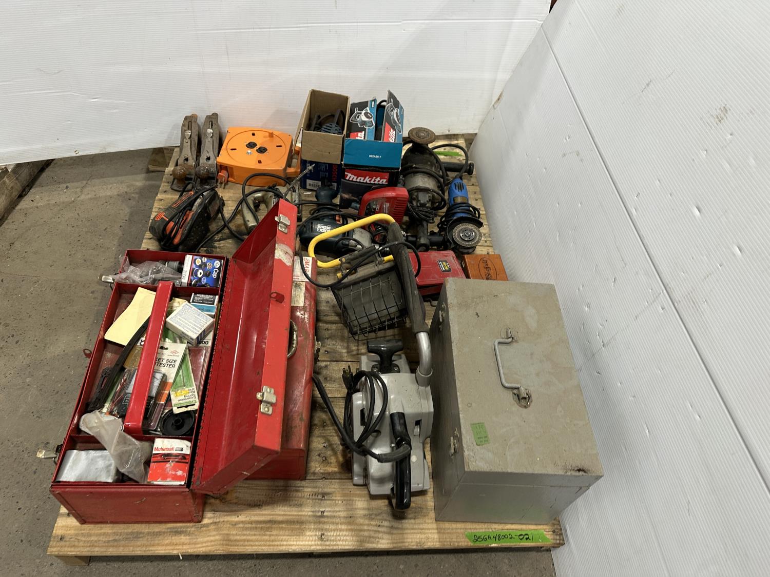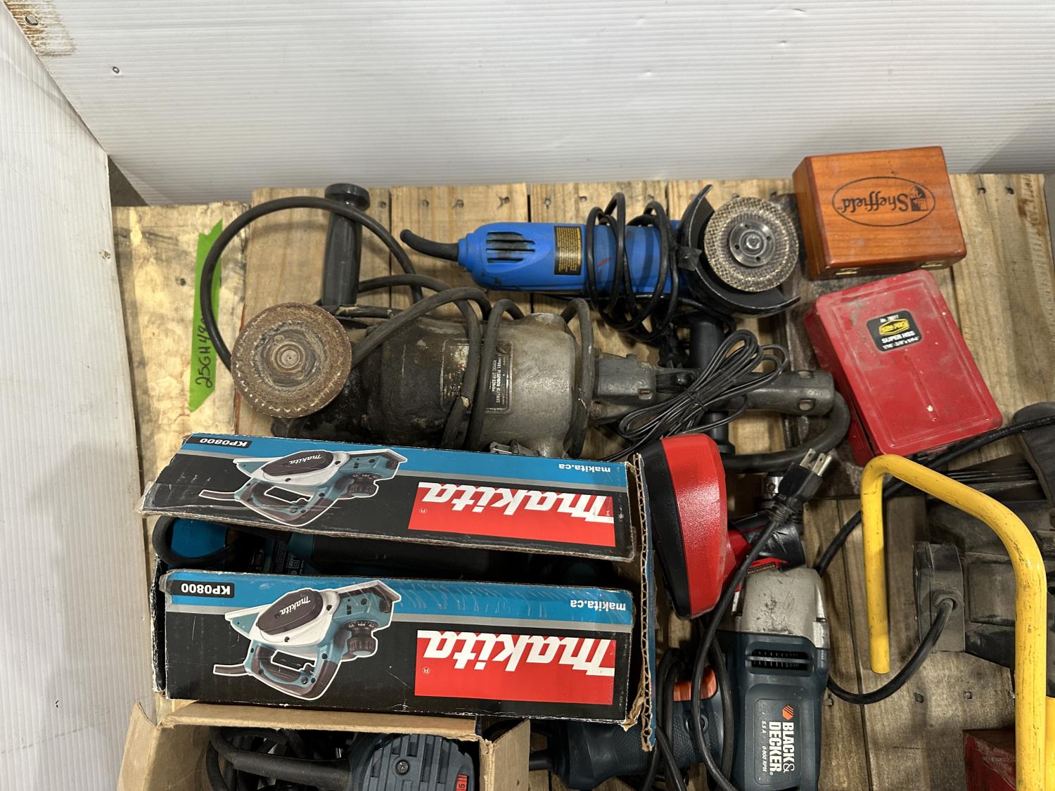 Rockwell planer, angle grinders, drills, palm sanders, tool boxes