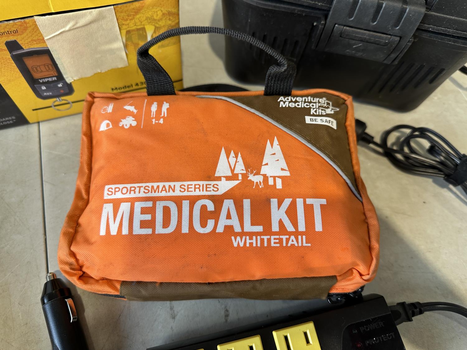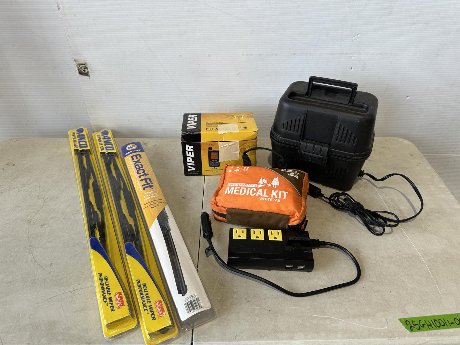 Medical kit, (3) windshield wiper blades, Viper remote car starter, electric lunch kit