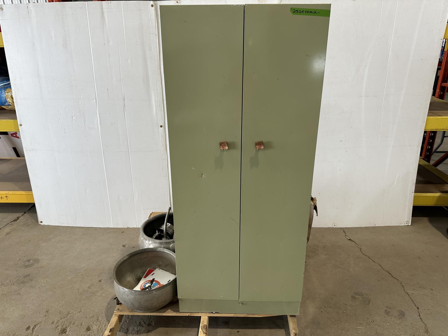 Metal storage cabinet 26 inch w x 12 inch d x 60 inch h, cream separator pieces, fireplace doors