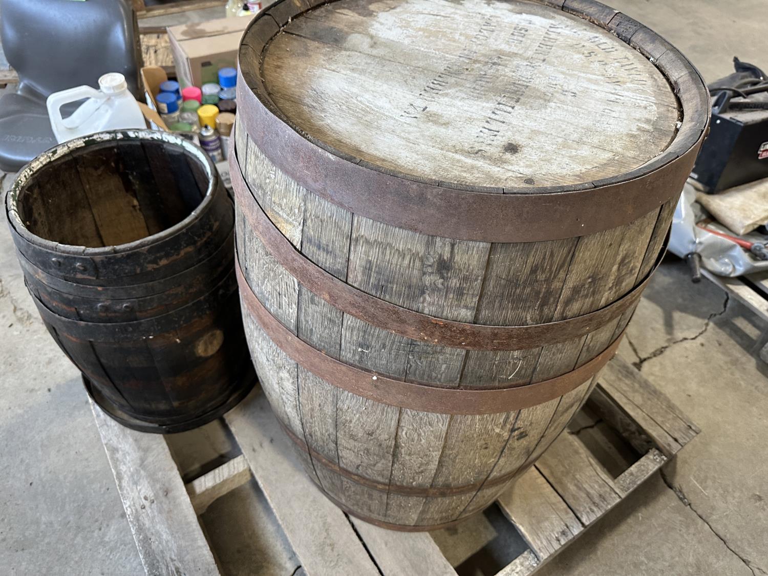 1309 Qty of Vintage Wooden Barrels and Box of Bottle Corks