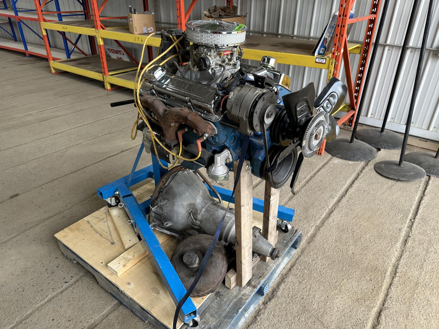 1272 Rebuilt 305 Chevrolet Engine with Engine Stand, 350 Transmission