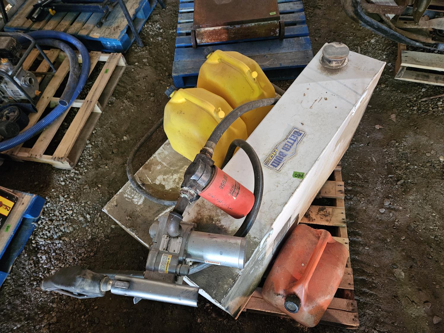 1805 Slip Tank w/ Pump & Nozzle, (3) Jerry Cans