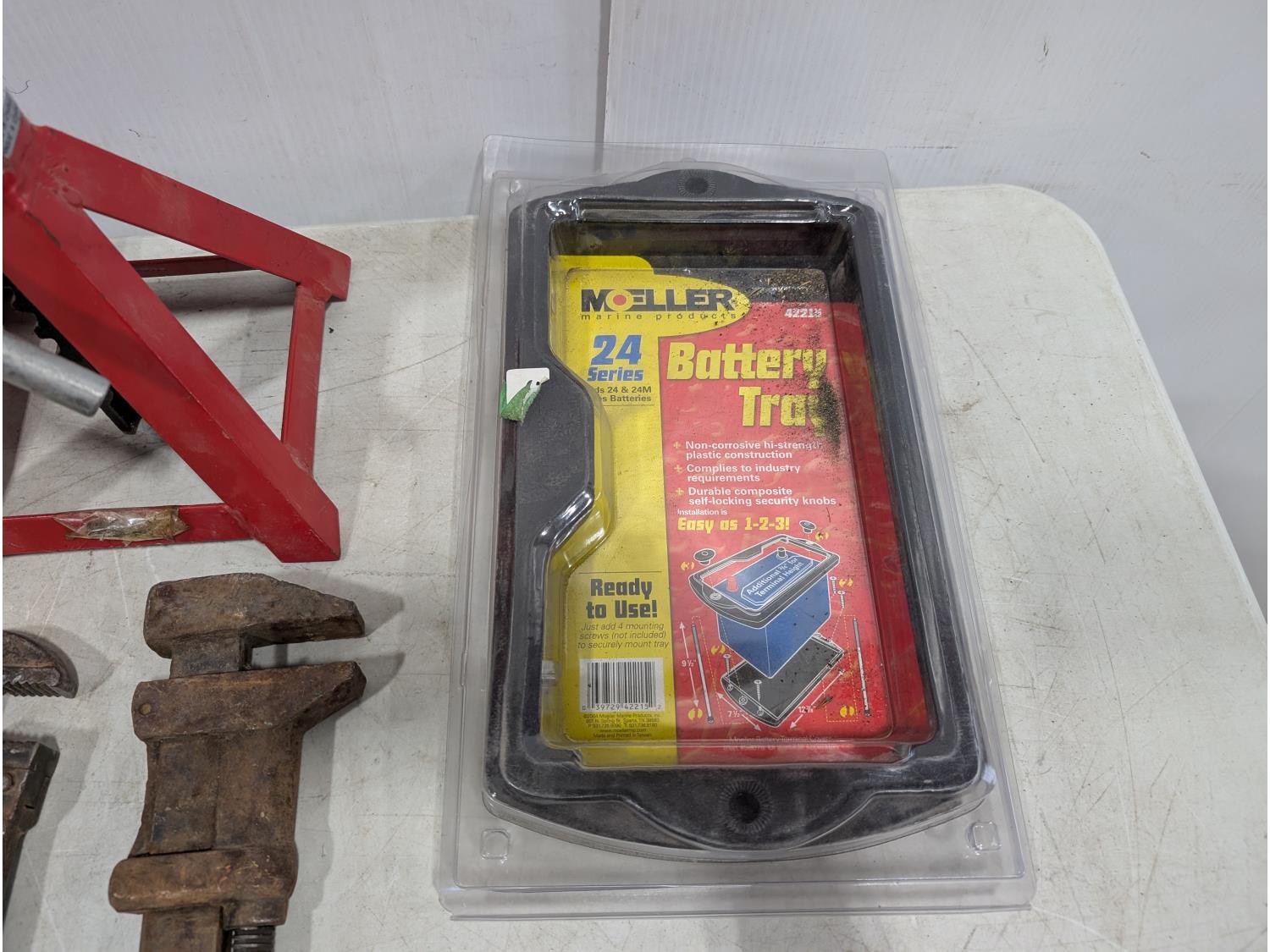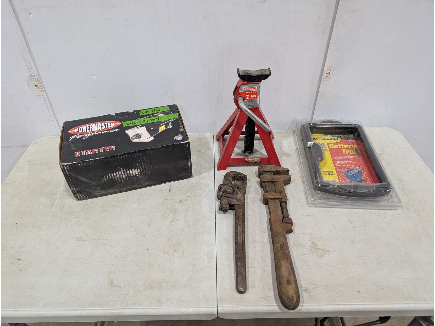 1041 Powermaster Starter For 350 Chevrolet Engine, Battery Tray, 2 Ton Jack Stand and Pipe Wrench