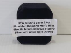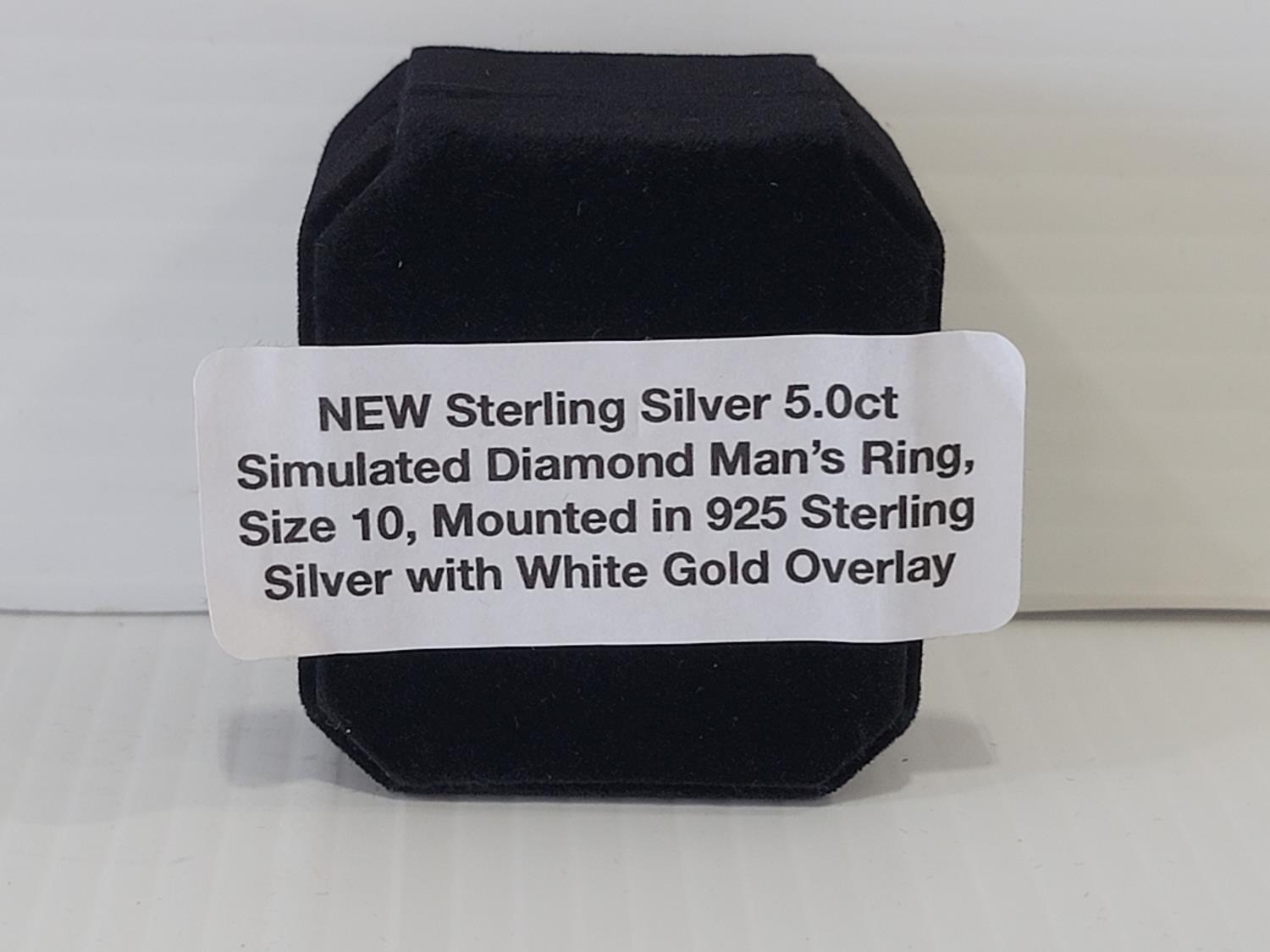 1550 Smartlife Sterling Silver 5.0 Ct Simulated Diamond Men's Ring - Size 10 (Unused)