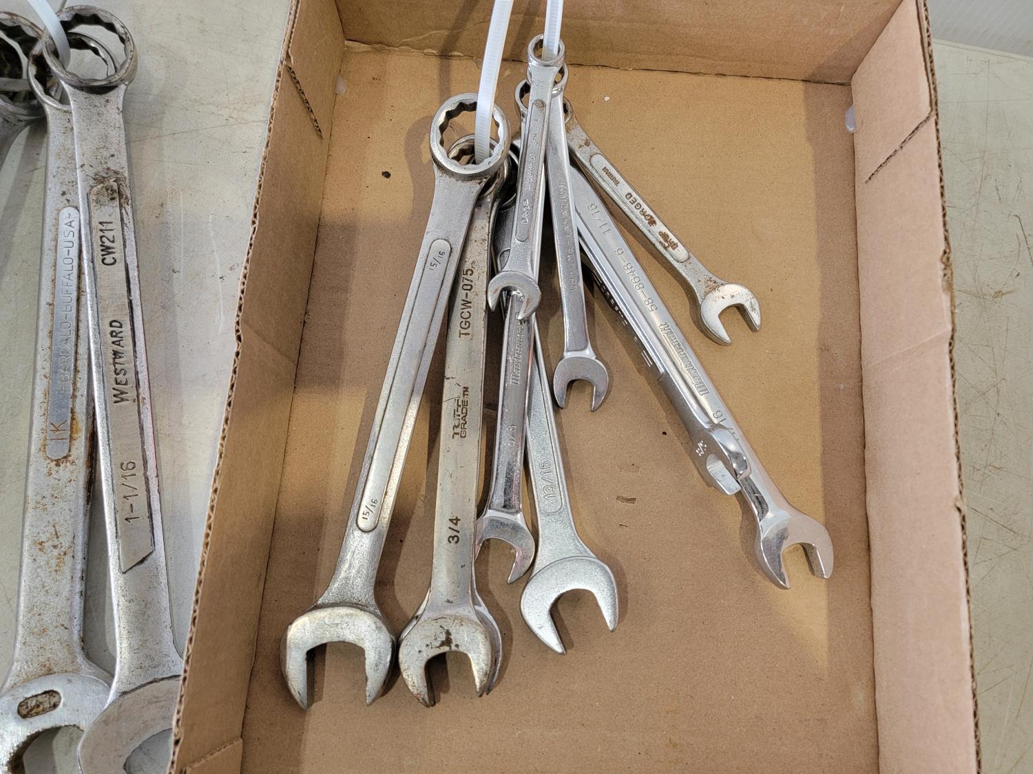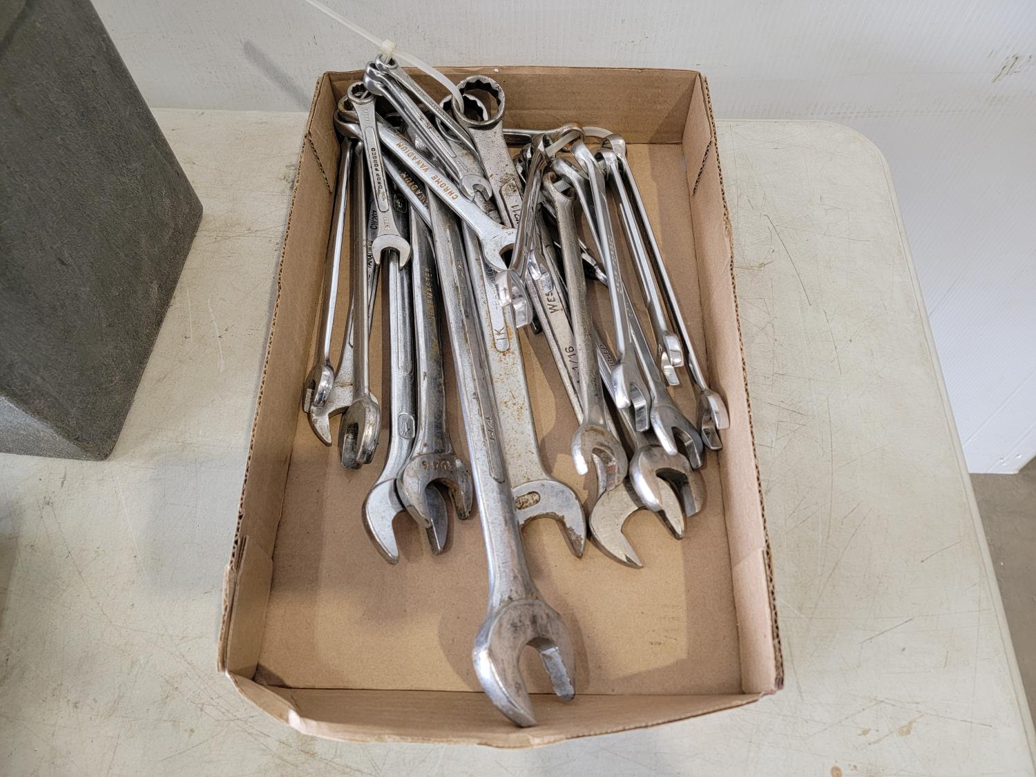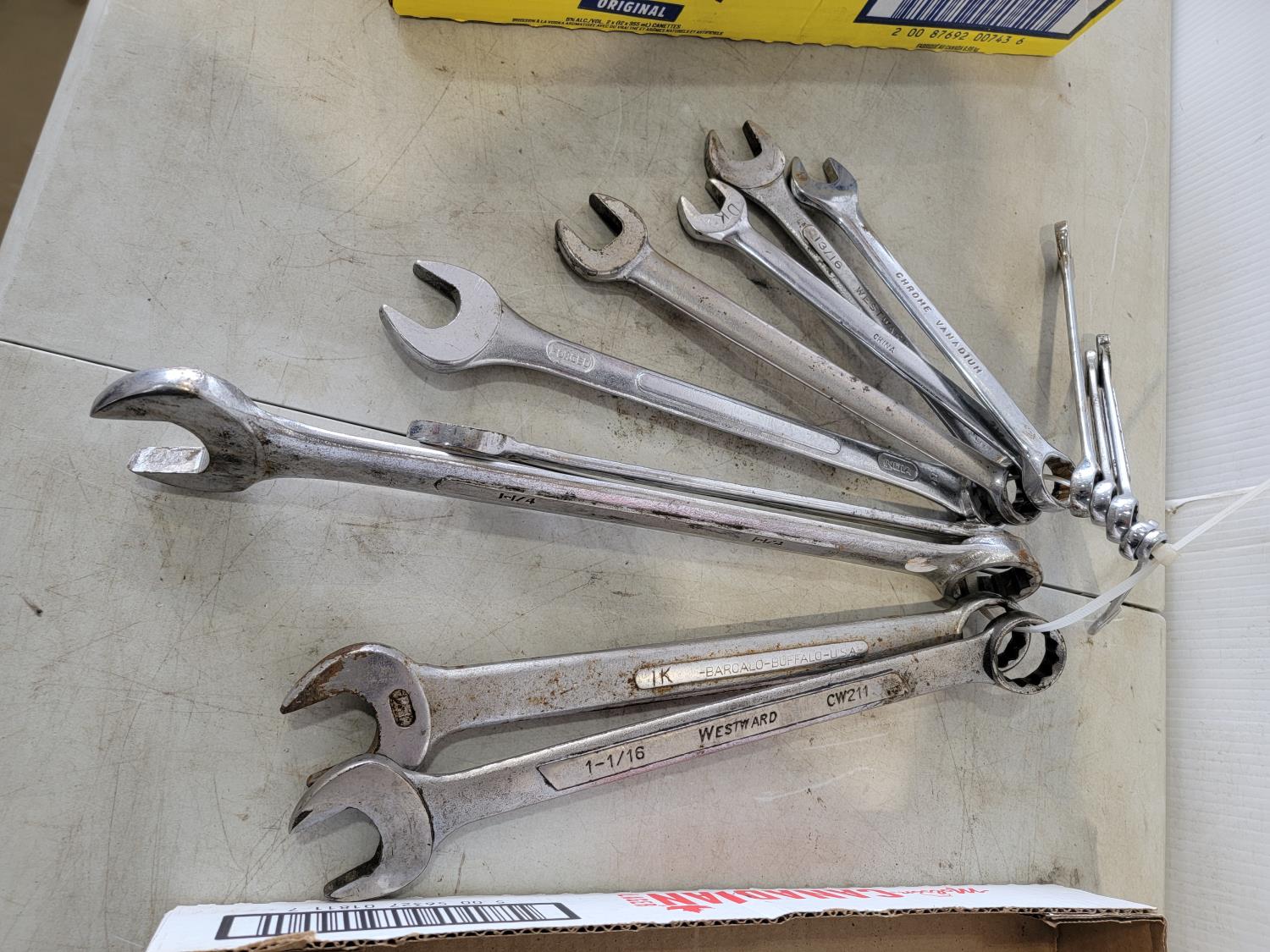 Sockets 1/4 inch and 3/8 inch drive, wrenches 3/8 inch to 1-1/4 inch