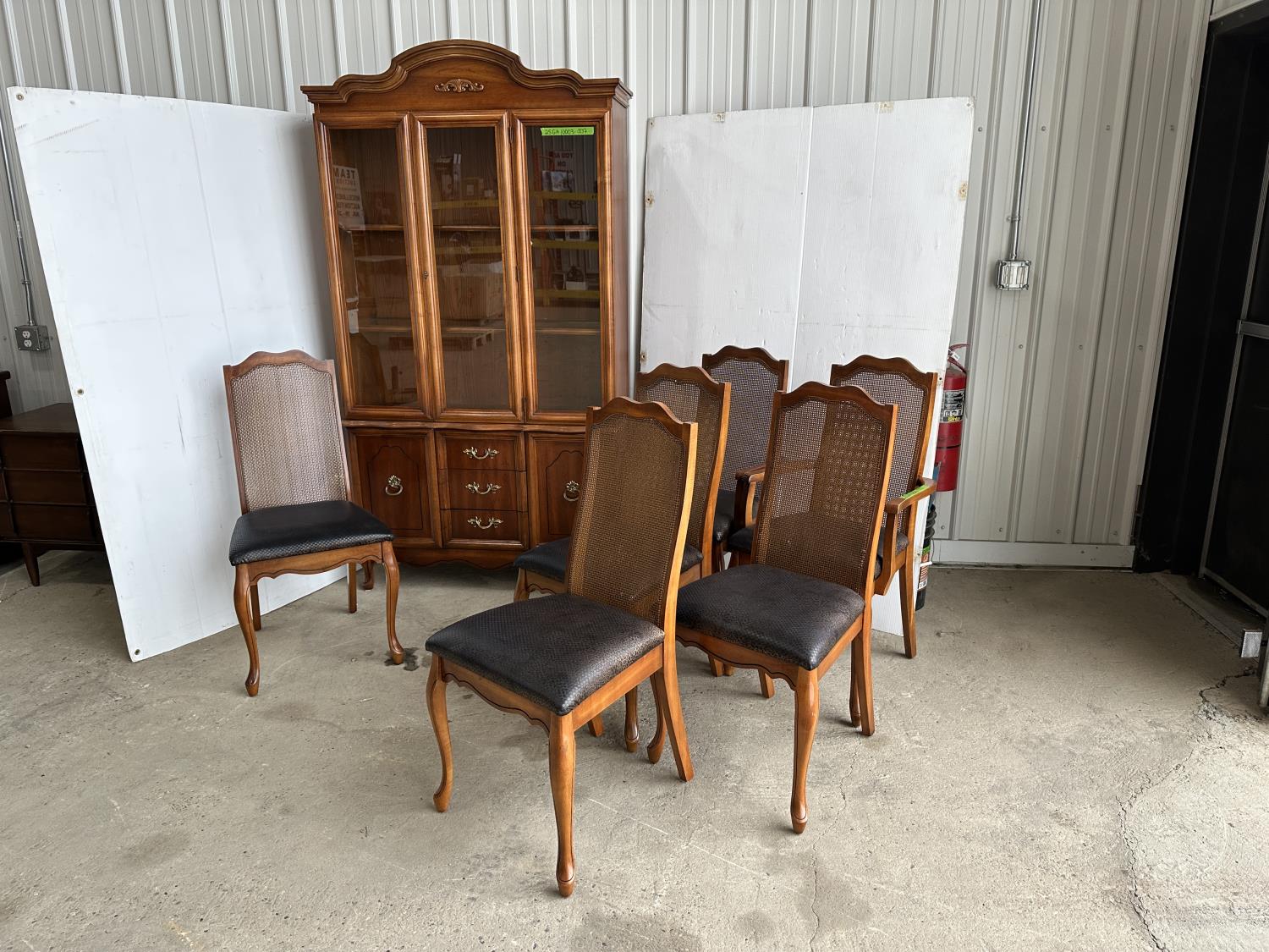 1342 Vintage China Cabinet and (6) Dining Chairs