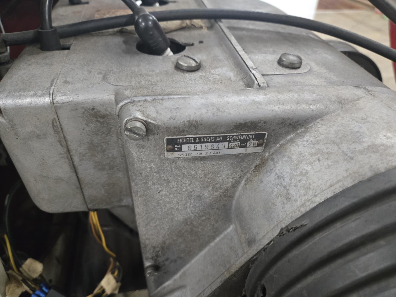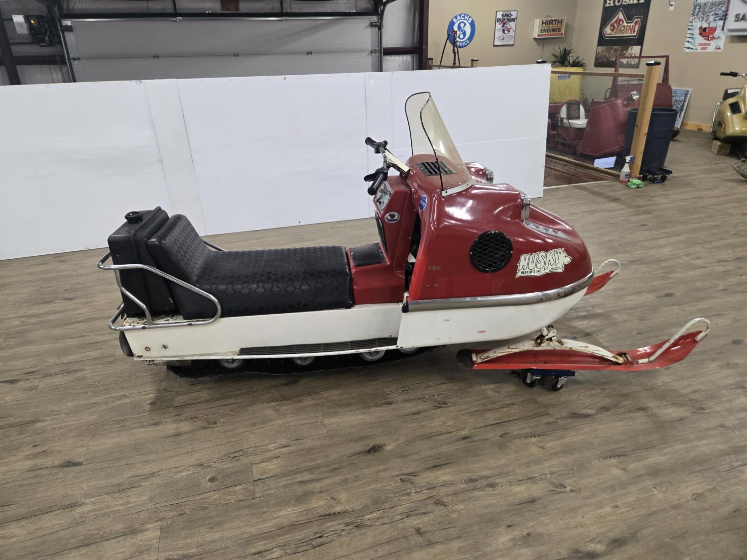436 cc Sachs 2 cylinder fan cooled engine, windshield, rear tow hitch, bogie suspension. This snowmobile has been in a 20 degree climate controlled showroom. Machine was in good running condition when placed in showroom. ***USA and Eastern Canada buyers shipping can be available. Call Lorne for further discussion. This sale is in Canadian dollars