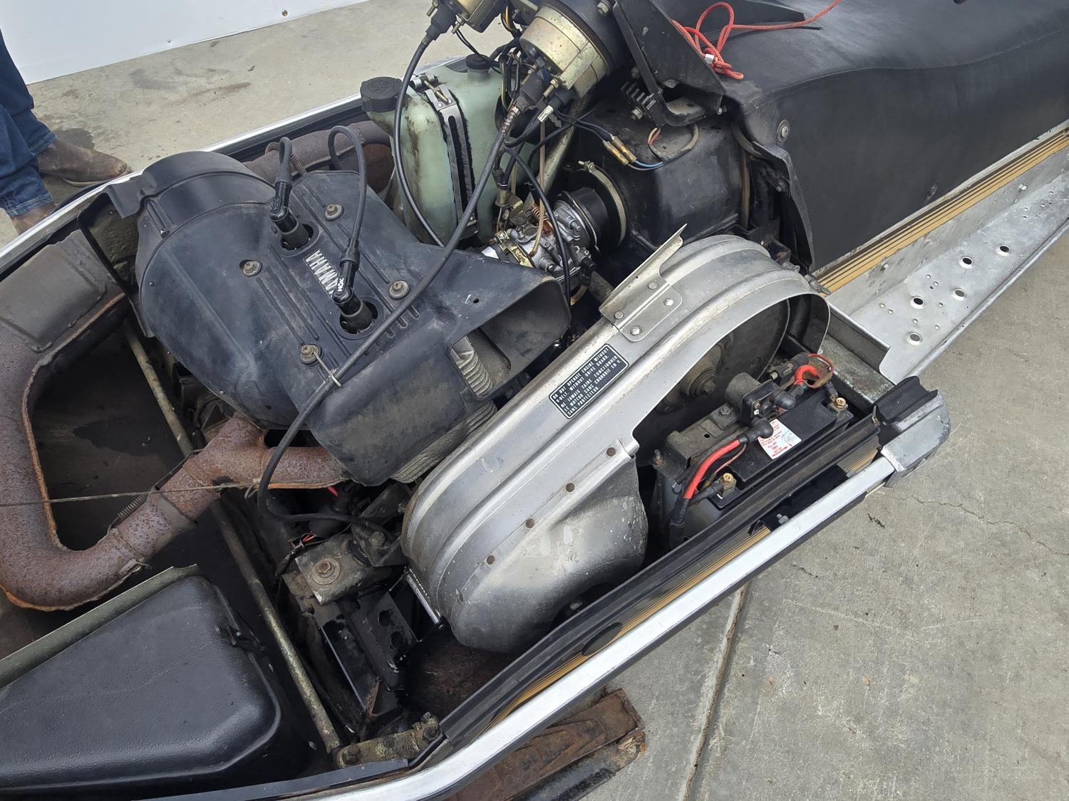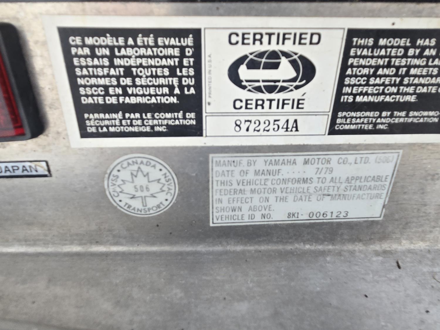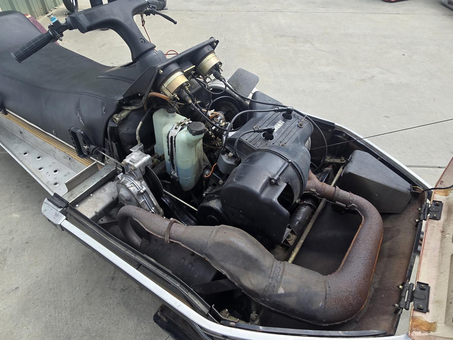 Yamaha 540 cc twin cylinder 2 stoke engine, electric start, windshield, rear tow hitch, bogie suspension, rear seat trunk. This snowmobile has been in dry storage. ***USA and Eastern Canada buyers shipping can be available. Call Lorne for further discussion. This sale is in Canadian dollars
