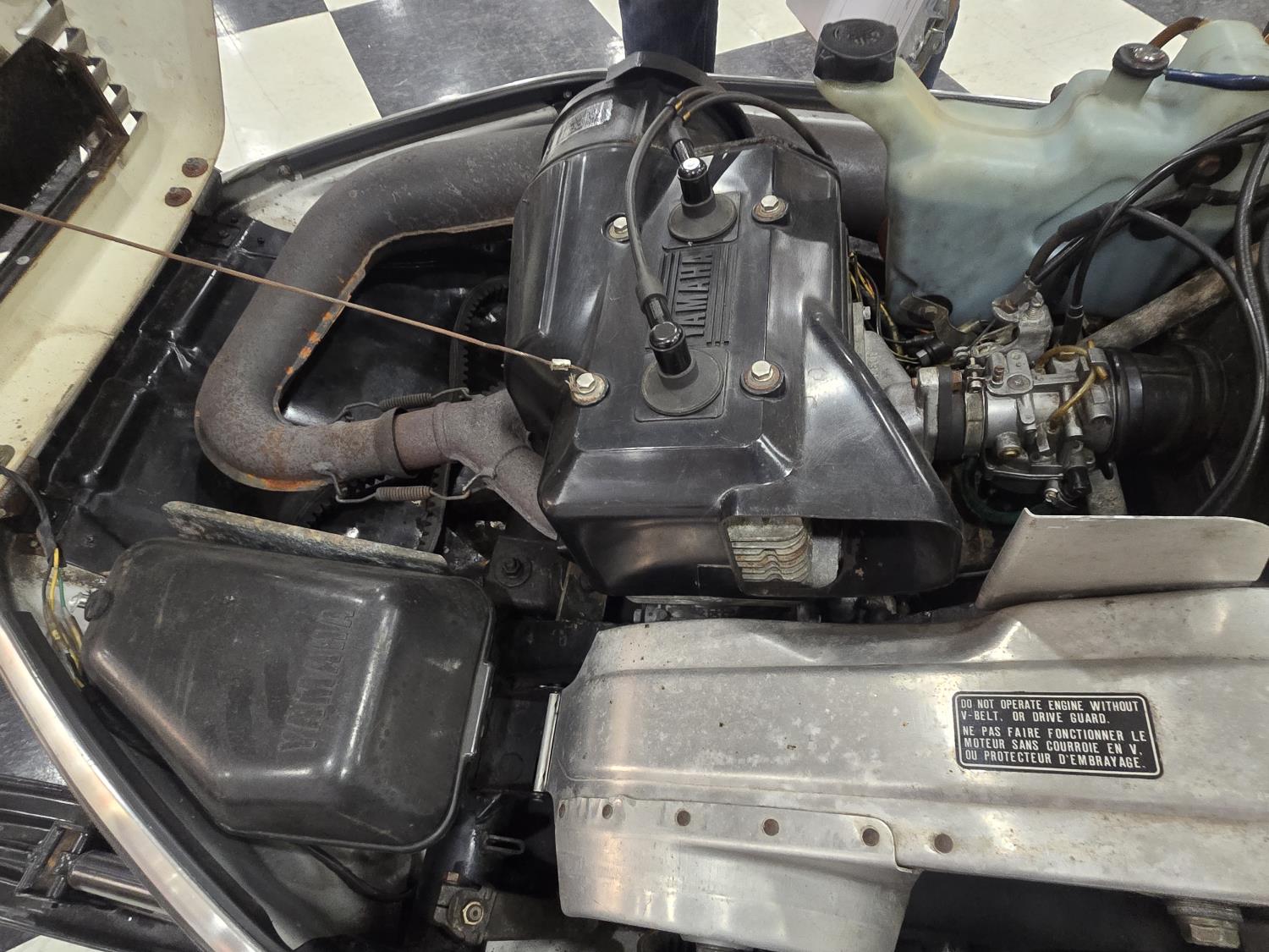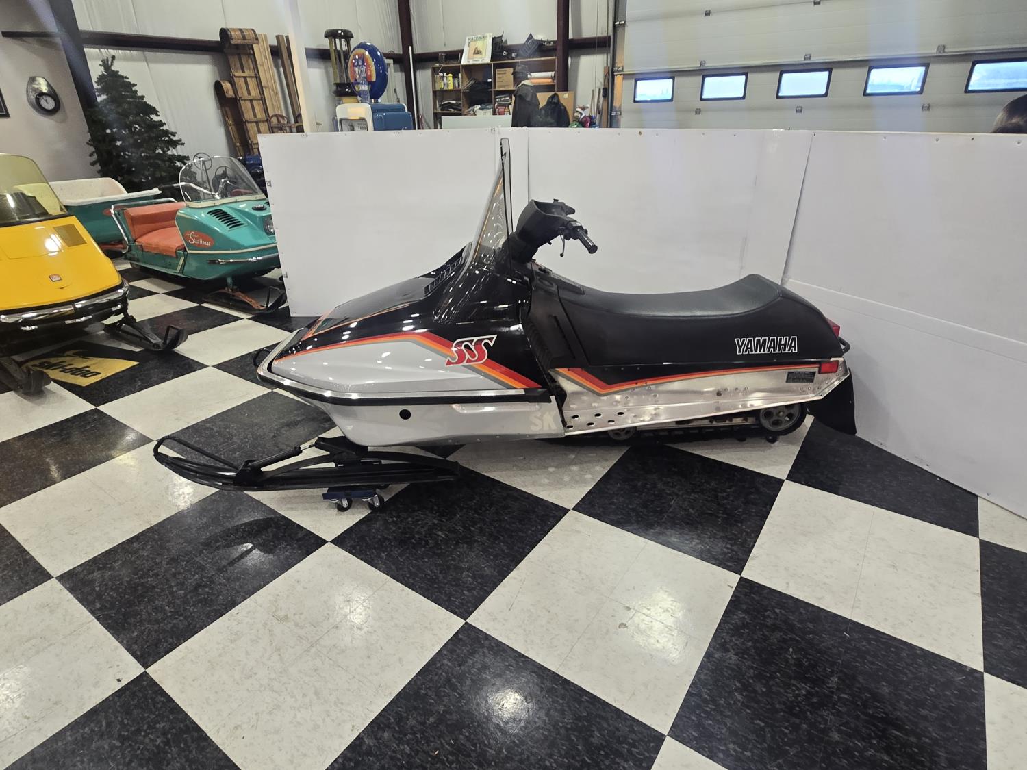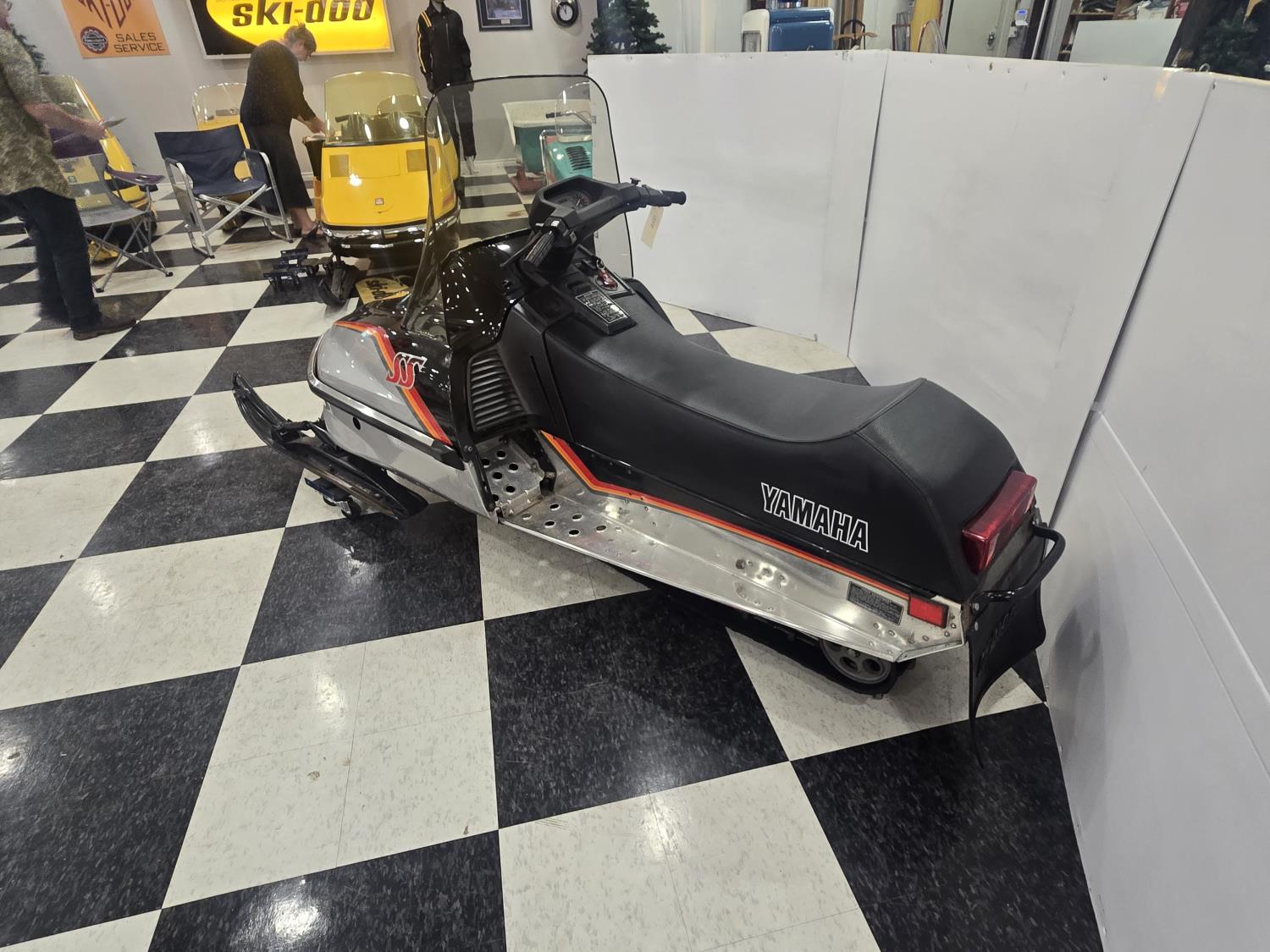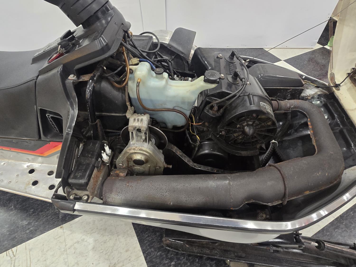 440 cc Yamaha oil injected 2 cylinder 2 stroke fan cooled engine, windshield, rear tow hitch, slide rail suspension, has high windshield instead of low original one, otherwise original. This snowmobile has been in a 20 degree climate controlled showroom. Machine was in good running condition when placed in showroom. ***USA and Eastern Canada buyers shipping can be available. Call Lorne for further discussion. This sale is in Canadian dollars