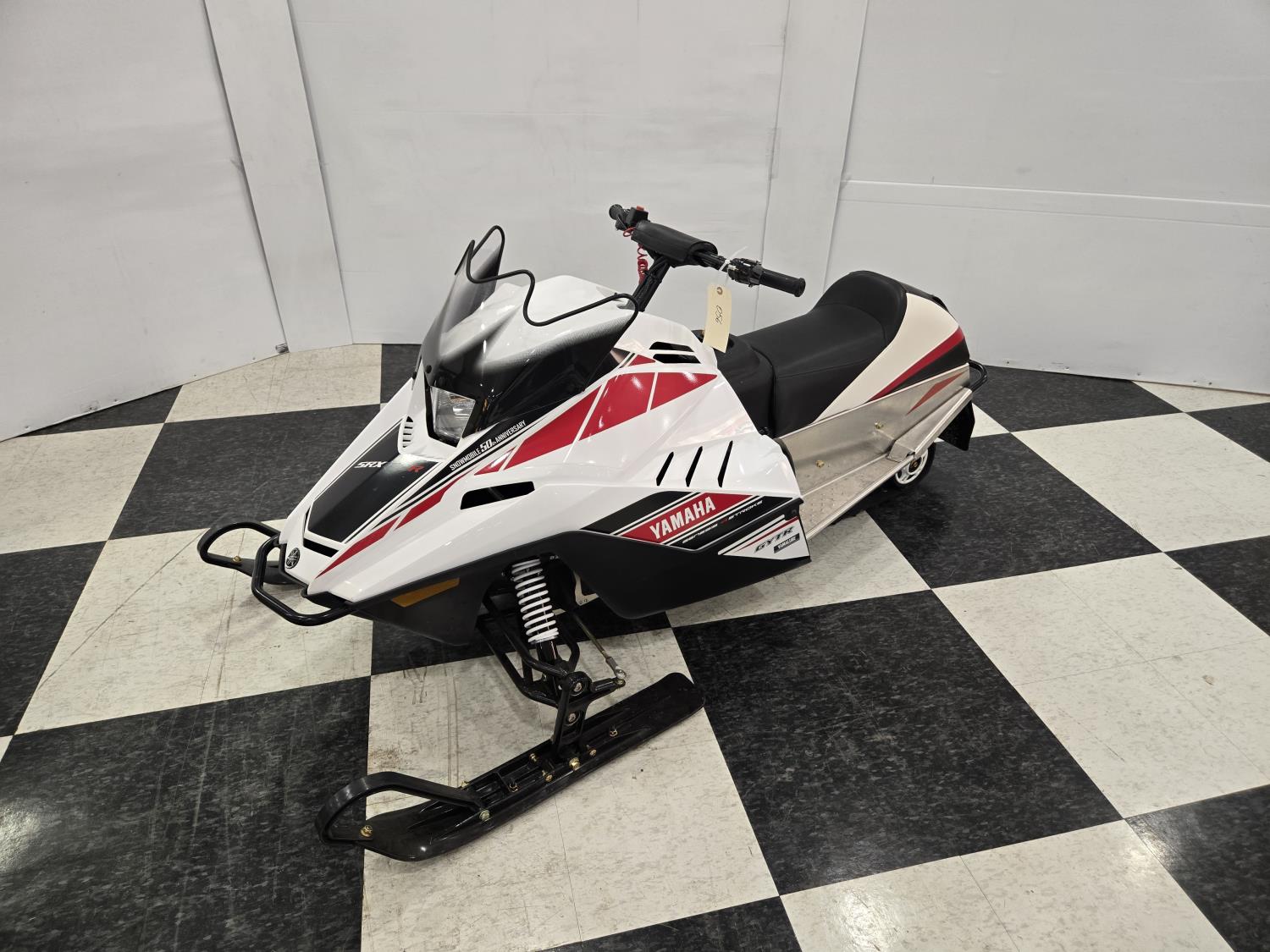 120 cc Yamaha 1 cylinder 4 stroke fan cooled engine, windshield. This snowmobile has been in a 20 degree climate controlled showroom. Machine was never started. ***USA and Eastern Canada buyers shipping can be available. Call Lorne for further discussion. This sale is in Canadian dollars