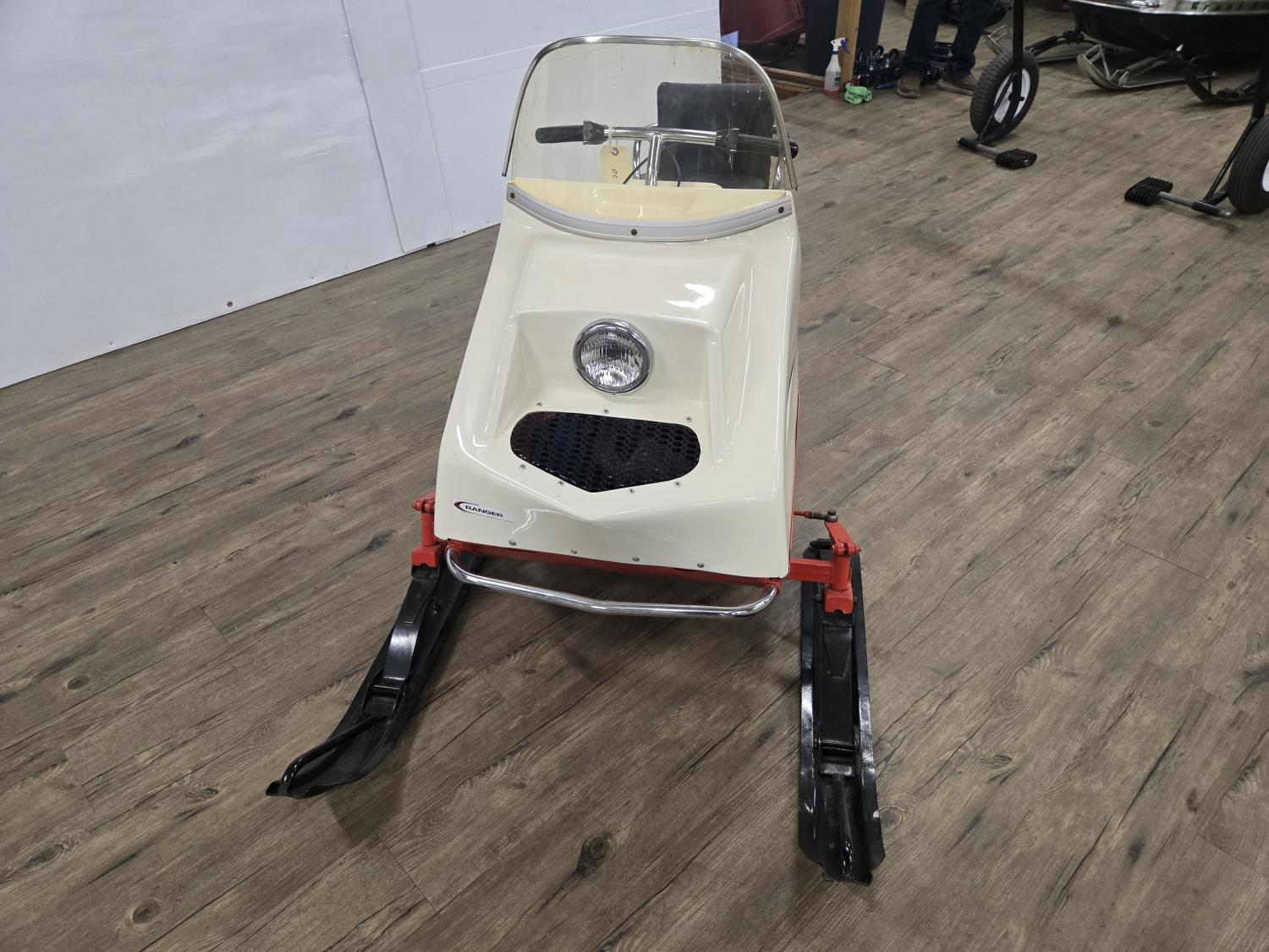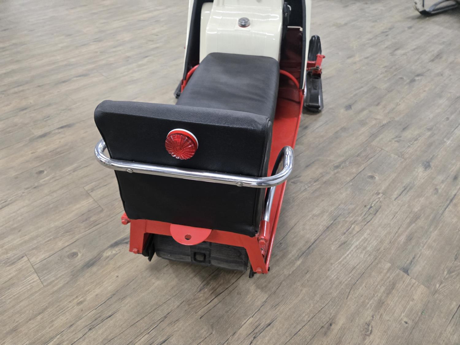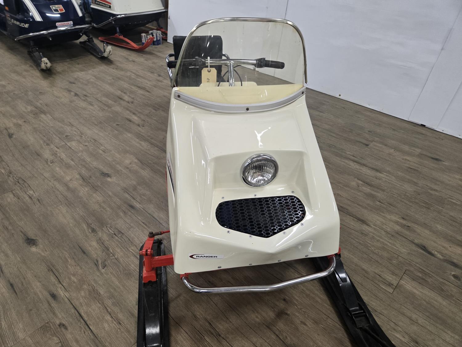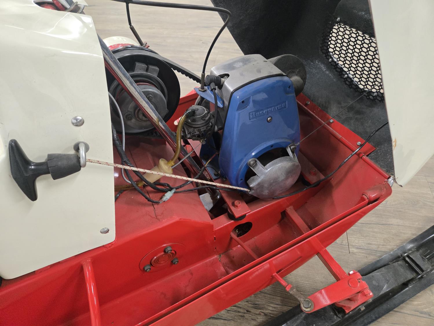 125 cc Husqvarna 1 cylinder 2 stroke fan cooled engine, windshield, rear tow hitch, 1st year Ranger was made. This snowmobile has been in a 20 degree climate controlled showroom. Machine was in good running condition when placed in showroom. ***USA and Eastern Canada buyers shipping can be available. Call Lorne for further discussion. This sale is in Canadian dollars