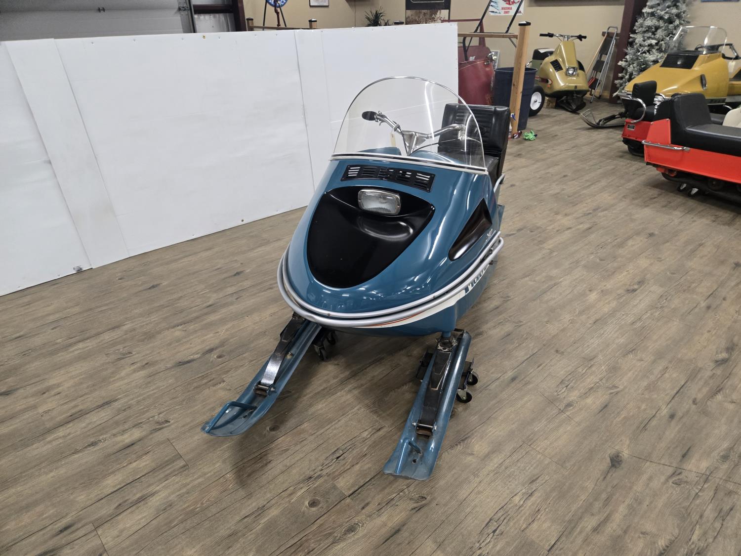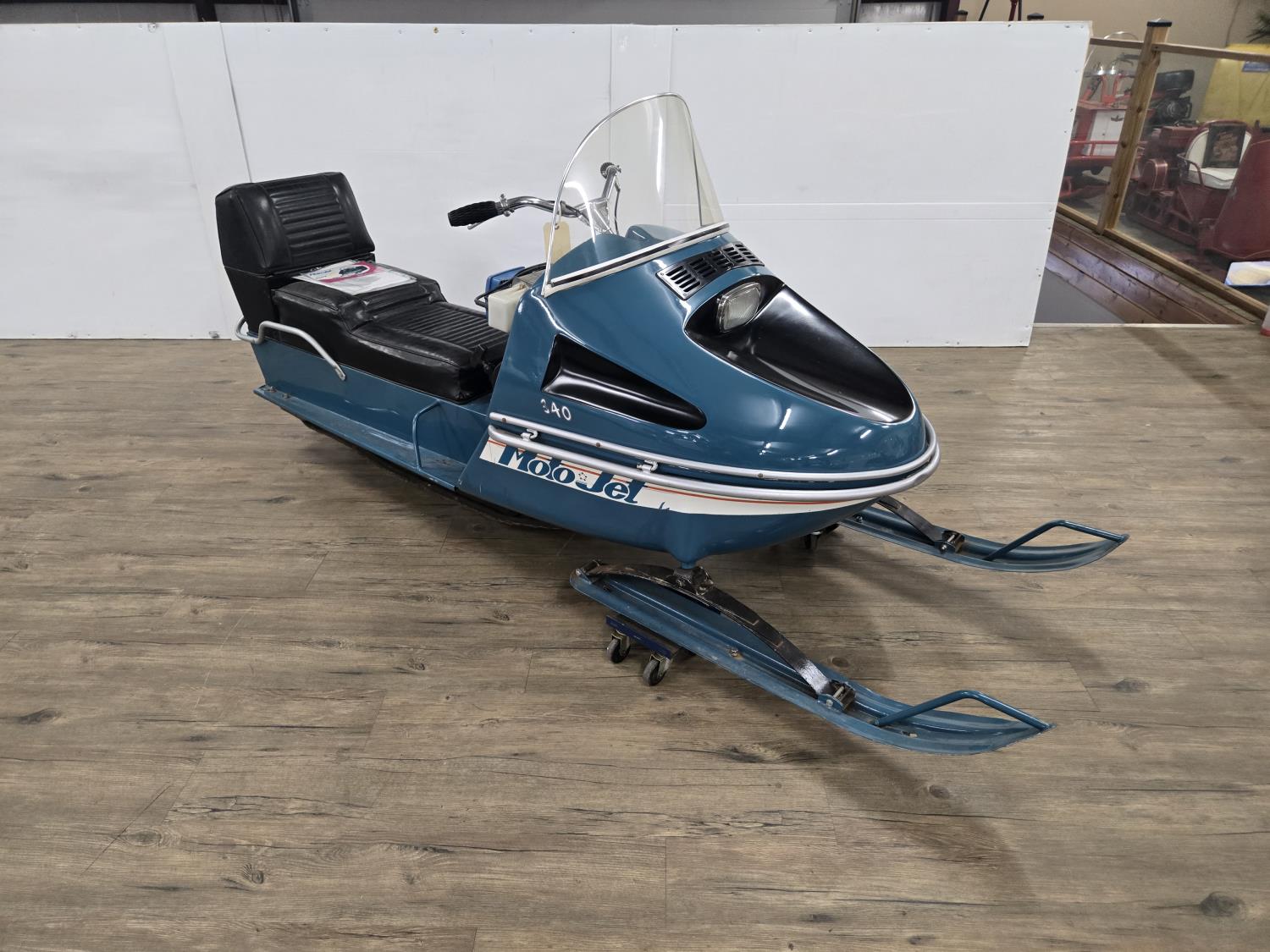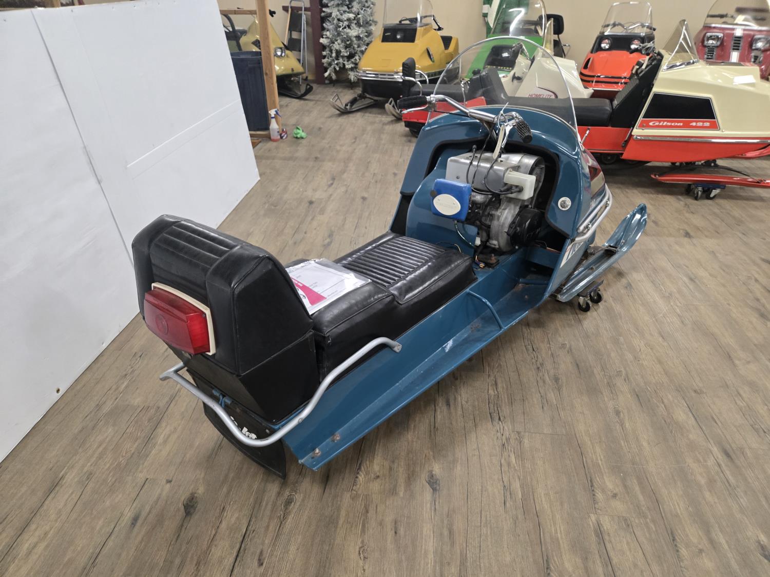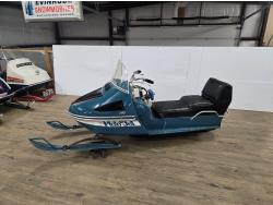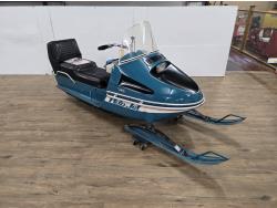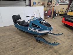 340 cc Kohler 1 cylinder Fan cooled engine, windshield, 2 up seat with backrest, rear tow hitch, bogie suspension, hood opens sideways, made in Quebec. This snowmobile has been in a 20 degree climate controlled showroom. Machine was in good running condition when placed in showroom. ***USA and Eastern Canada buyers shipping can be available. Call Lorne for further discussion. This sale is in Canadian dollars