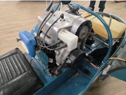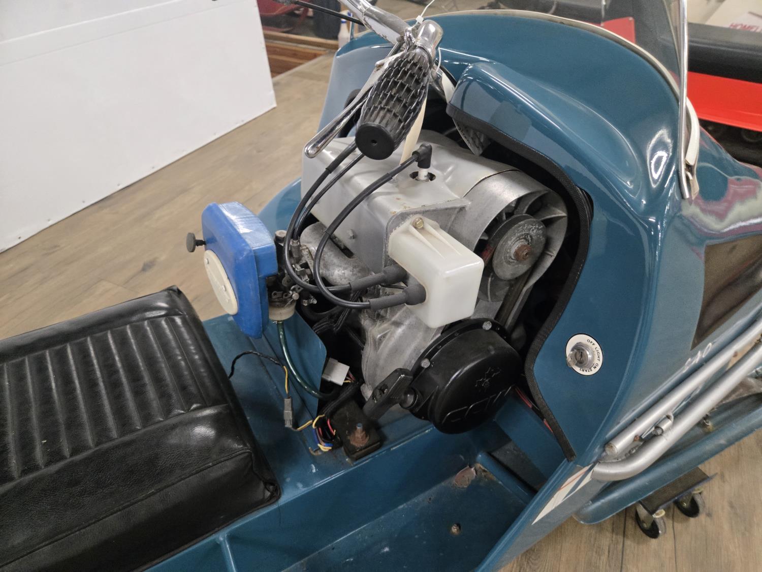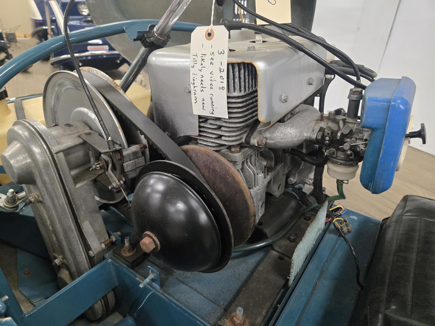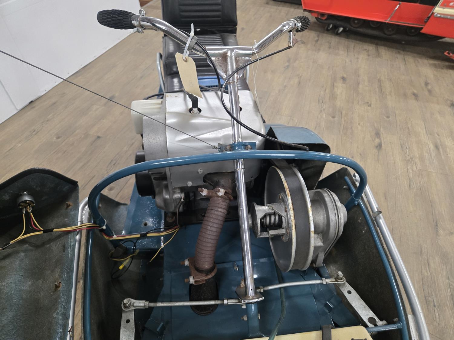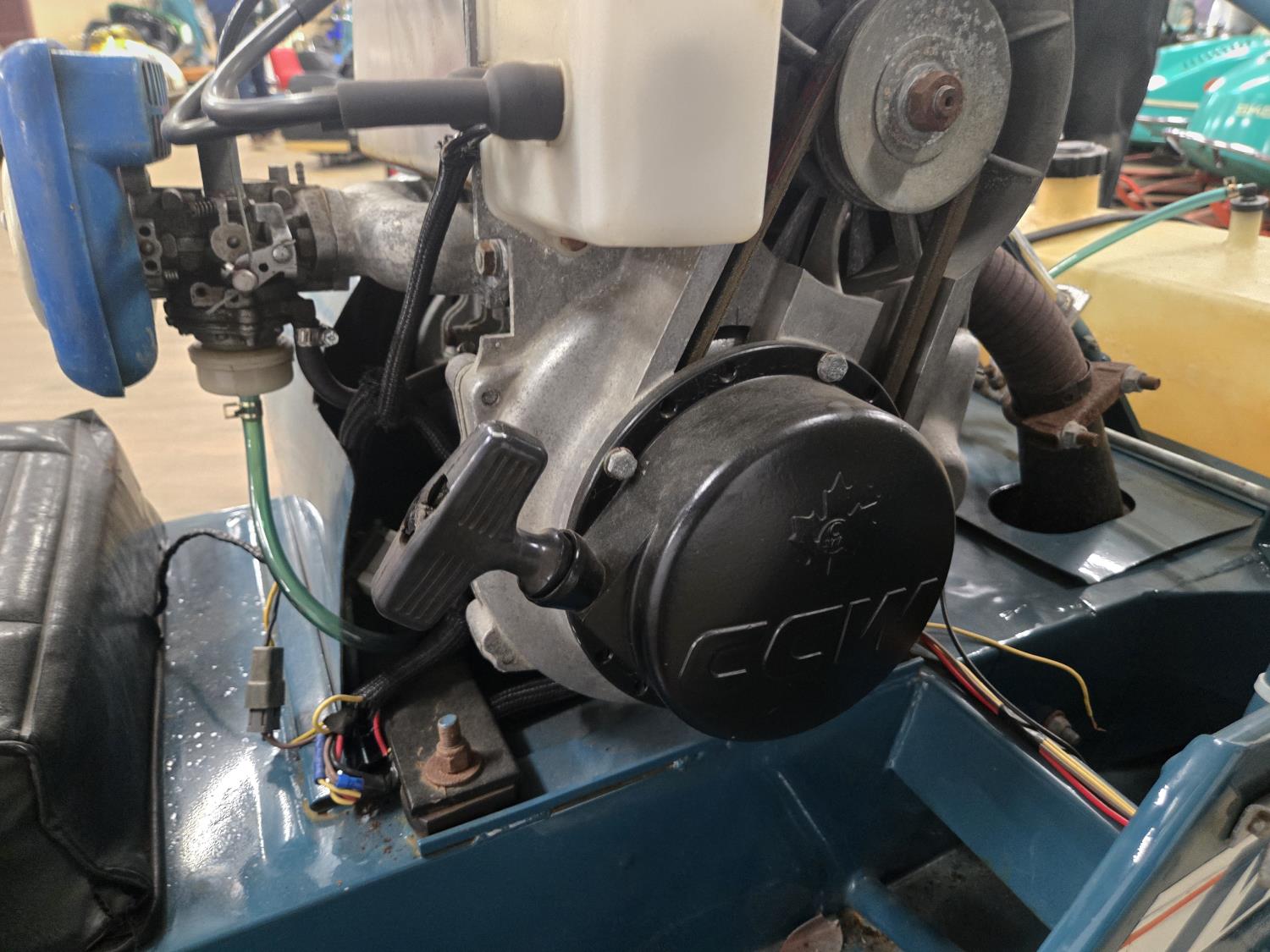 340 cc Kohler 1 cylinder Fan cooled engine, windshield, 2 up seat with backrest, rear tow hitch, bogie suspension, hood opens sideways, made in Quebec. This snowmobile has been in a 20 degree climate controlled showroom. Machine was in good running condition when placed in showroom. ***USA and Eastern Canada buyers shipping can be available. Call Lorne for further discussion. This sale is in Canadian dollars
