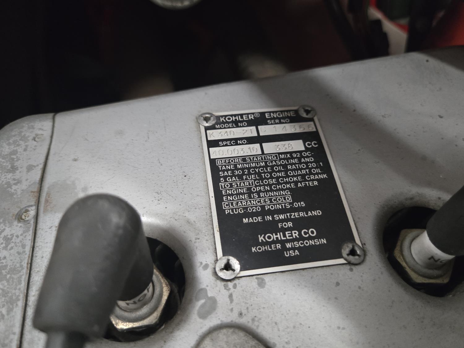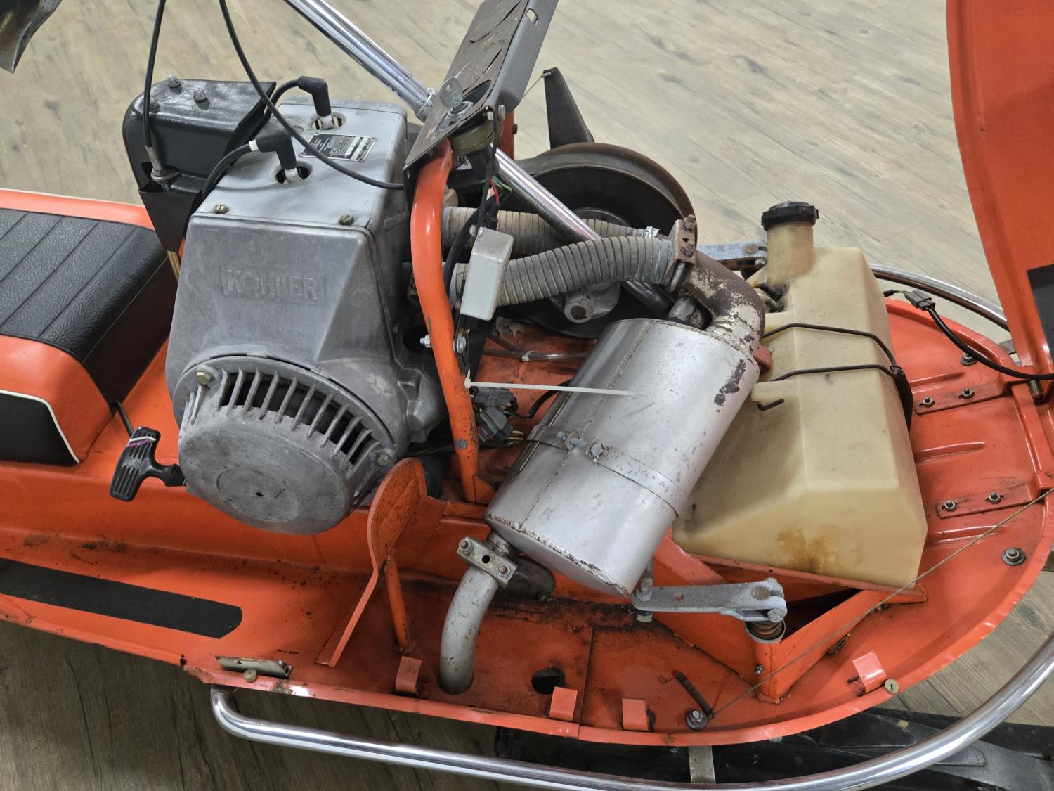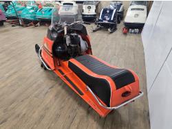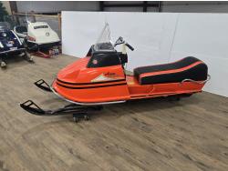 338 cc Kohler 2 cylinder 2 stroke fan cooled engine, windshield, under seat storage, bogie suspension. This snowmobile has been in a 20 degree climate controlled showroom. Machine was in good running condition when placed in showroom. ***USA and Eastern Canada buyers shipping can be available. Call Lorne for further discussion. This sale is in Canadian dollars