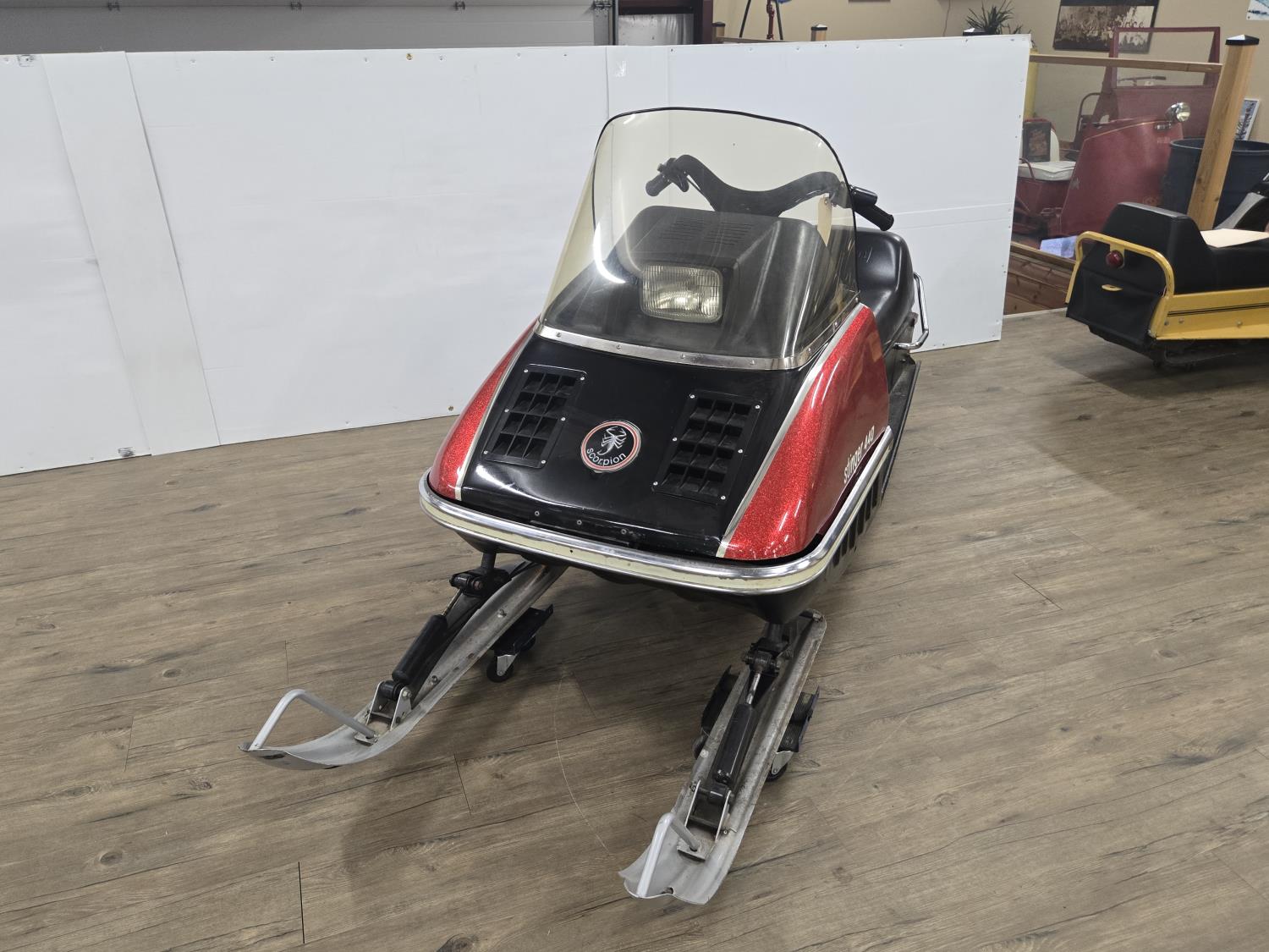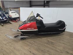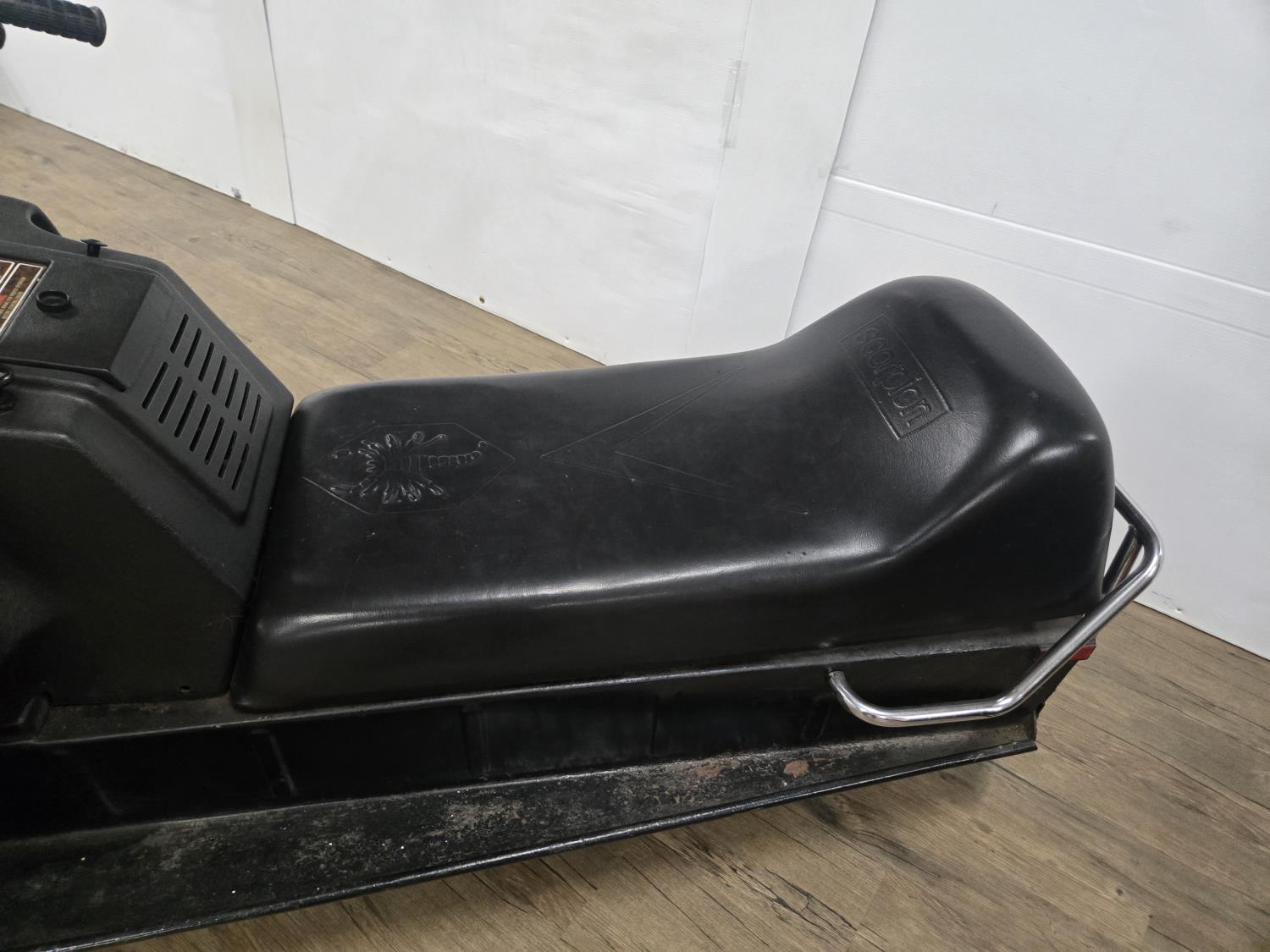 Rockwell 434 cc twin cylinder fan cooled 2 stroke engine, windshield, bogie suspension. This snowmobile has been in a 20 degree climate controlled showroom. Machine was in good running condition when placed in showroom. ***USA and Eastern Canada buyers shipping can be available. Call Lorne for further discussion. This sale is in Canadian dollars