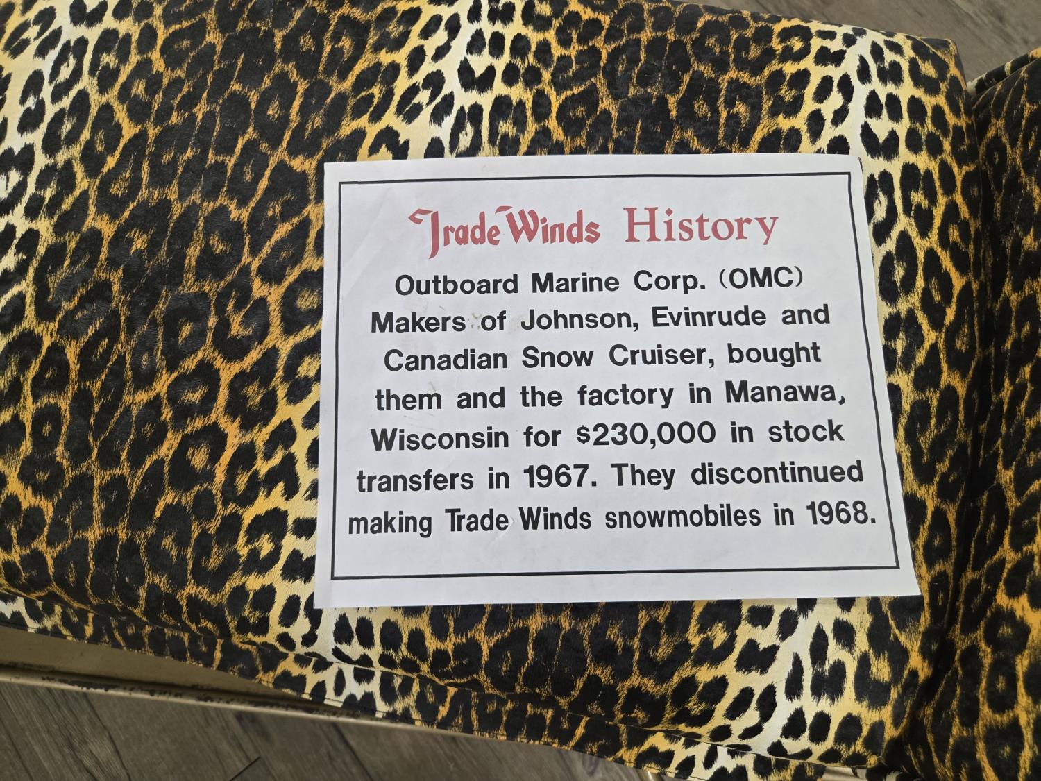 34 1968 Trade Winds Cheetah Snowmobile