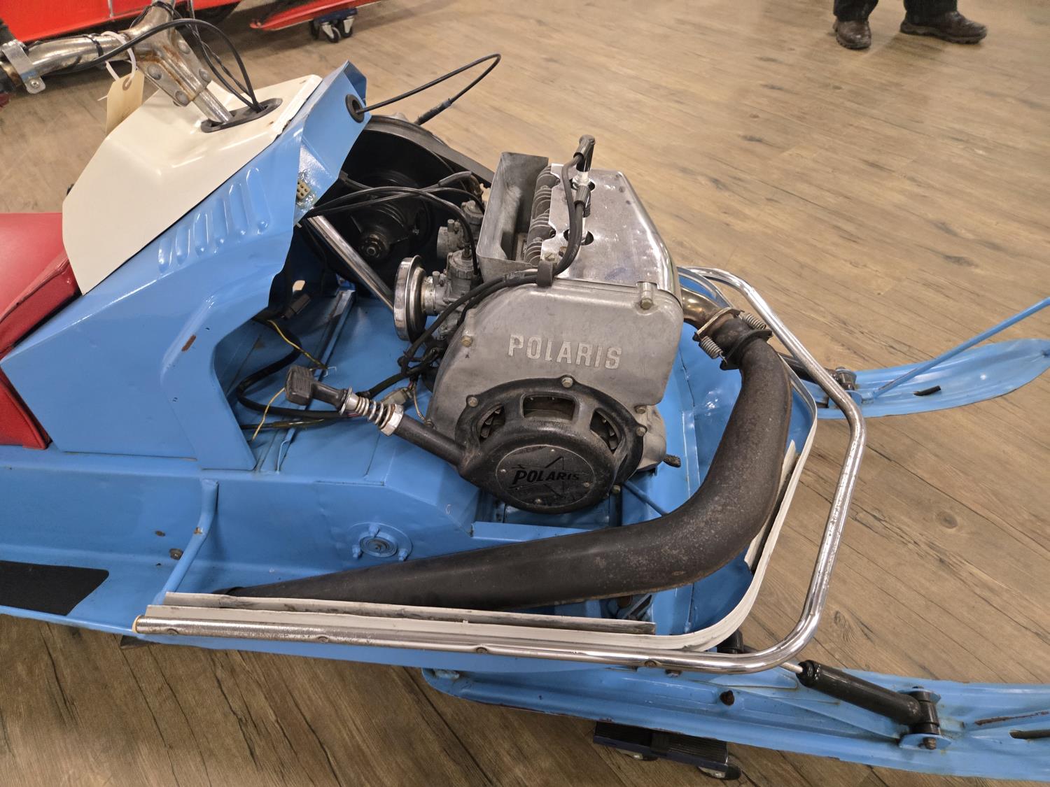 335 cc Polaris 2 cylinder 2 stroke fan cooled engine, windshield, rear tow hitch, slide suspension. This snowmobile has been in a 20 degree climate controlled showroom. Machine was in good running condition when placed in showroom. ***USA and Eastern Canada buyers shipping can be available. Call Lorne for further discussion. This sale is in Canadian dollars