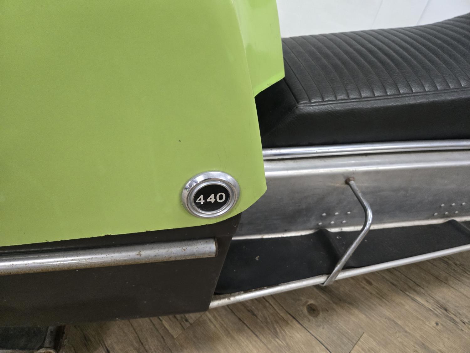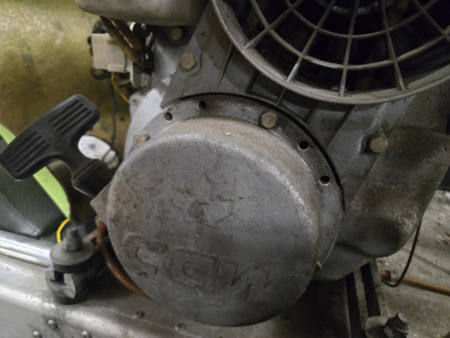 440 cc CCW 2 cylinder fan cooled engine, windshield, rear tow hitch, bogie suspension, cutter sells separately. This snowmobile has been in a 20 degree climate controlled showroom. Machine was in good running condition when placed in showroom. ***USA and Eastern Canada buyers shipping can be available. Call Lorne for further discussion. This sale is in Canadian dollars