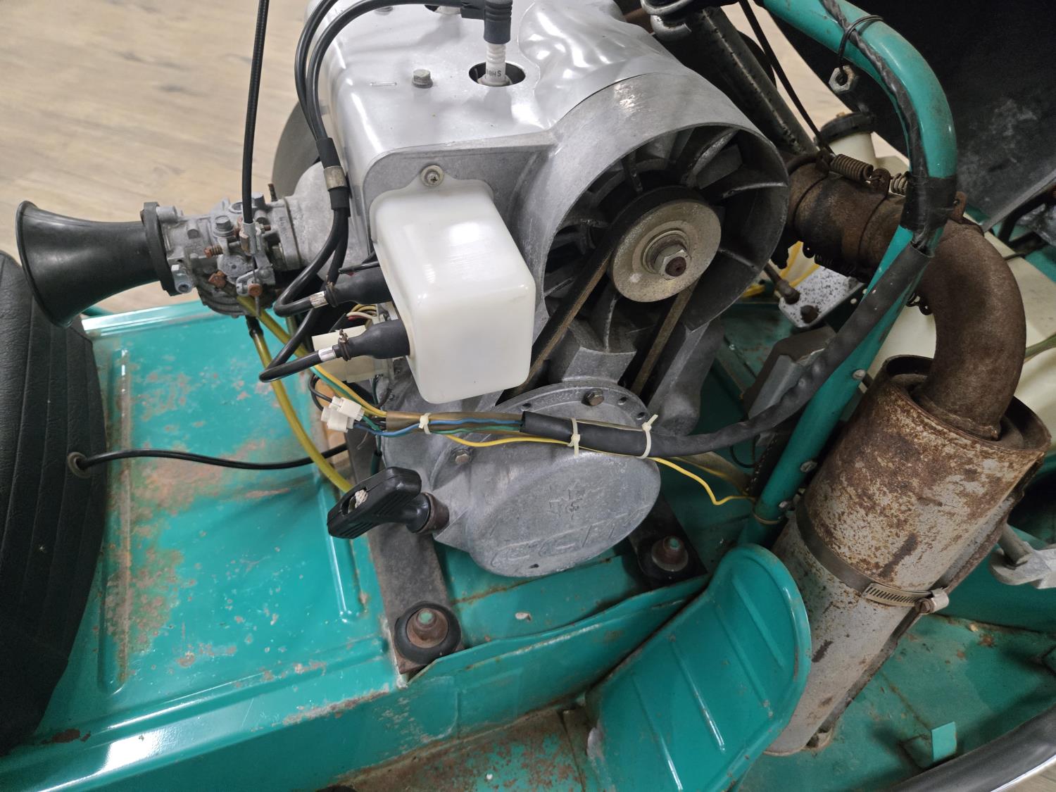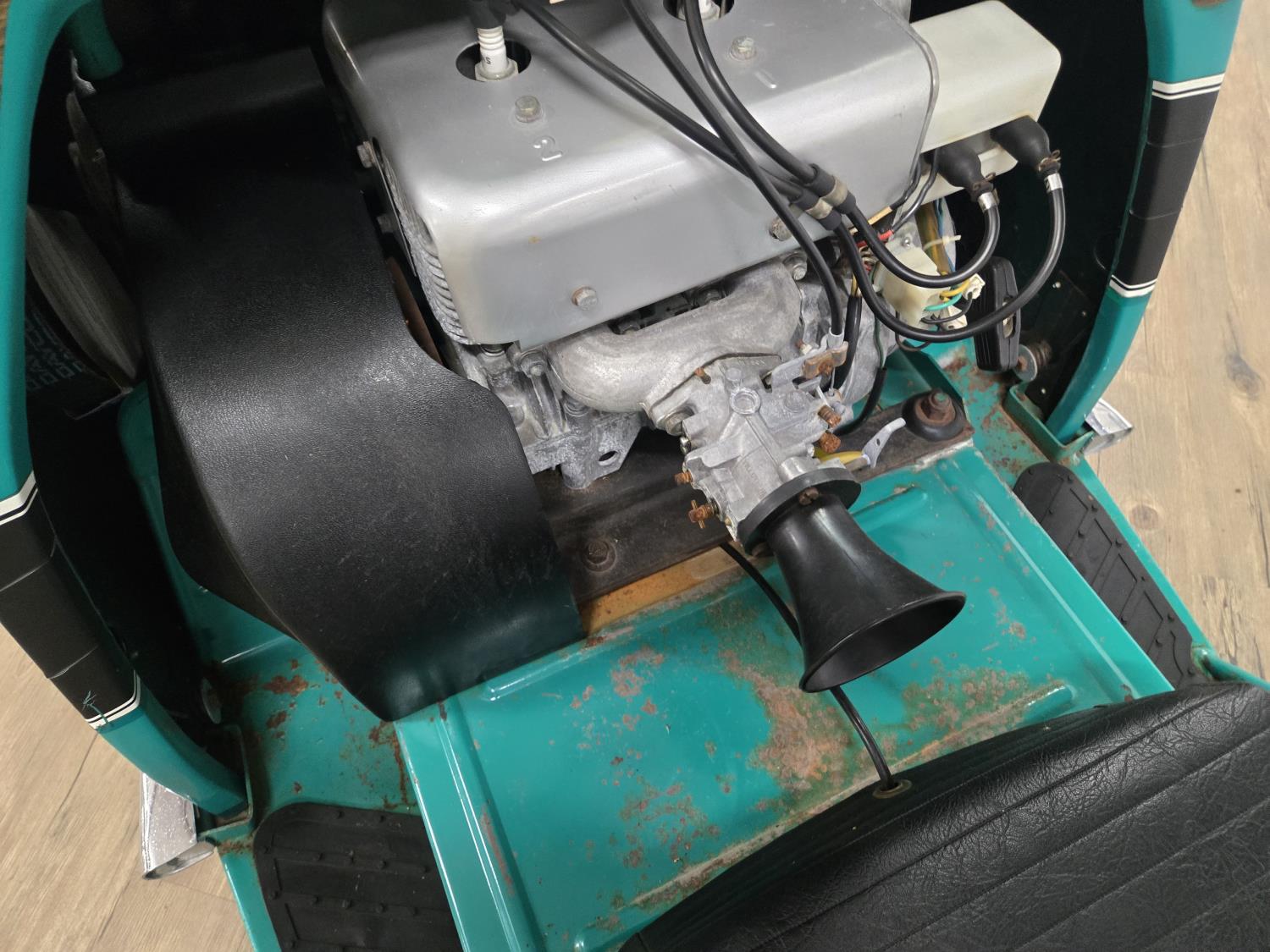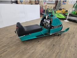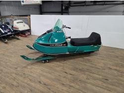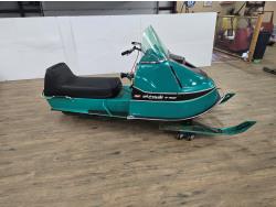440 cc CCW 2 cylinder 2 stroke fan cooled engine, windshield, rear tow hitch, under seat storage, bogie suspension, cutter sells separately. This snowmobile has been in a 20 degree climate controlled showroom. Machine was in good running condition when placed in showroom. ***USA and Eastern Canada buyers shipping can be available. Call Lorne for further discussion. This sale is in Canadian dollars