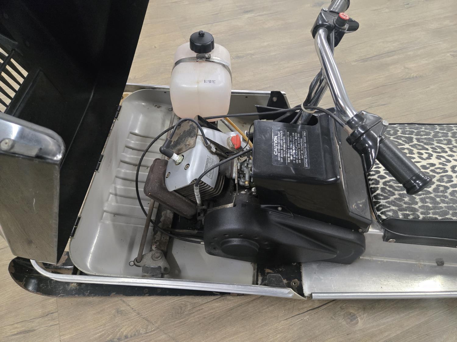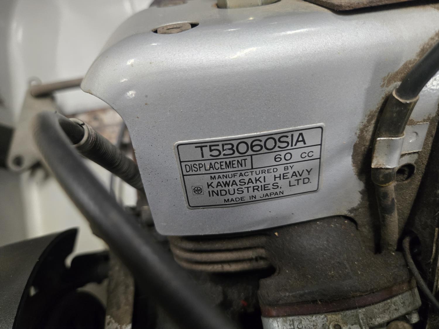 60 cc Kawasaki 1 cylinder Fan cooled engine, bogie suspension. This snowmobile has been in a 20 degree climate controlled showroom. Machine was in good running condition when placed in showroom. ***USA and Eastern Canada buyers shipping can be available. Call Lorne for further discussion. This sale is in Canadian dollars
