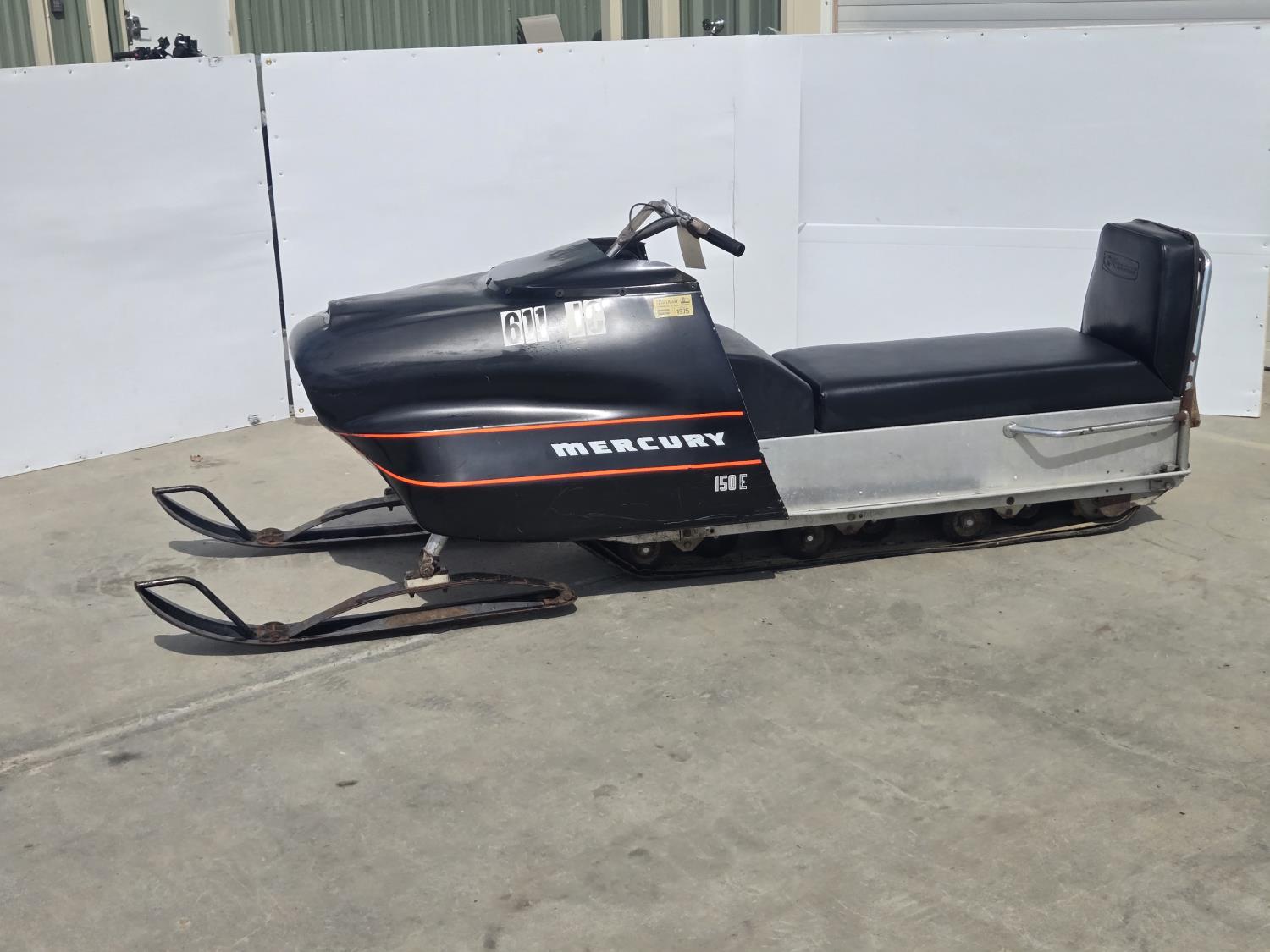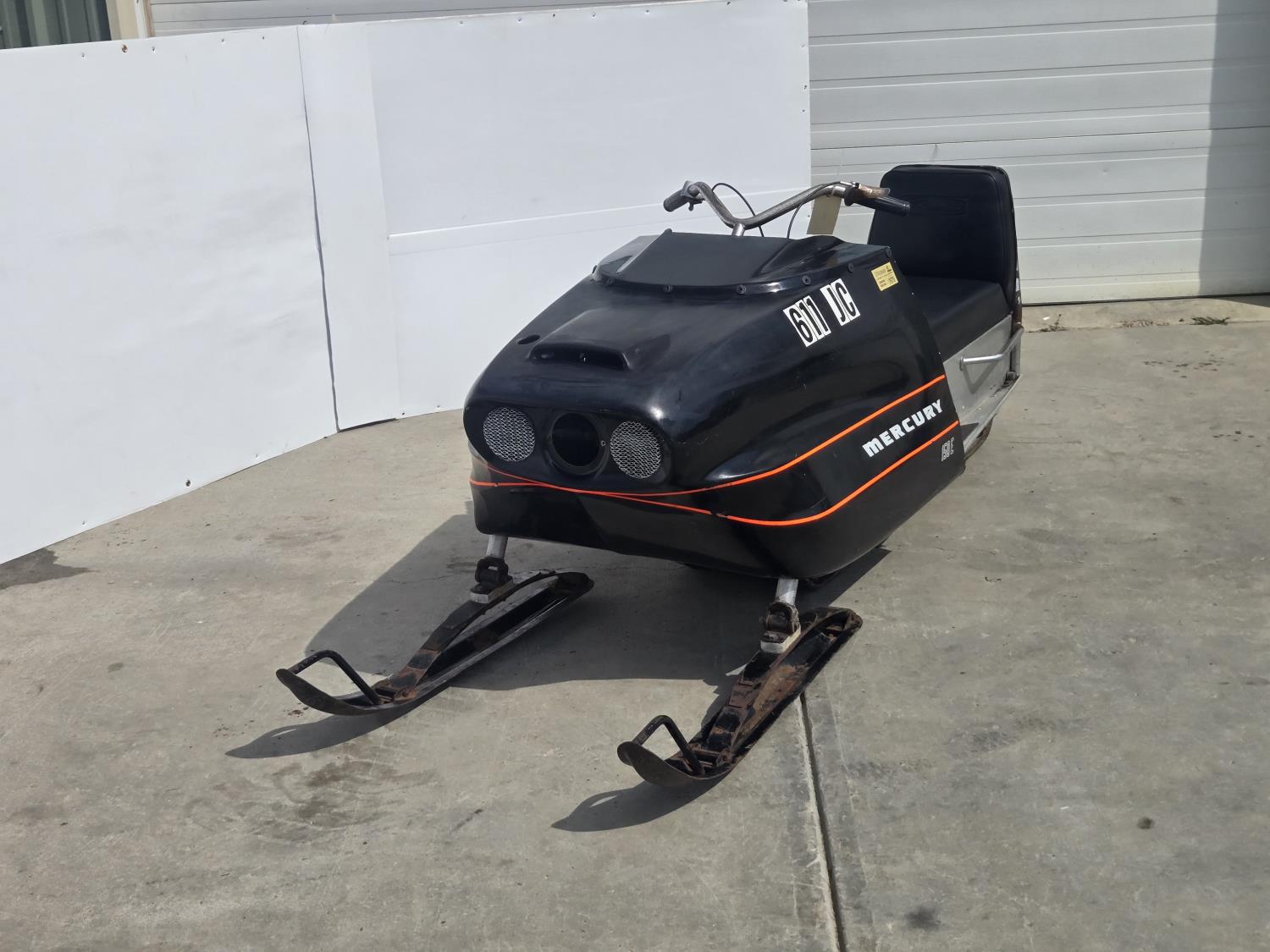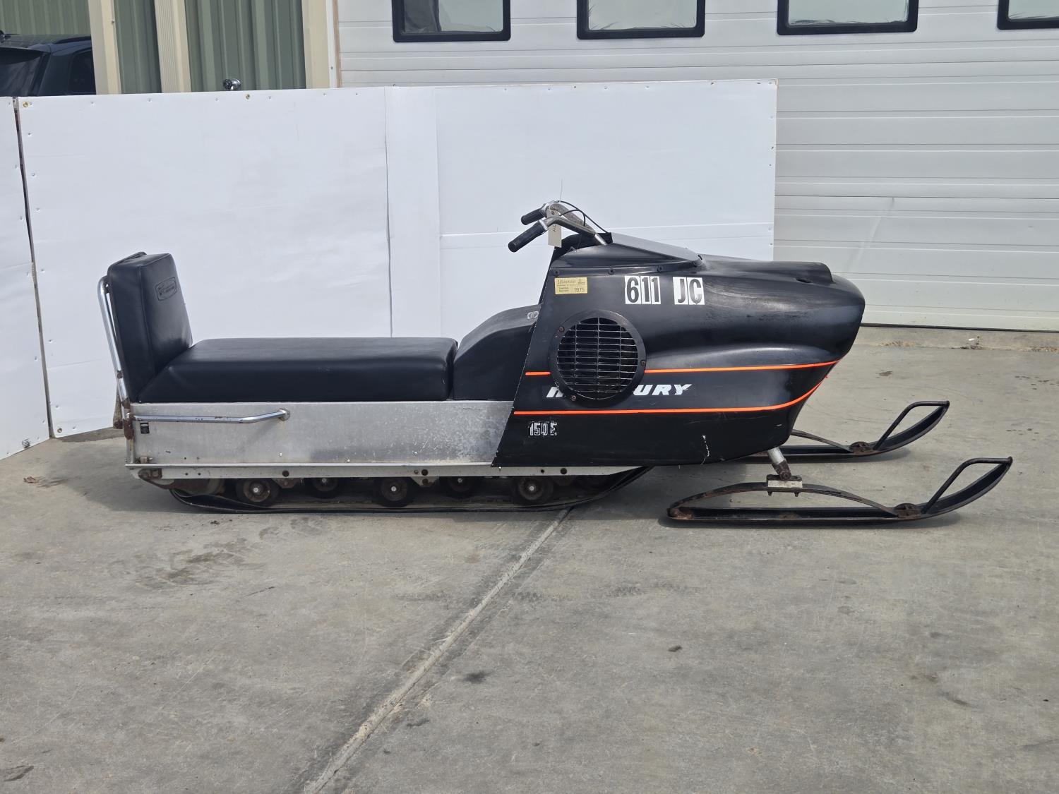 Mercury 15 HP twin cylinder, electric start, windshield missing, first year of production. This snowmobile has been in dry storage. ***USA and Eastern Canada buyers shipping can be available. Call Lorne for further discussion. This sale is in Canadian dollars