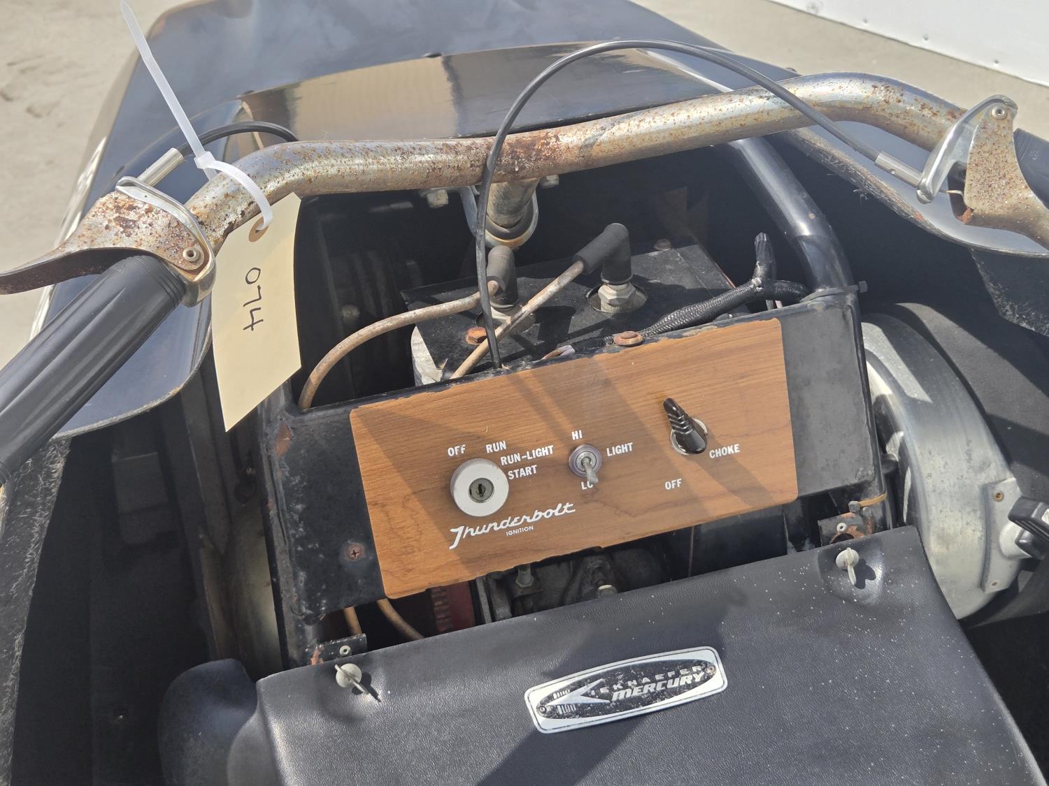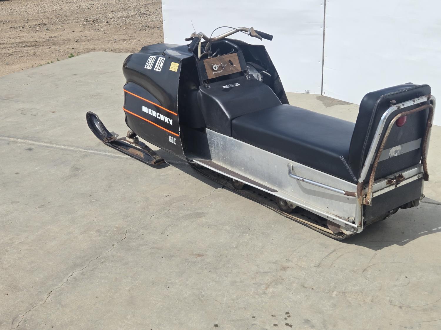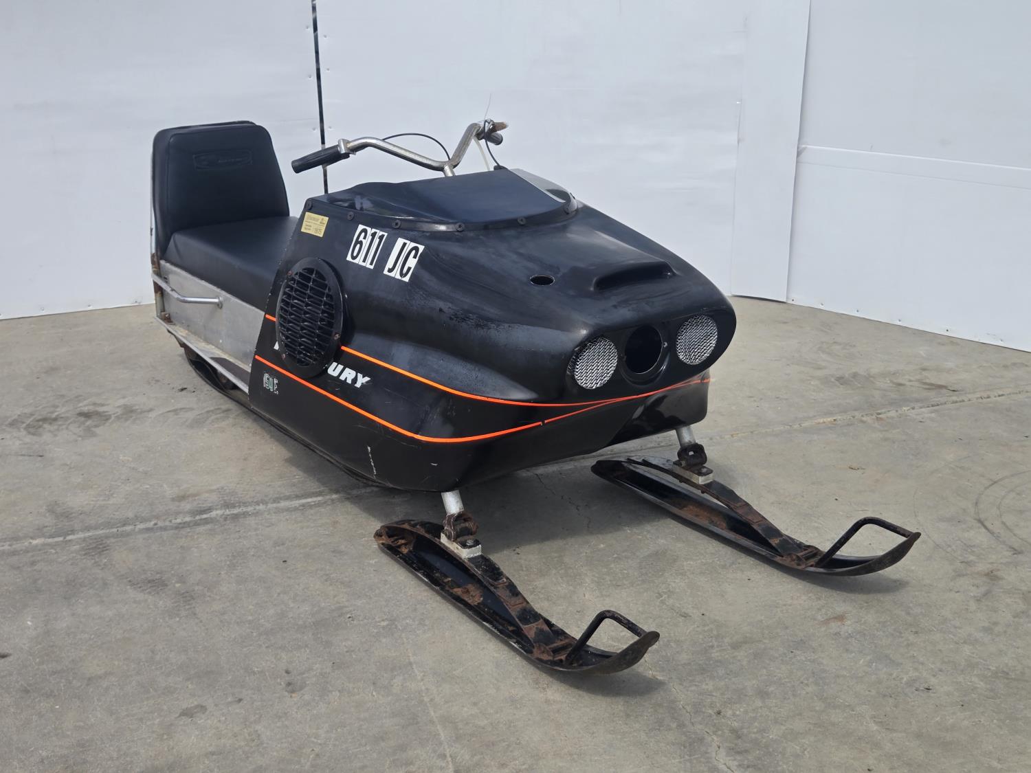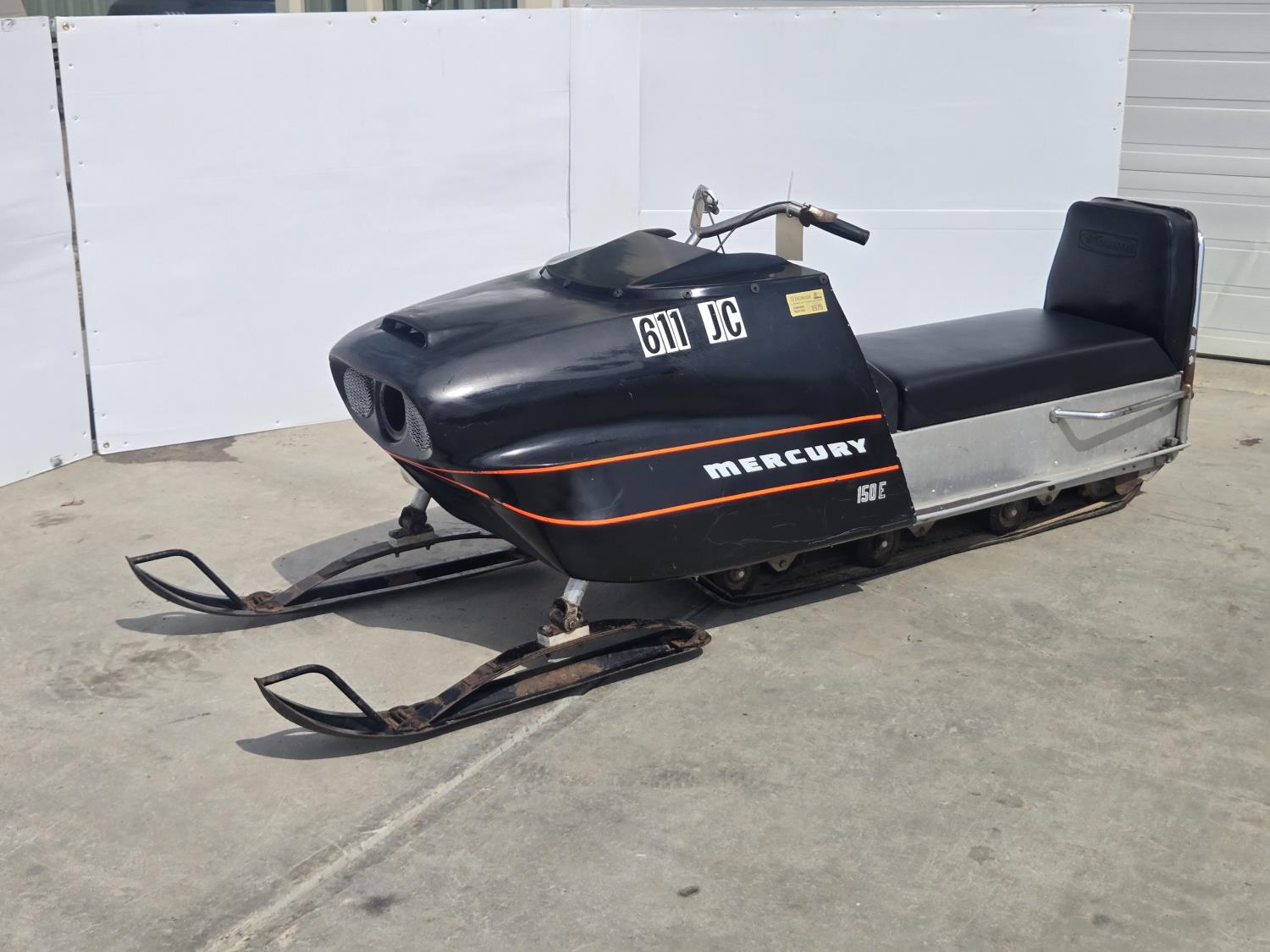 Mercury 15 HP twin cylinder, electric start, windshield missing, first year of production. This snowmobile has been in dry storage. ***USA and Eastern Canada buyers shipping can be available. Call Lorne for further discussion. This sale is in Canadian dollars