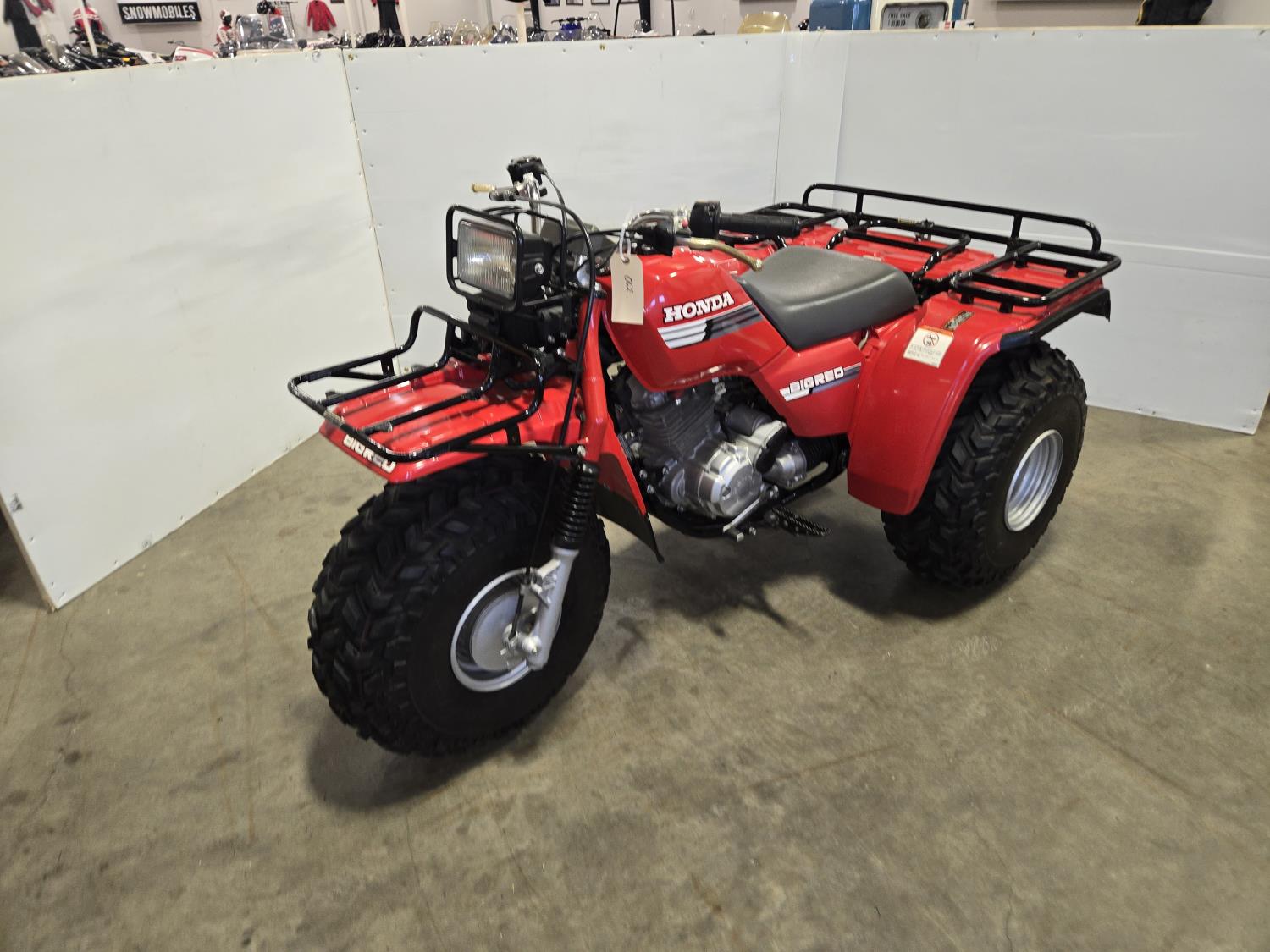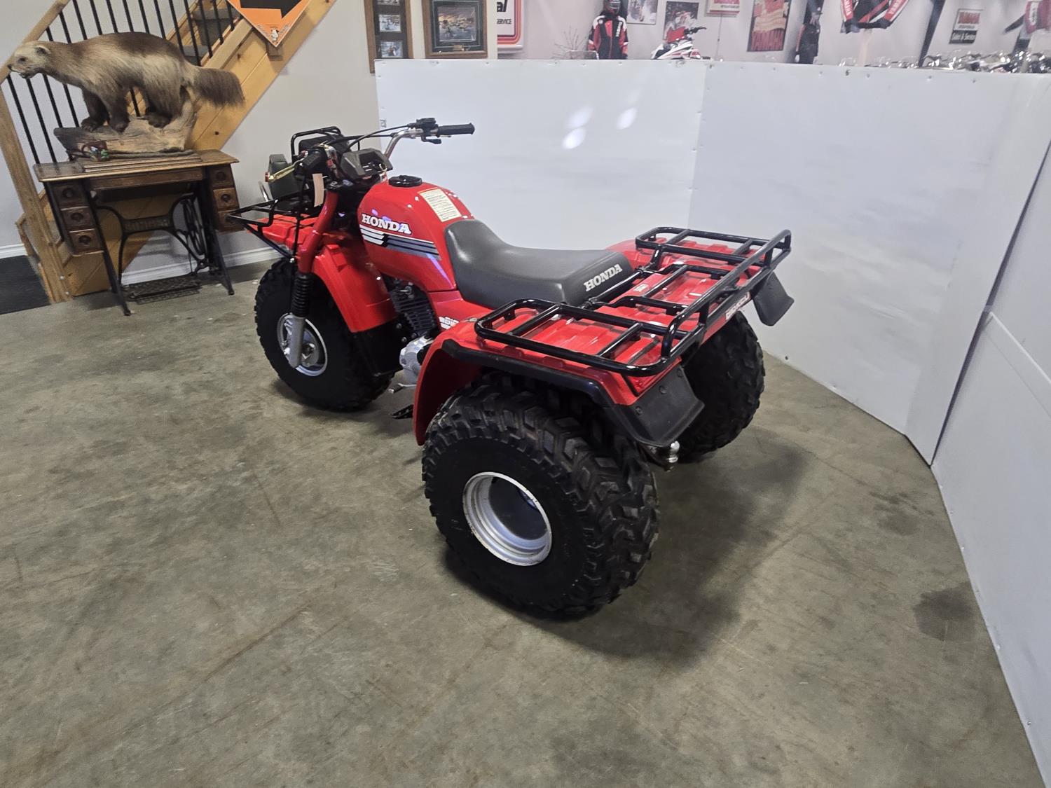 Honda 250 cc engine, electric start, front and rear racks, last year of production, approximately 30 total miles, 25X12.00-9 tires. This ATV has been in a 20 degree climate controlled showroom. Machine was in good running condition when placed in showroom. ***USA and Eastern Canada buyers shipping can be available. Call Lorne for further discussion. This sale is in Canadian dollars