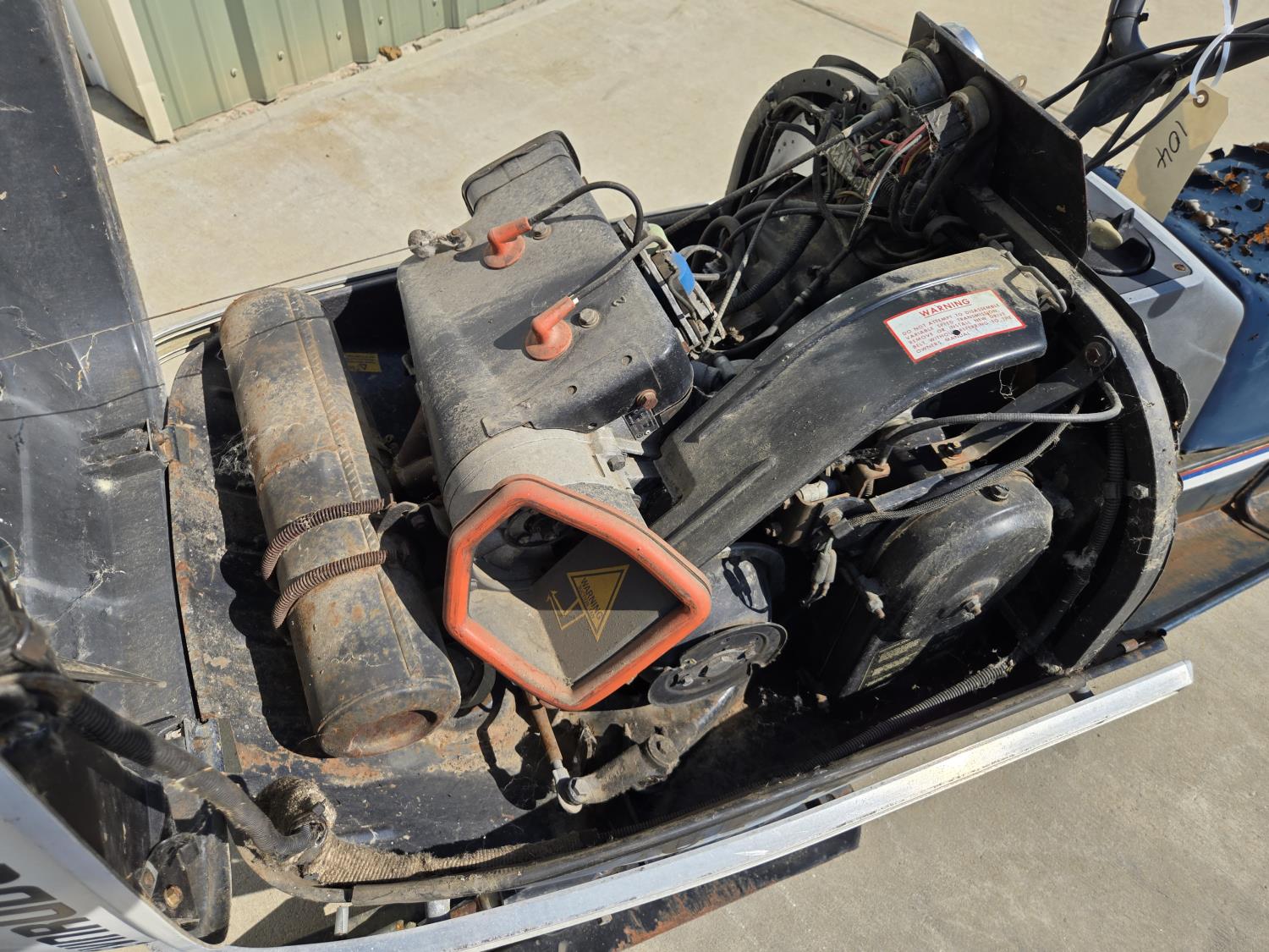 complete less windshield, 15 inch track, engine turns, speedo, primer, electric start. ***USA and Eastern Canada buyers shipping can be available. Call Lorne for further discussion. This sale is in Canadian dollars