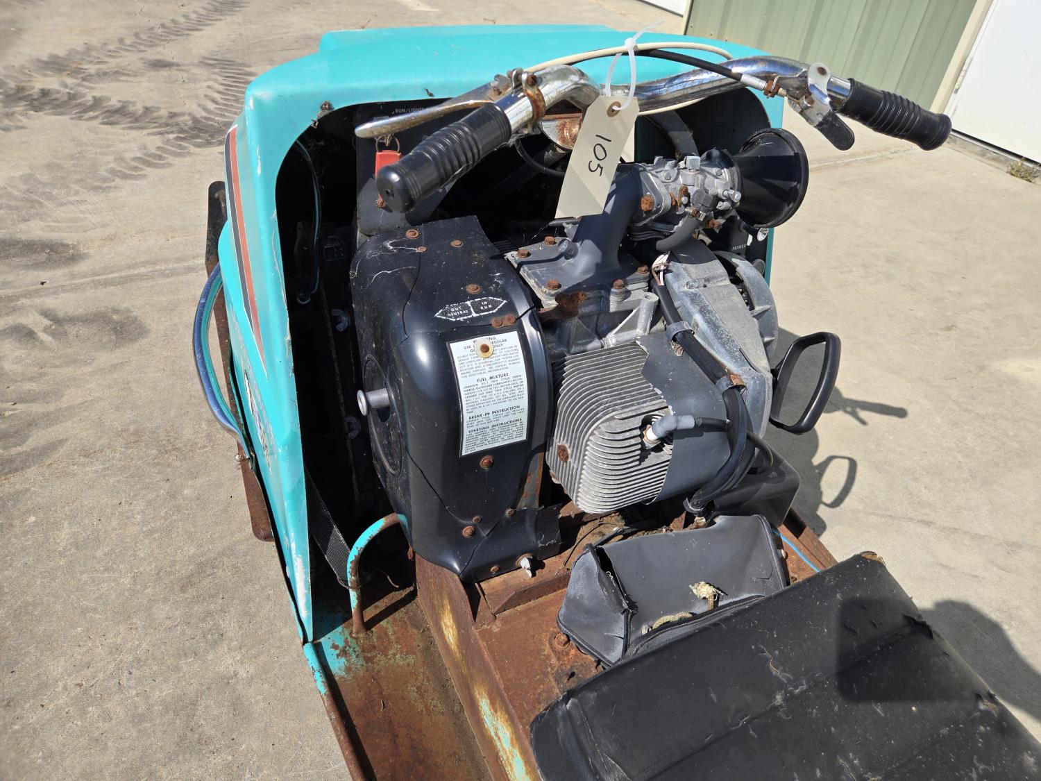 complete less windshield, turns over, 15 inch track. ***USA and Eastern Canada buyers shipping can be available. Call Lorne for further discussion. This sale is in Canadian dollars