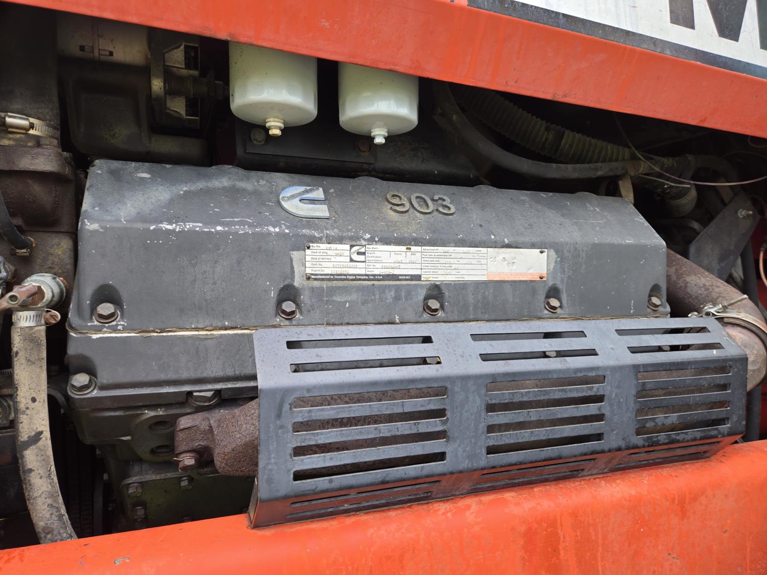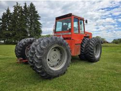 Cummins 903 14.8 L V8 265 HP, engine, 18 speed partial power shift transmission, cab, A/C, radio, 4 rear hydraulic outlets, 20.8-38 tires, factory duals
