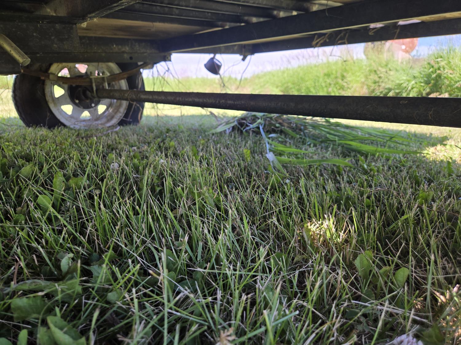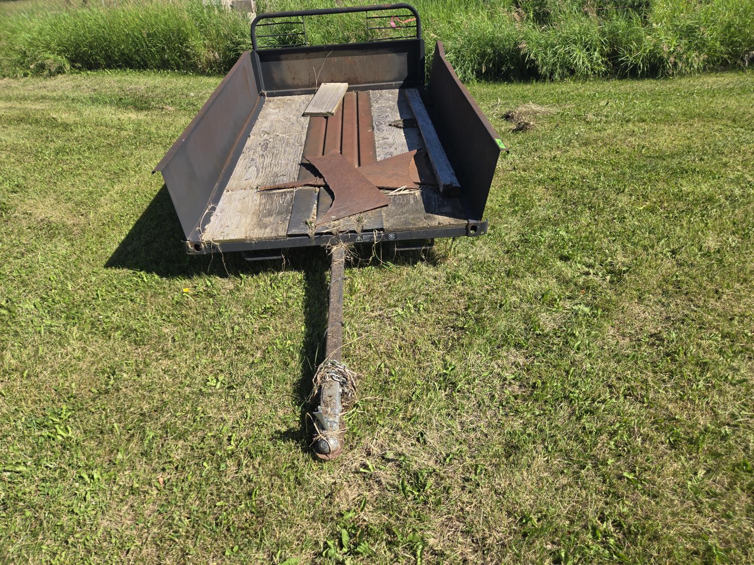 54 inch wide deck, wood deck, spring suspension, (needs both tires replaced), 2000 lb axles, 5.30-12 tires
