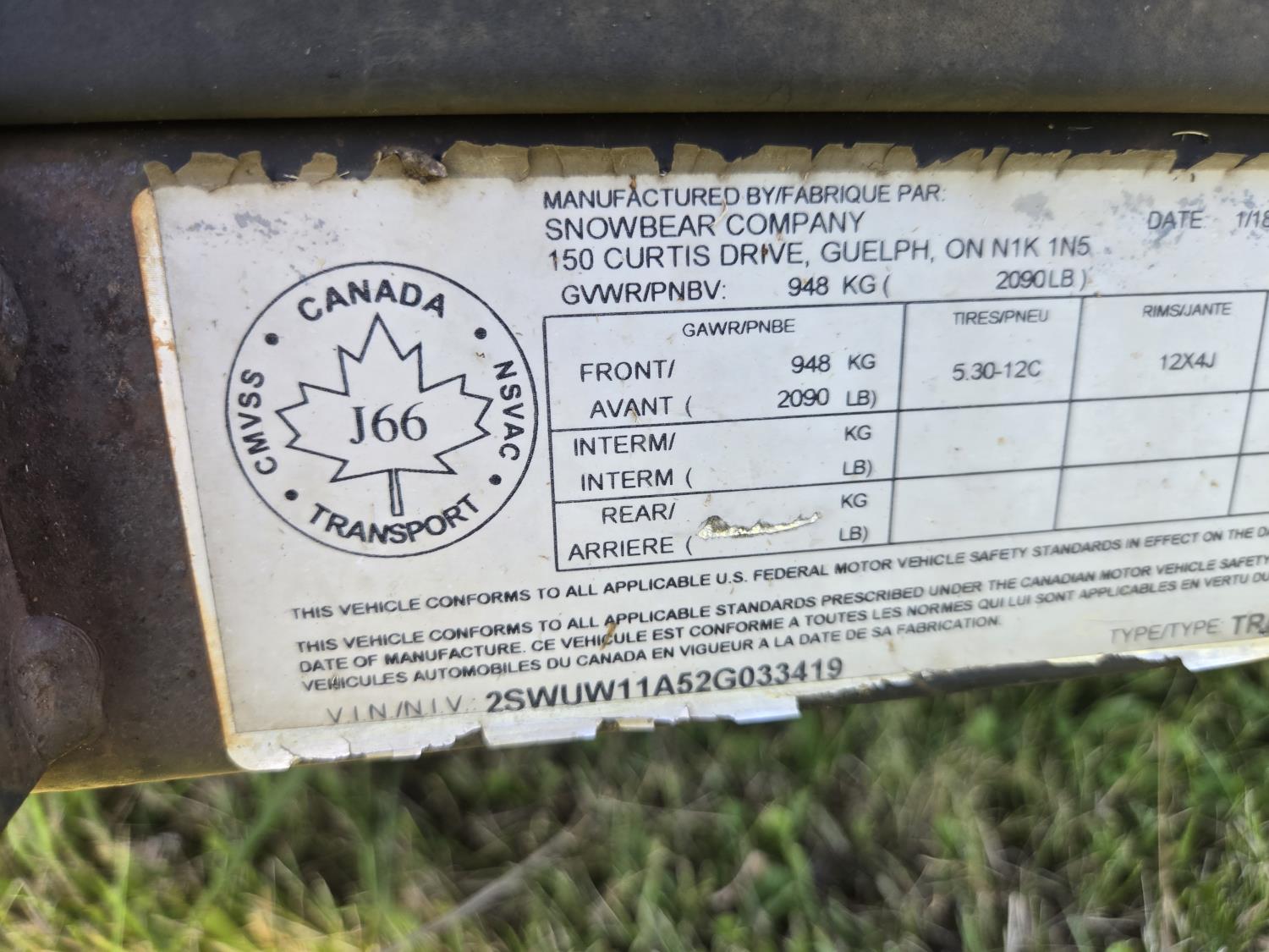 - Selling with Bill of Sale only! Consult your local registry office for registration requirements as provinces differ.