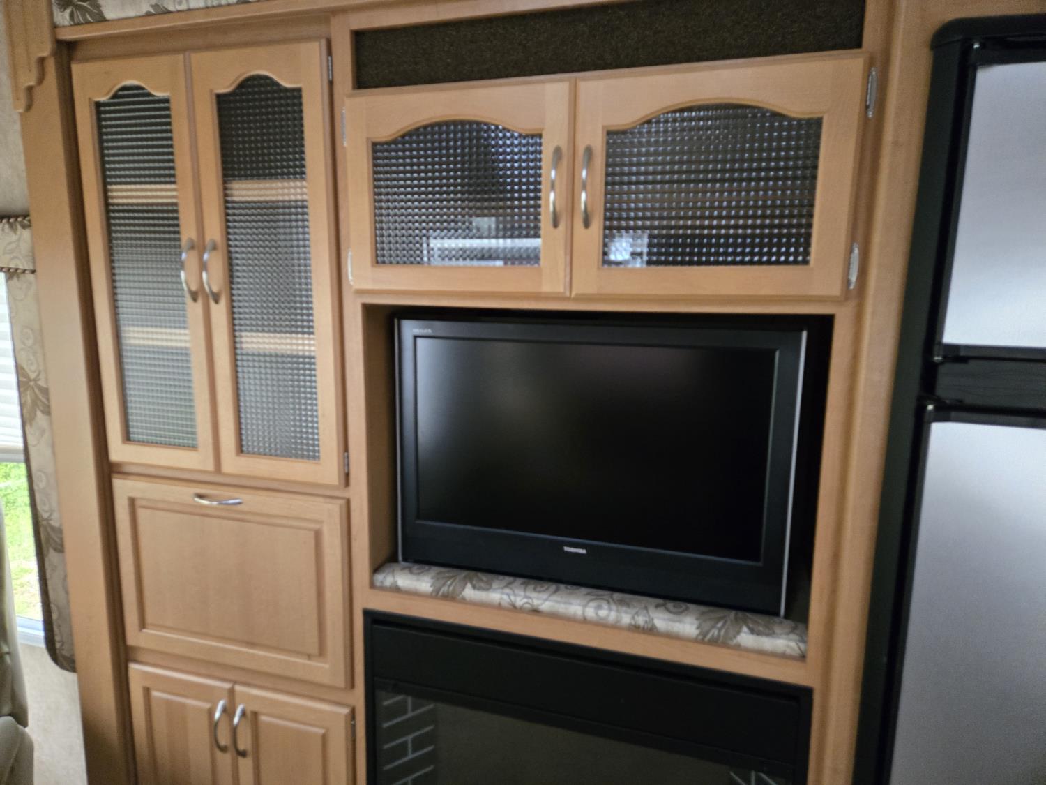 stove, fridge, microwave, full bath, master bedroom, A/C, 3 slides, power awning, spring suspension, electric brakes, island, fireplace, (2) TV's, Mor/Ryde hitch, spring suspension, 235/85R16 tires