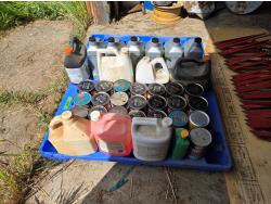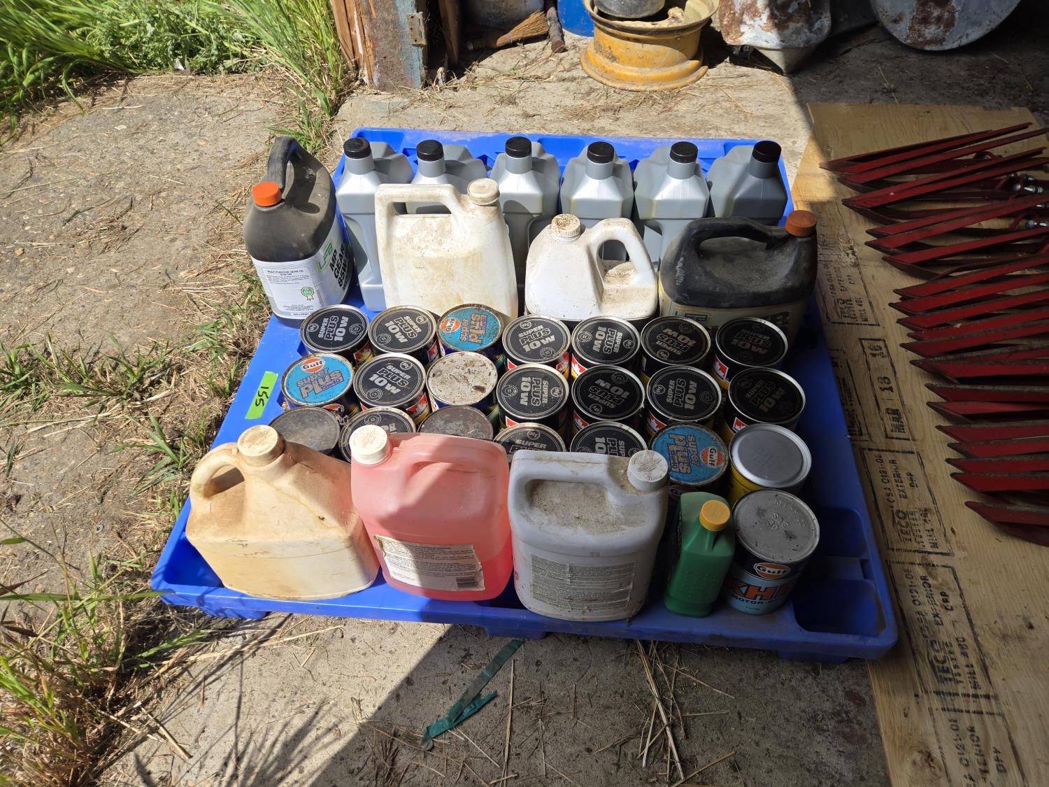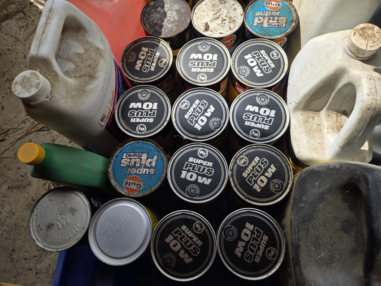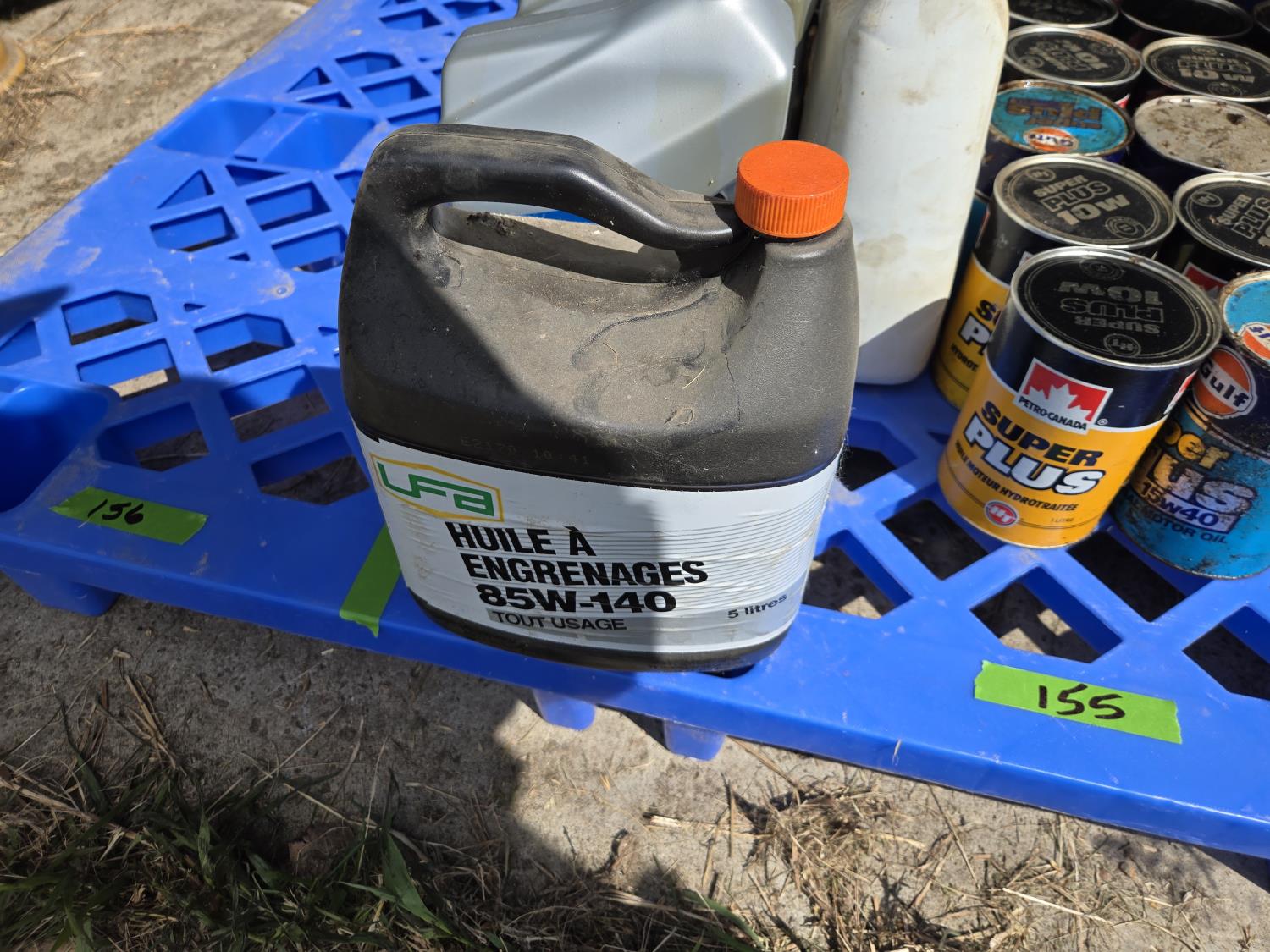 (6) Delco 400 3.79 L 5W-40 Synthetic oil, (1) 85W140 gear oil, (17) Petro Canada 10W engine oil, all unopened, miscellaneous shop fluids