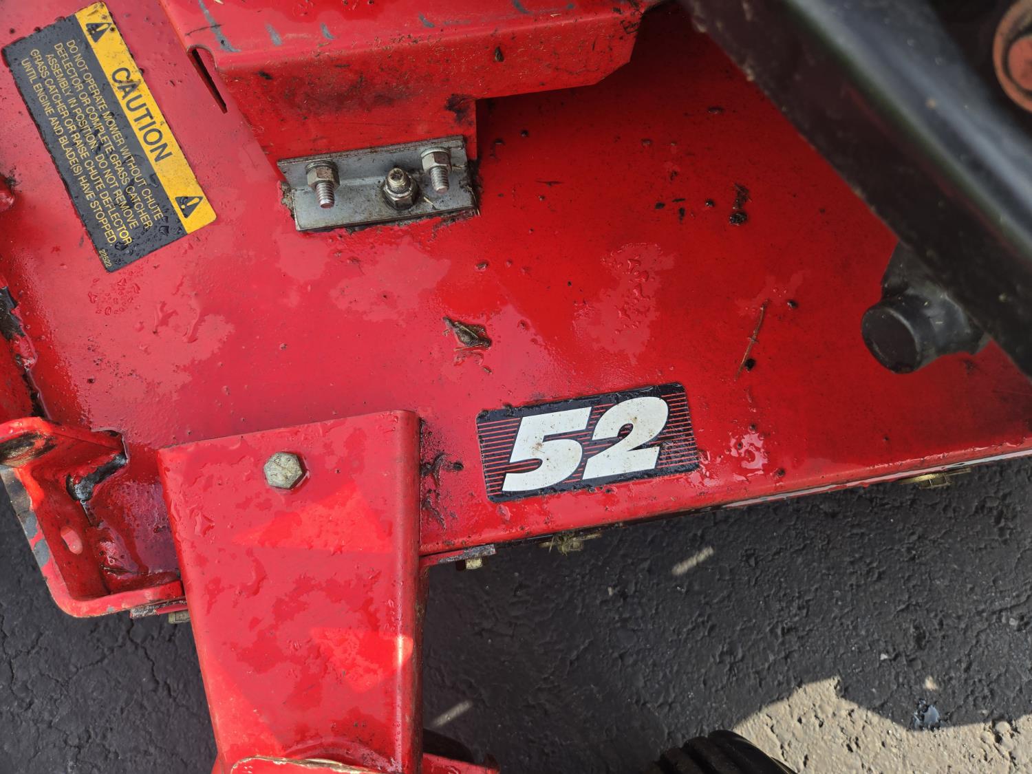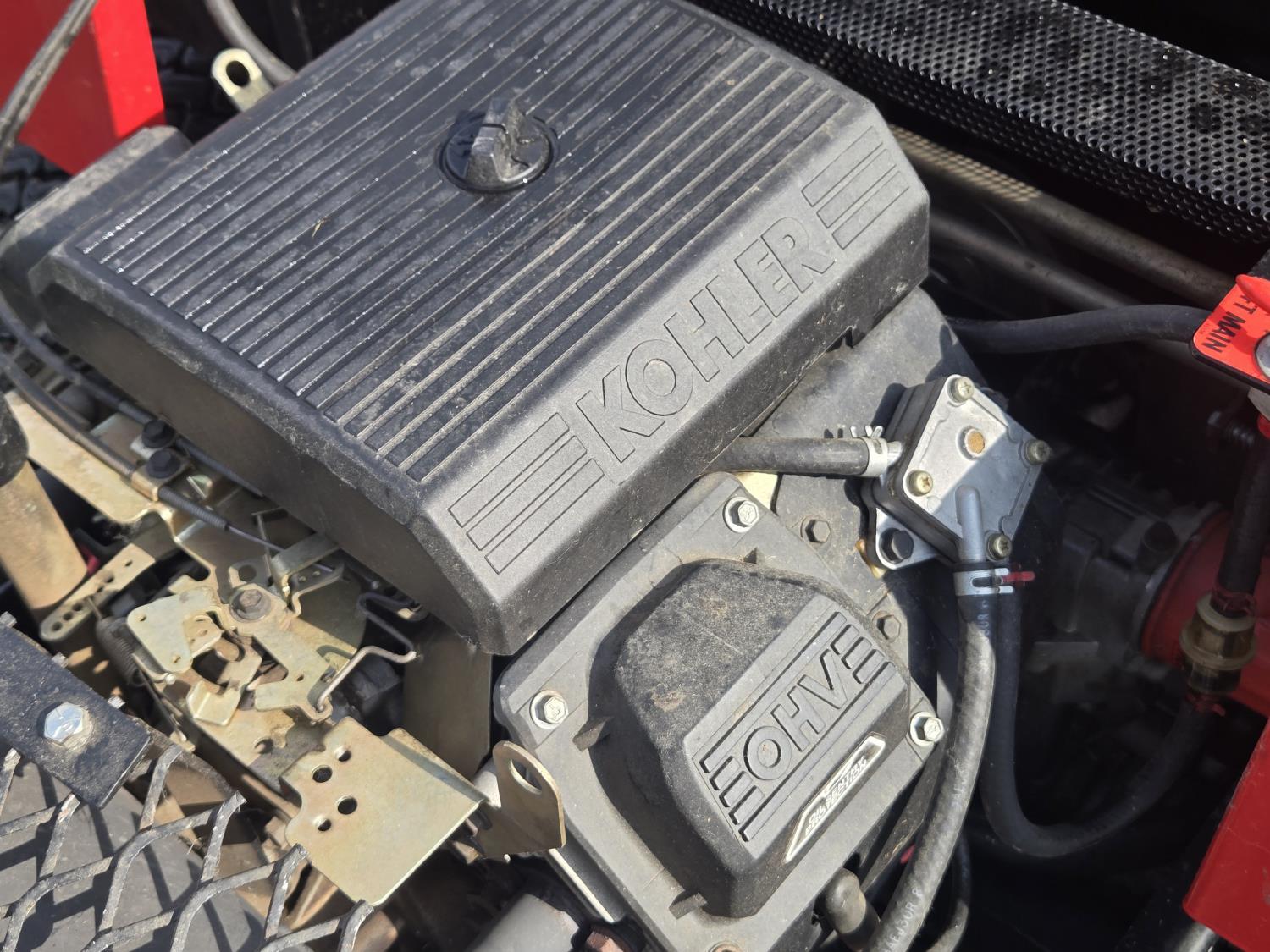 Kohler Twin cylinder electric start gas engine, 52 inch mower deck, single lever control