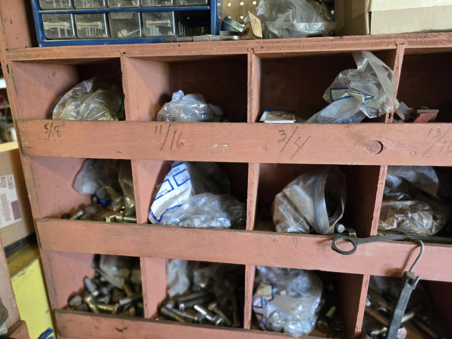 101 Wooden Parts Bin Unit with Contents