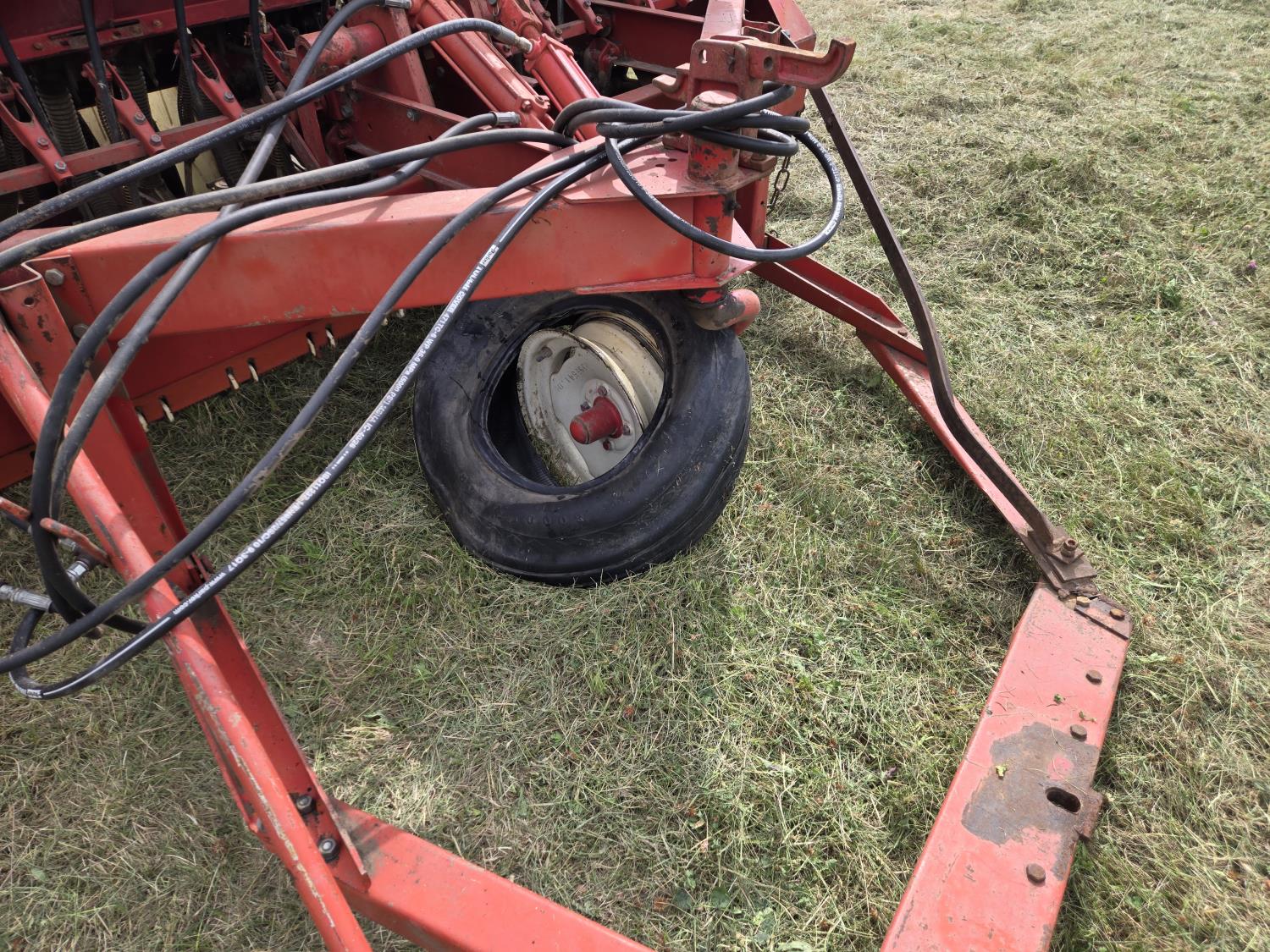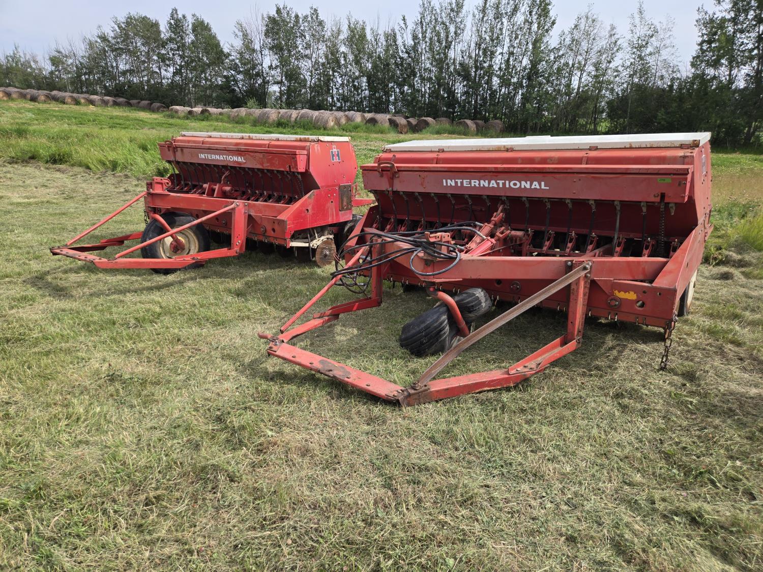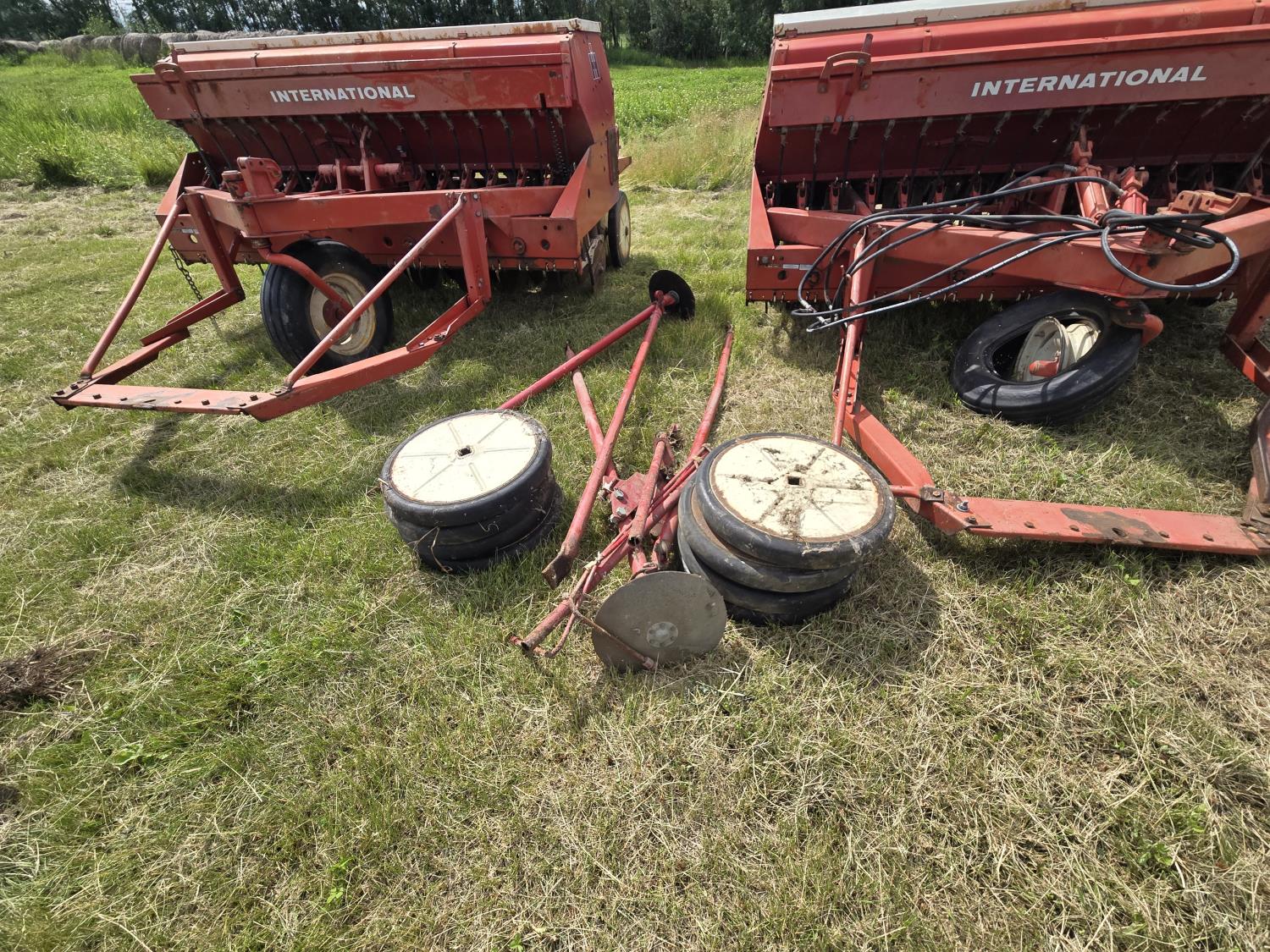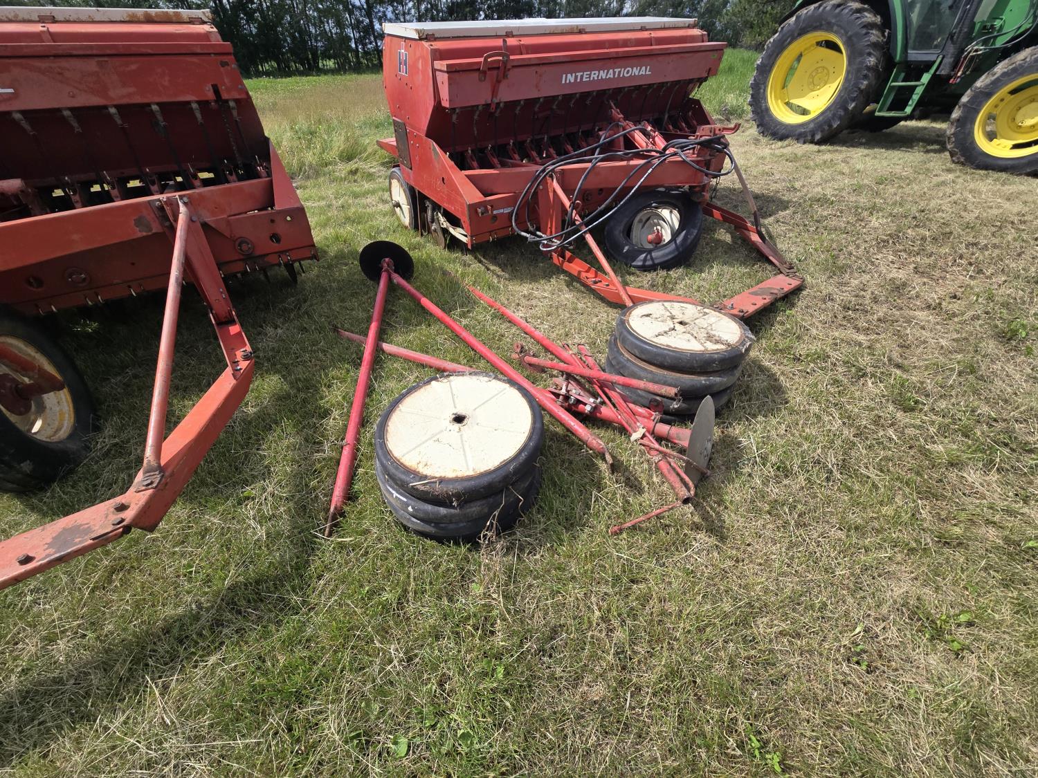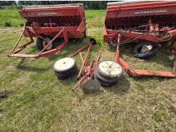 6 inch spacing, rubber capped press wheels, grass attachment, fertilizer attachment, (2) 8' drills, tandem hitch comes with drills, disc markers, (8) extra press wheels