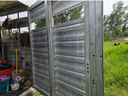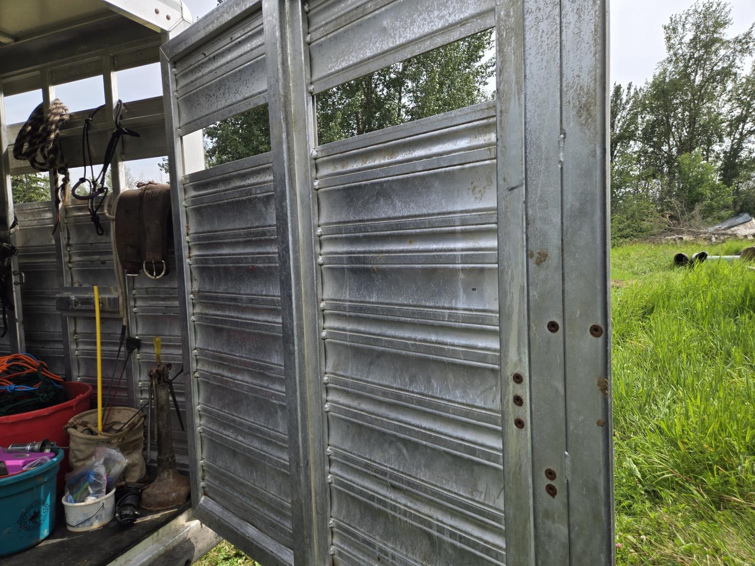 78 inch wide, 83 inch high, 1 divider gate G/N storage, right hand side man door, full swing with slider rear door, rubber matting, 7000 lb torsion axles, 235/85R16 tires